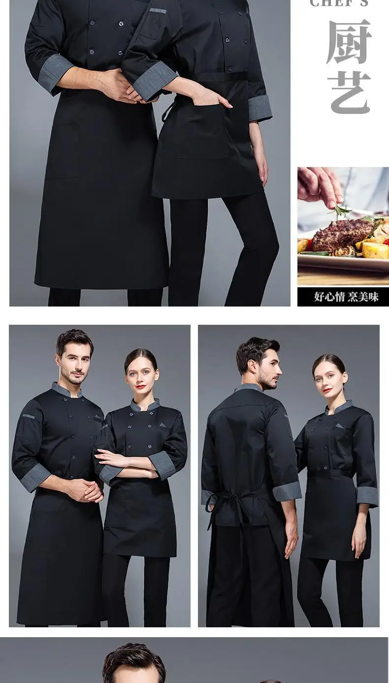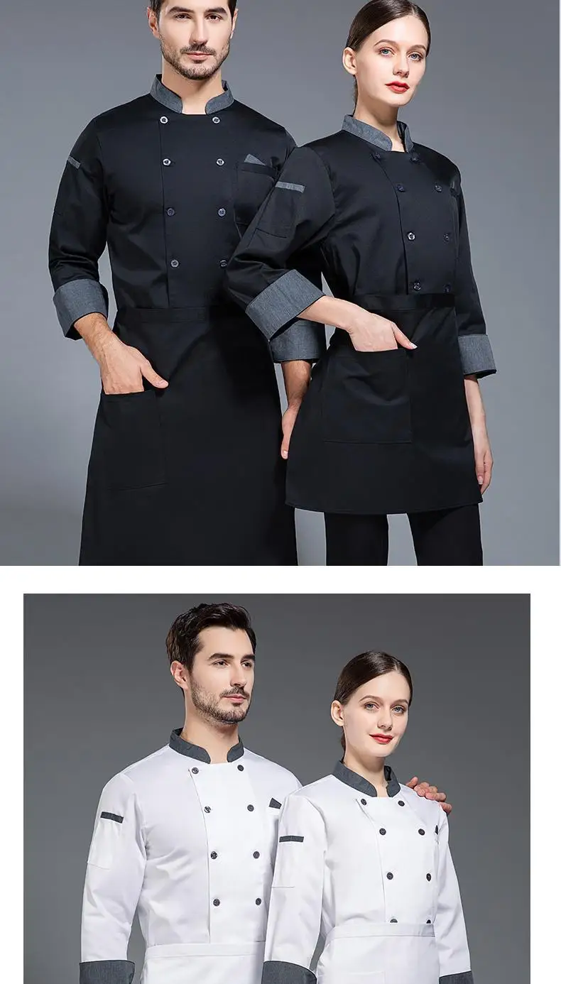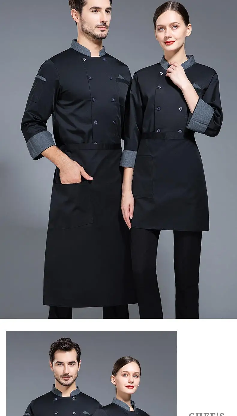 black Chef Jacket long Sleeve chef uniform Cook Coat Chef T-shirt Baker Work Uniform Waiter Restaurant Hotel Clothes women Logo