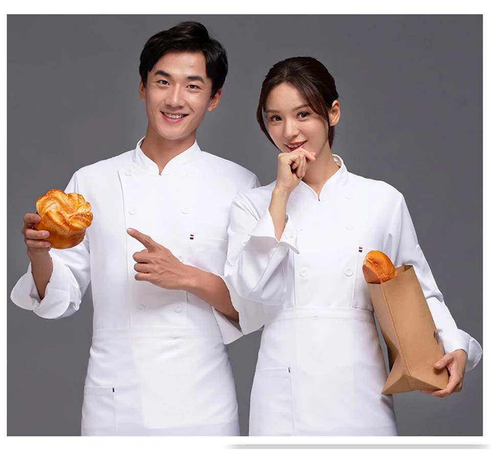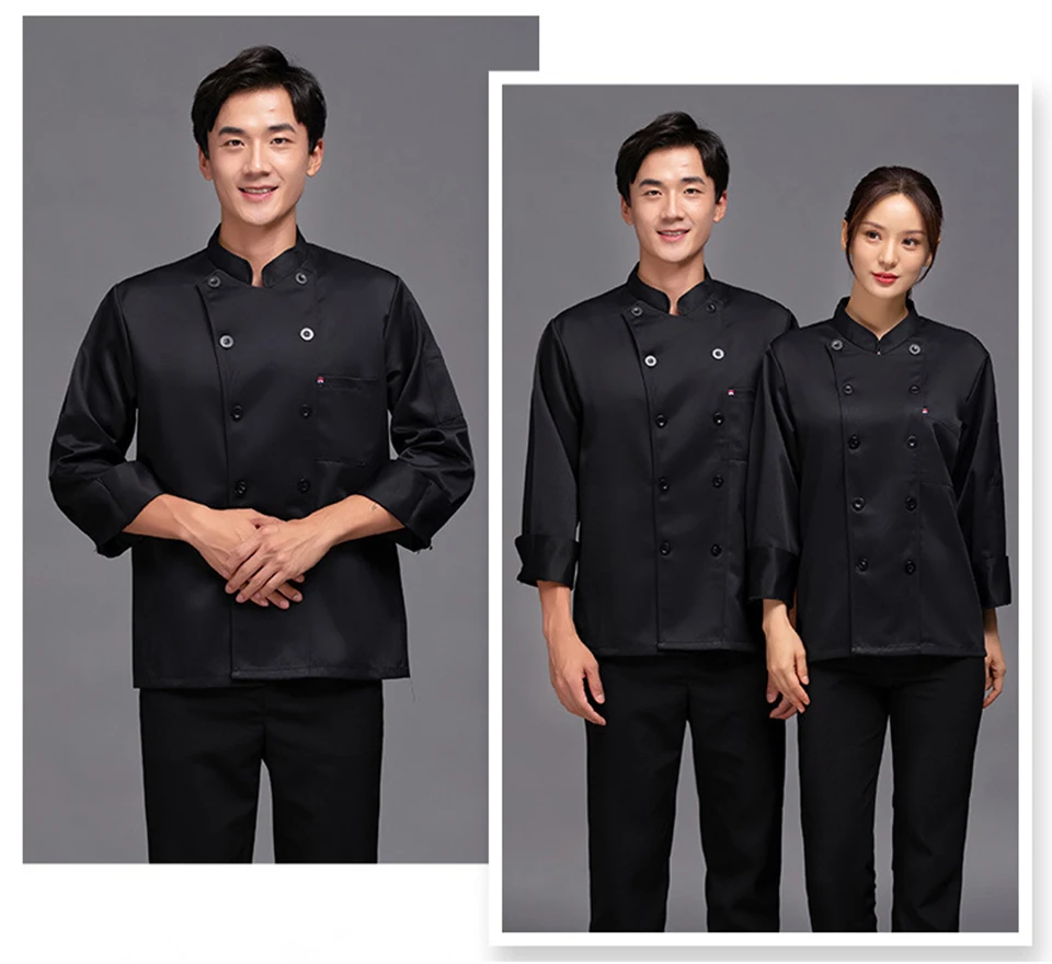 Black Chef Jacket Long Sleeve Restaurant Man and Woman Cook Uniform Shirt Hotel Kitchen Overalls Cooking Coat Cafe Work Clothes