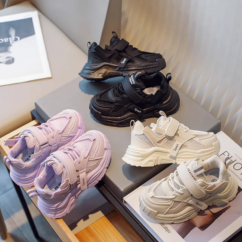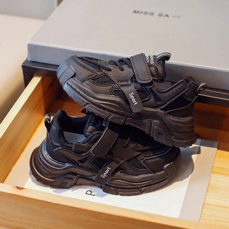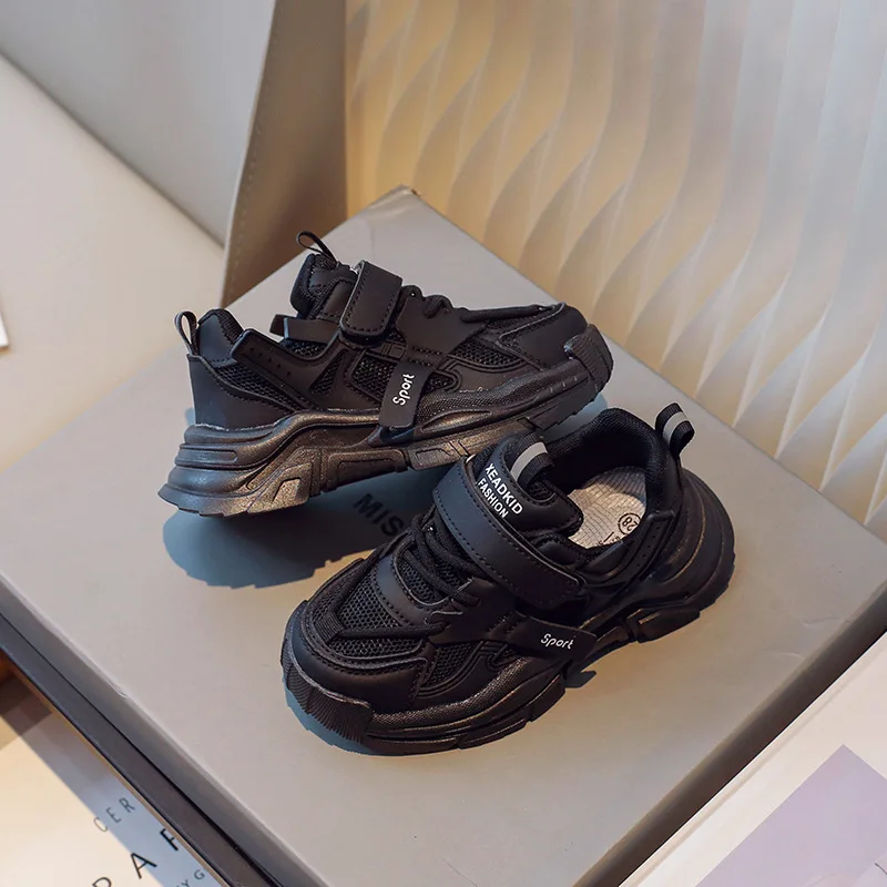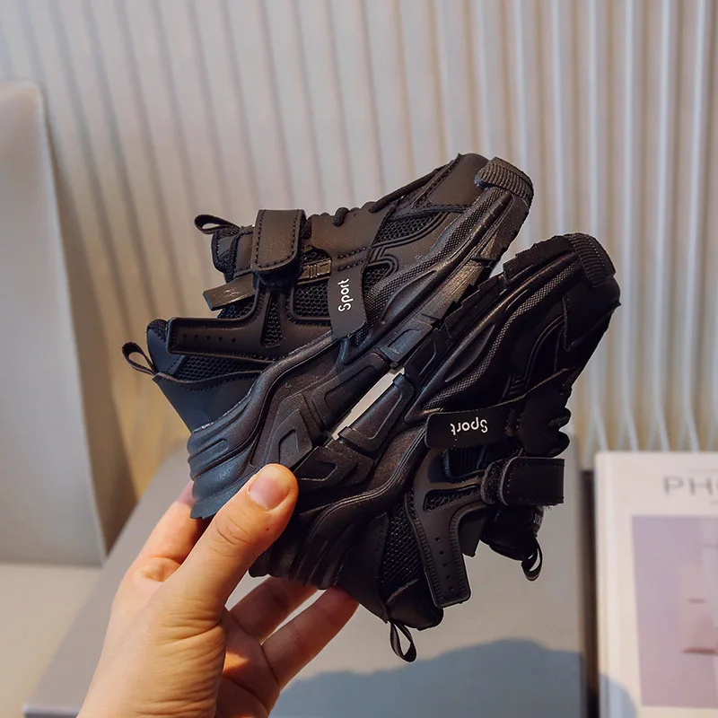 Black Children Tennis Shoes Casual Mesh Breathable Outdoor Sports Shoes for Kids Girls School Fashion Boys Versatile Footwear