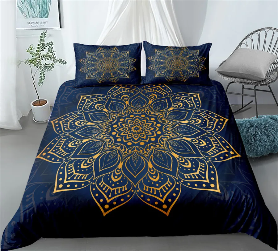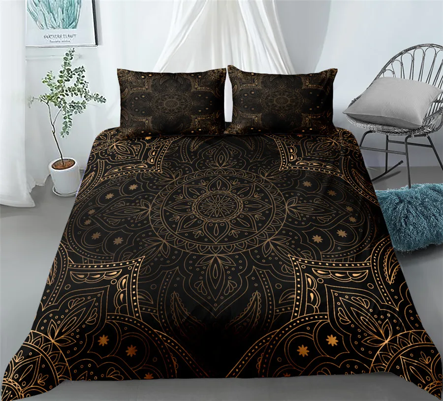 Black Mandala Boho Duvet Cover Set King Queen Double Full Twin Single Size Bed Linen Set