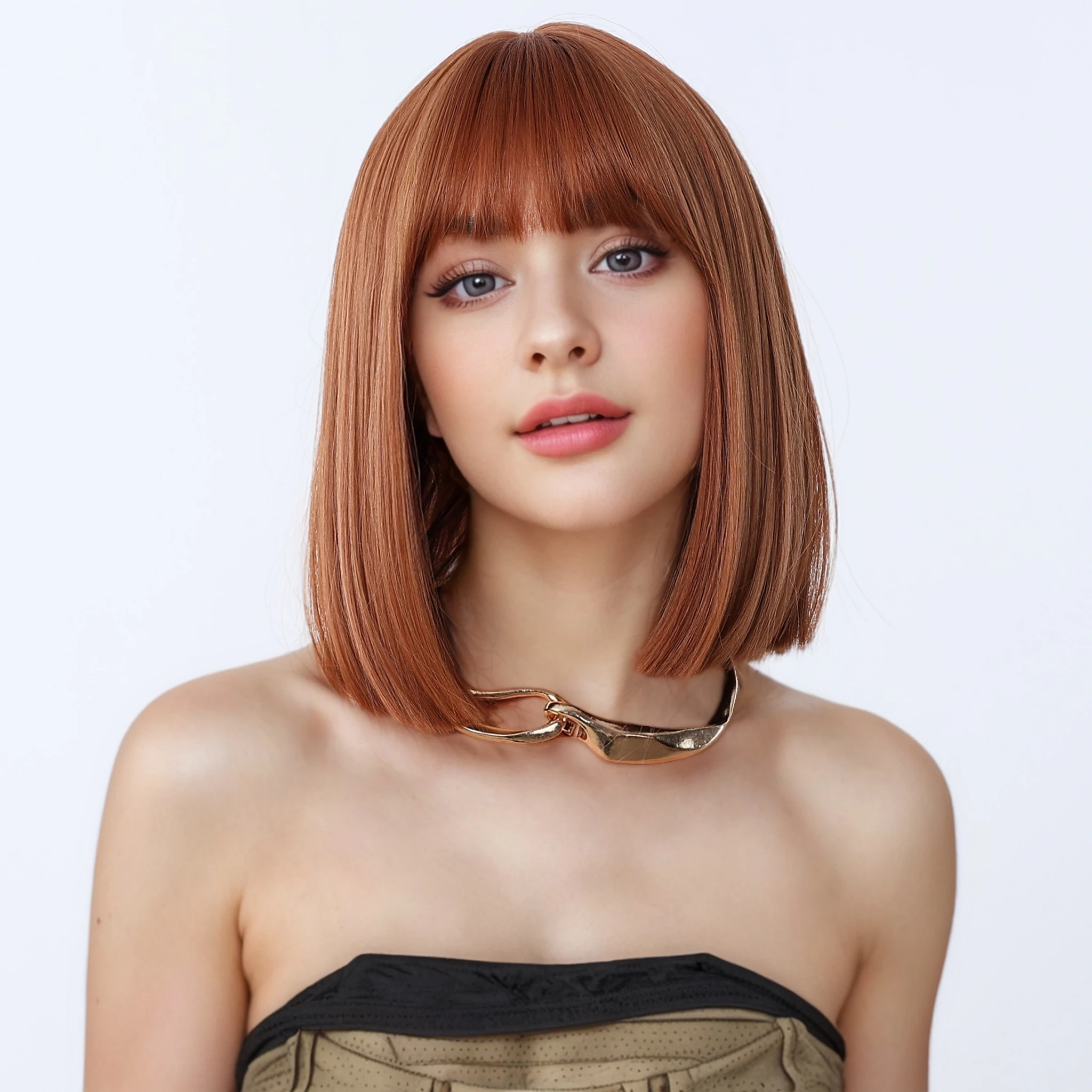 Black Short Bob for Girl Daily Wear Synthetic Wig Women Bob Straight Wig with Bangs High Temperature Daily Cosplay Party Wigs
