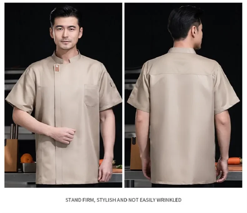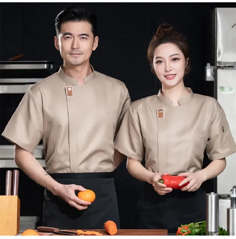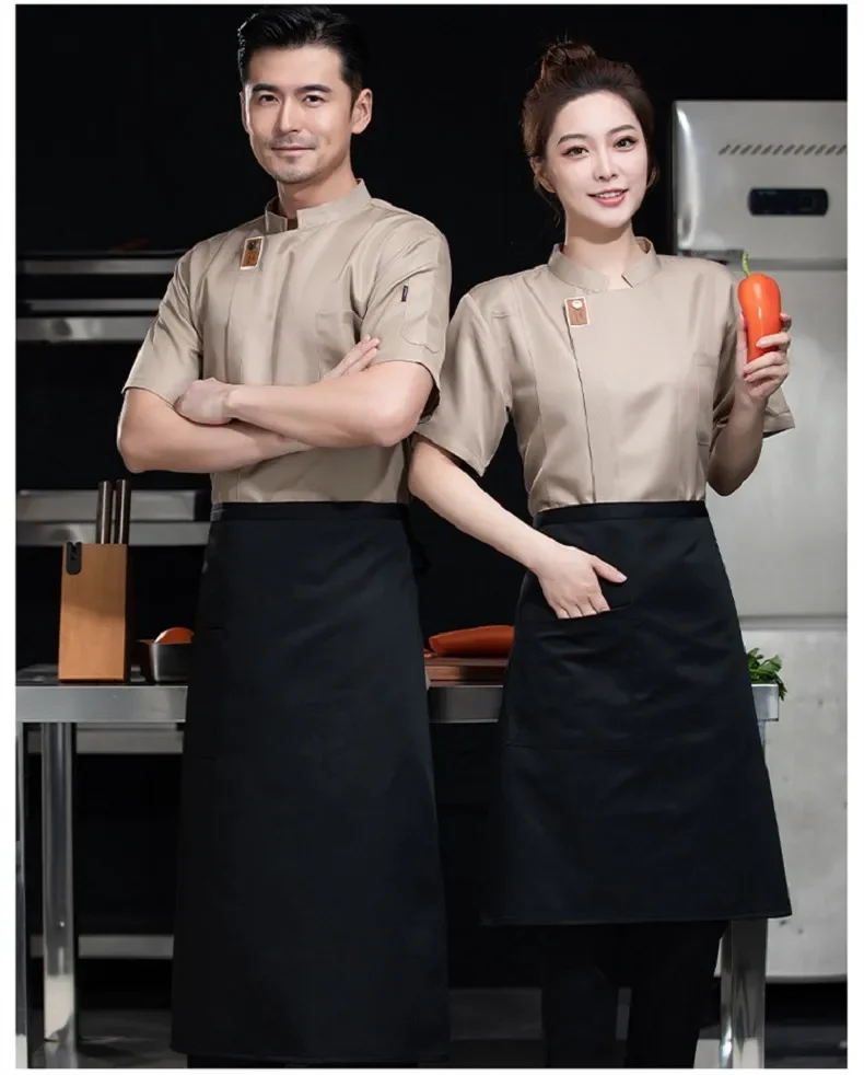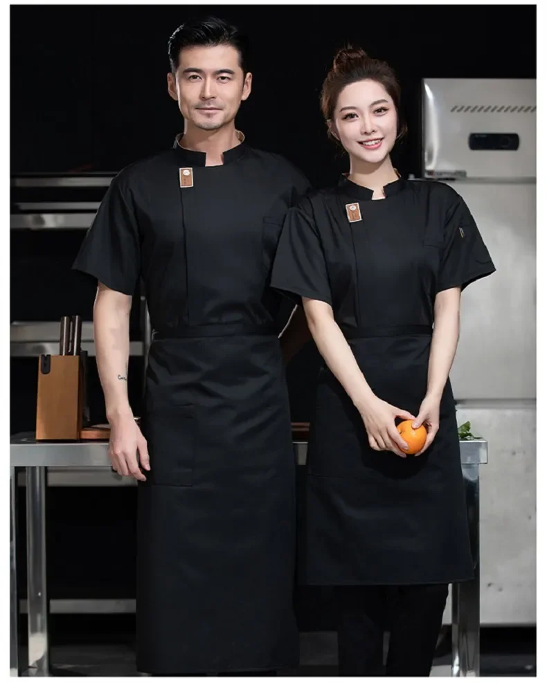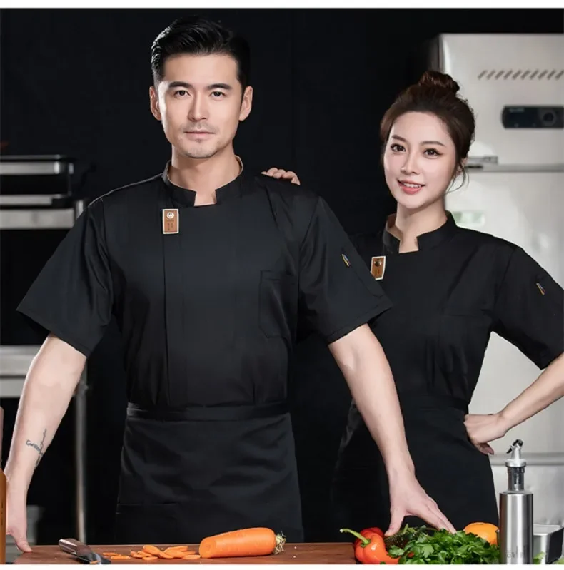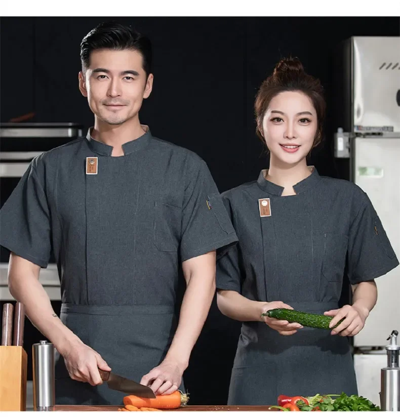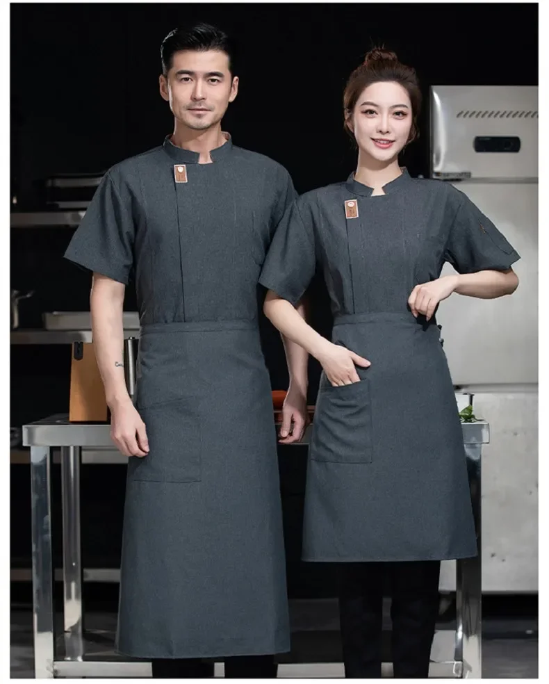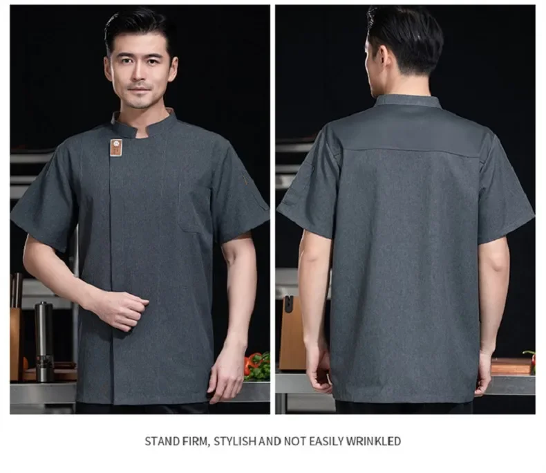 Black Short Sleeve Chef Jacket Waiter Restaurant Hotel Uniform Grey Cook Coat Kitchen T-shirt Baker Work Uniform