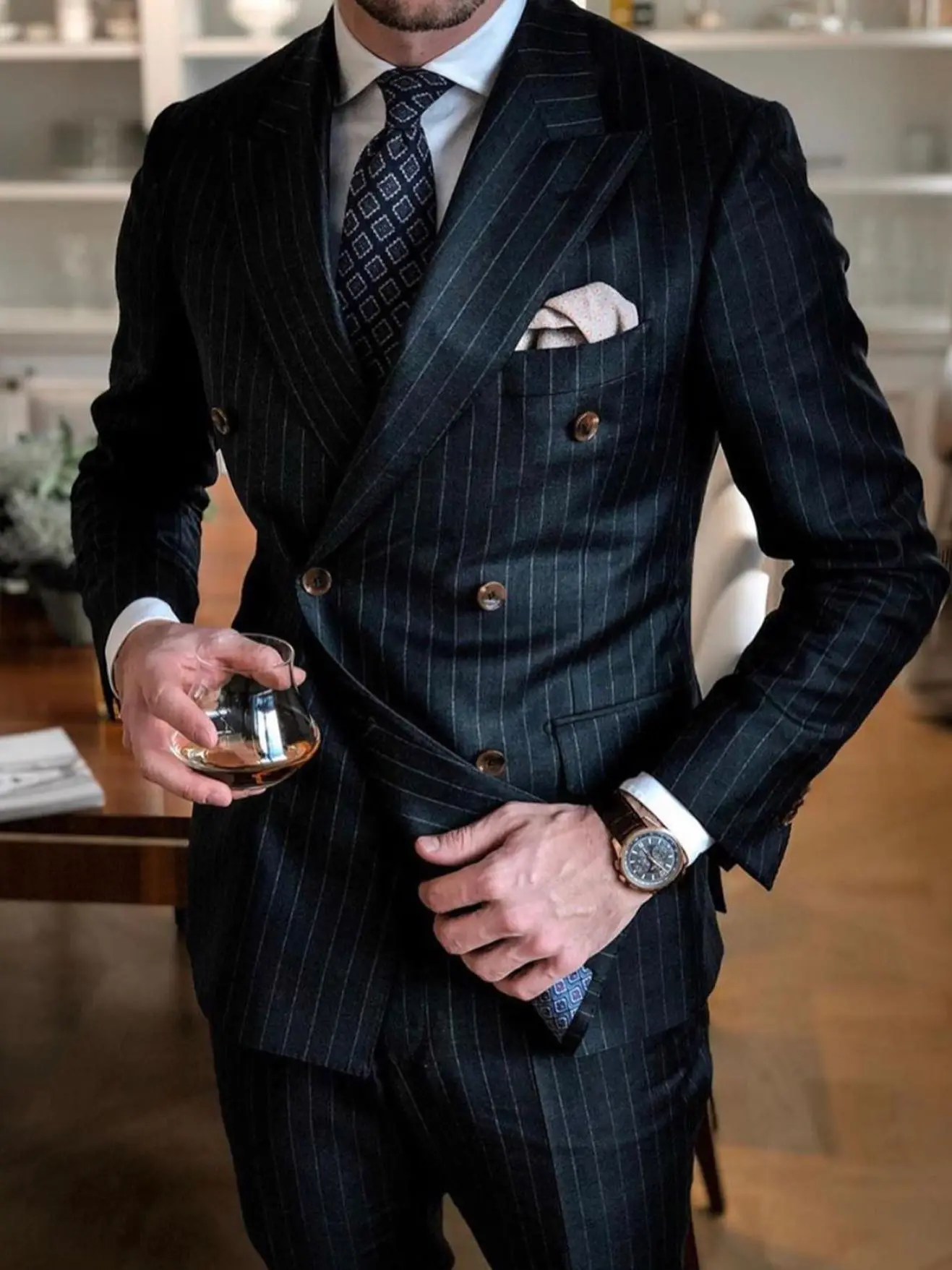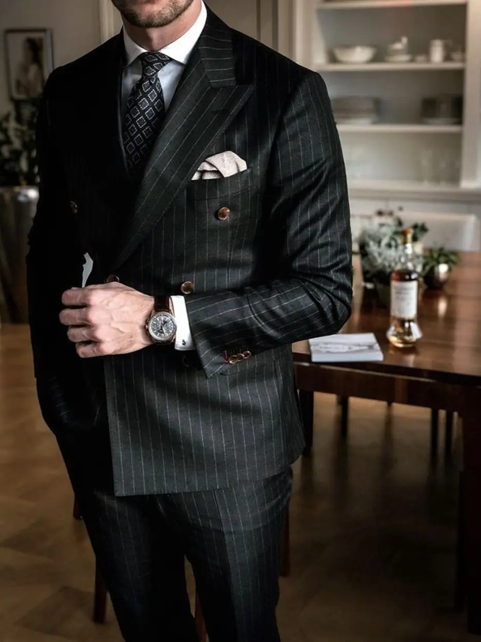 Black Stripe Men Suits Double Breasted Blazer Latest Coat Pant Designs Slim Fit 2 Piece Tuxedos Custom Made Groom Prom Ternos