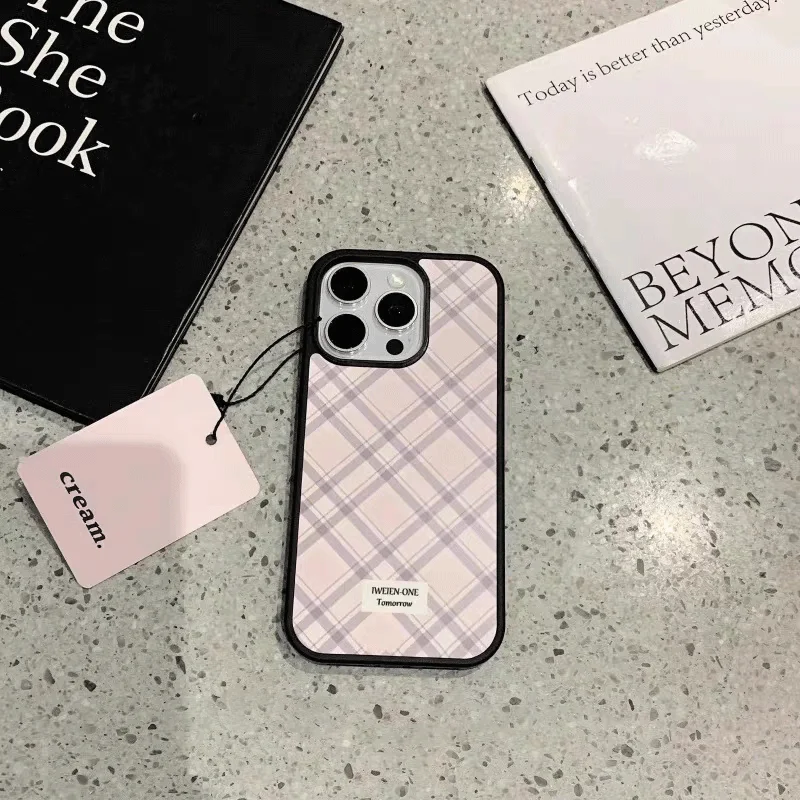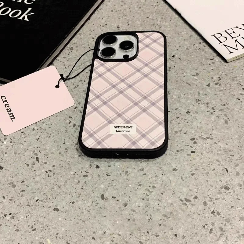 Blogger’s Style Lovely Girl Pink Check Phone Case For iPhone 16 Pro Max 15 14 13 12 11 Pro Mini 7 8 Plus Luxury Y2K Phone Cases