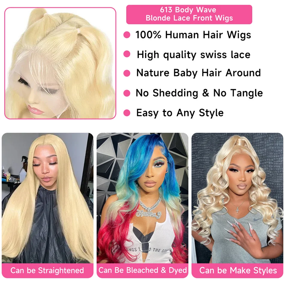 Hair Color: 613 light blonde lace front wigs.Very pure and takes color well.