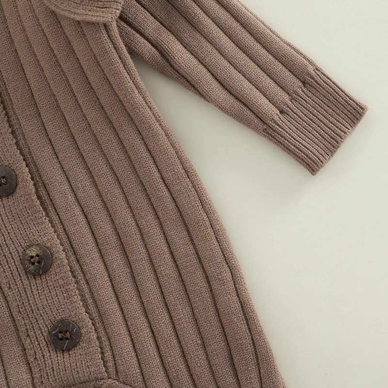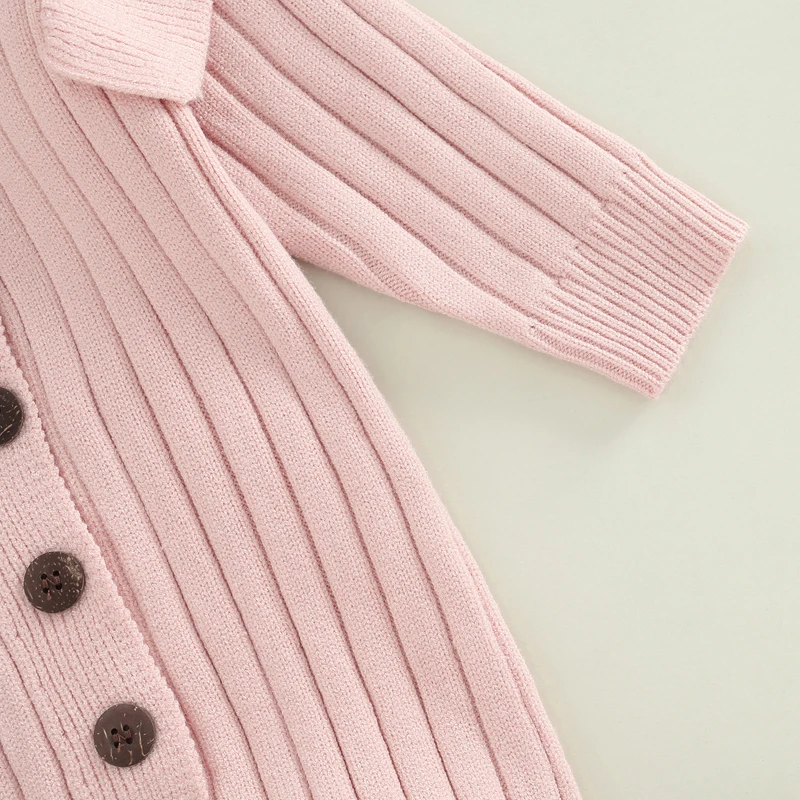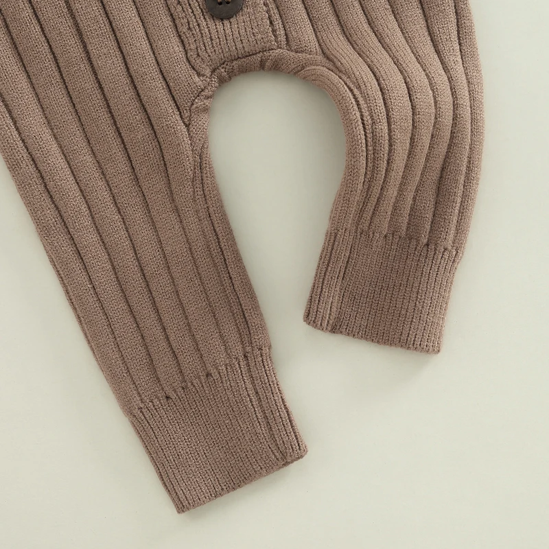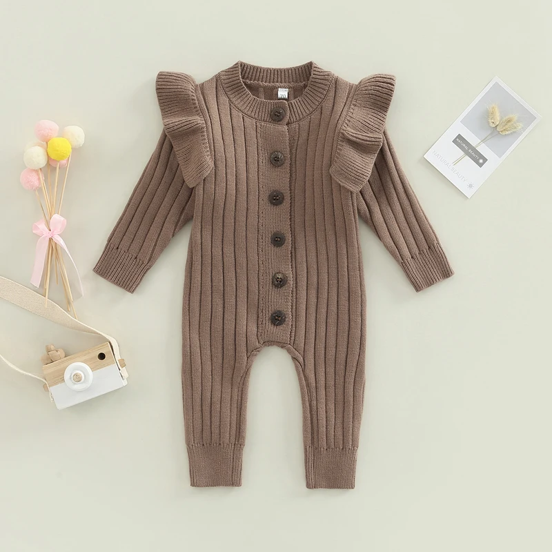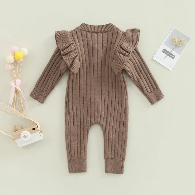 Blotona Newborn Baby Girls Fashion Knit Fall Winter Romper Solid Color Ruffled Long Sleeve Button Jumpsuit for Daily Wear