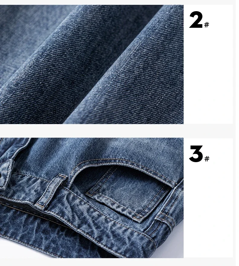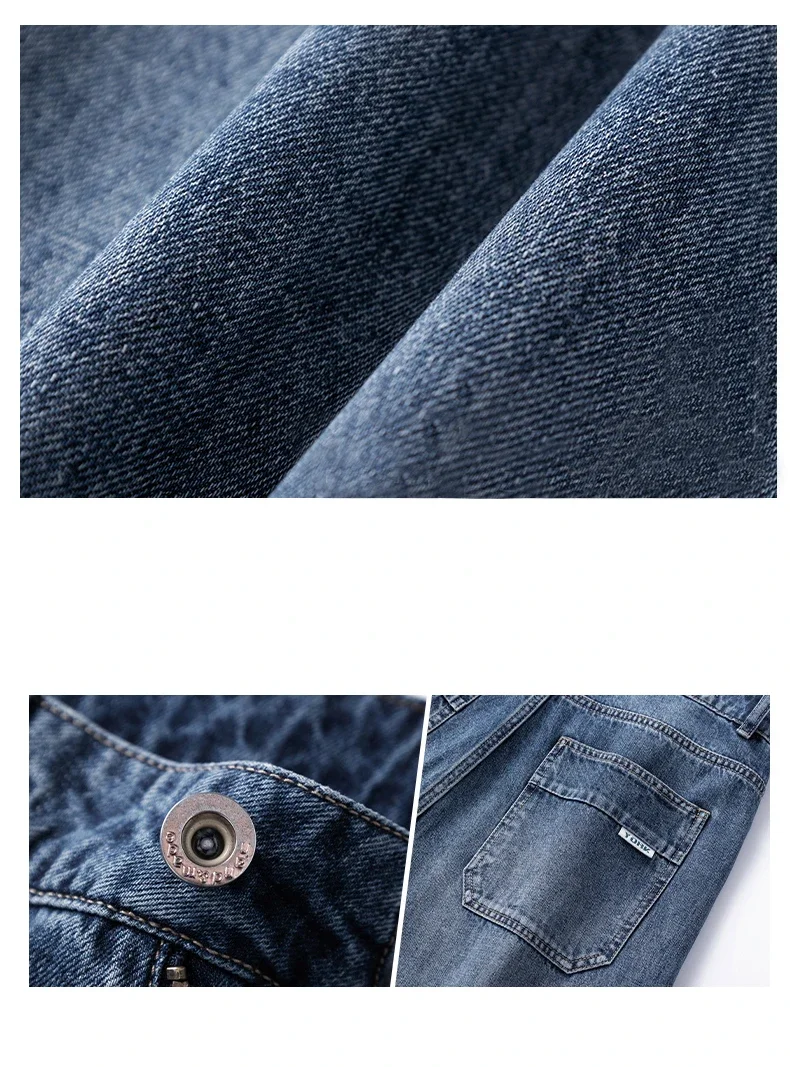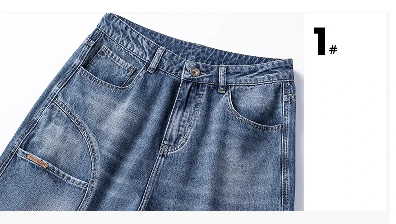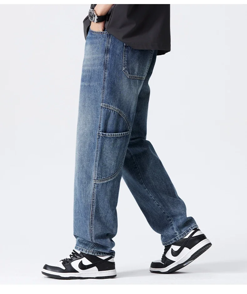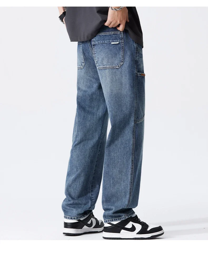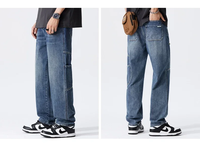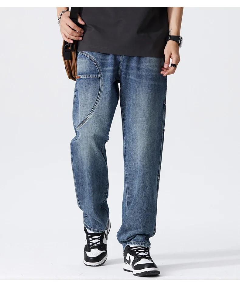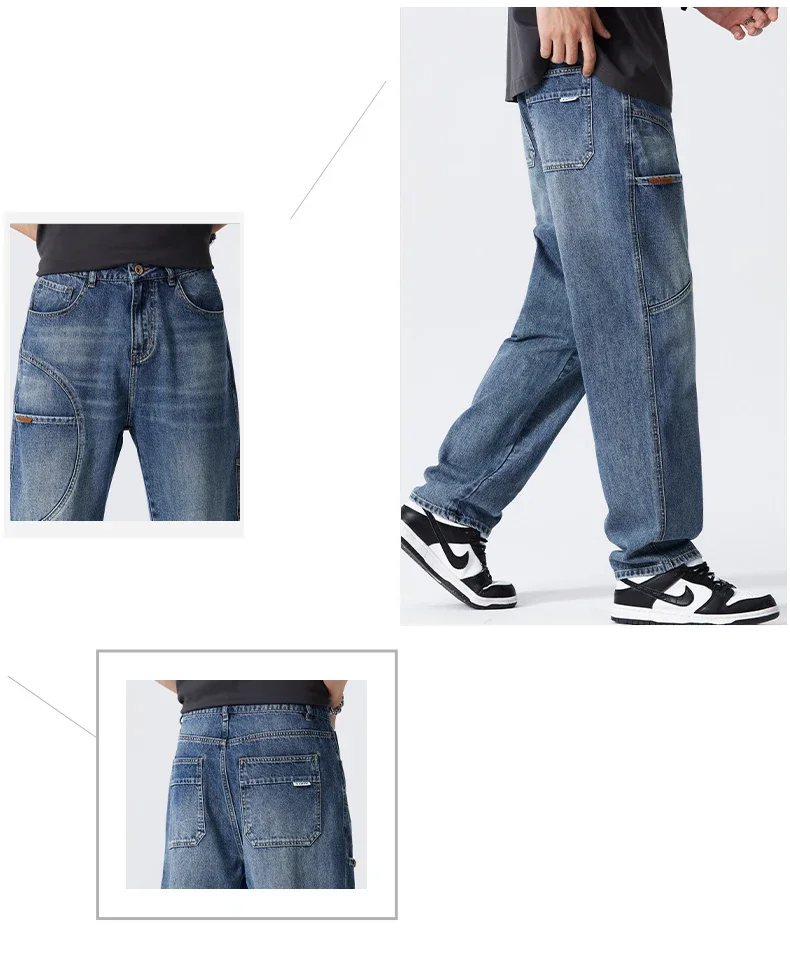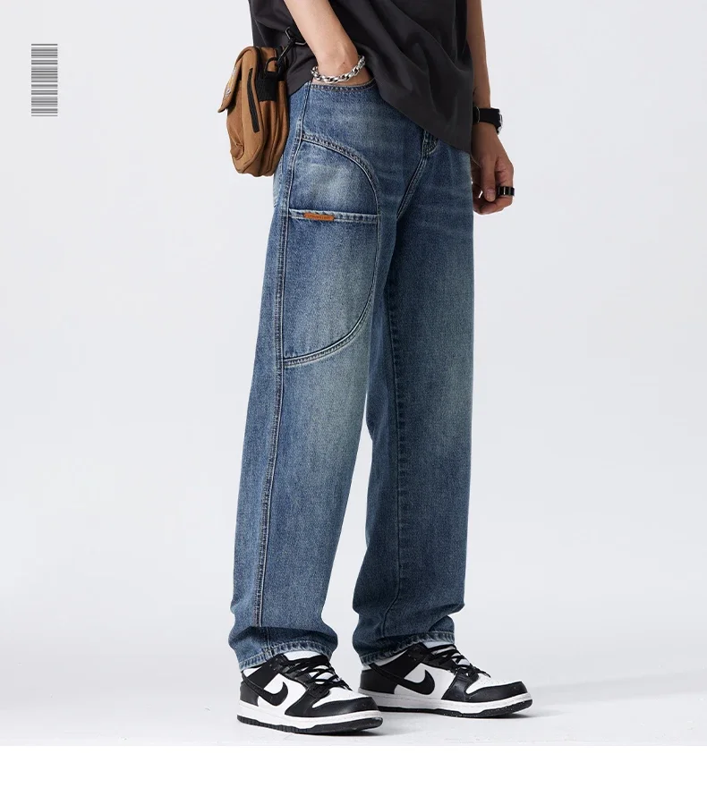 Blue Vintage Jeans Men’s New Patchwork Fashion Straight Pants Male Streetwear Korean Baggy Wide Casual Denim Trousers