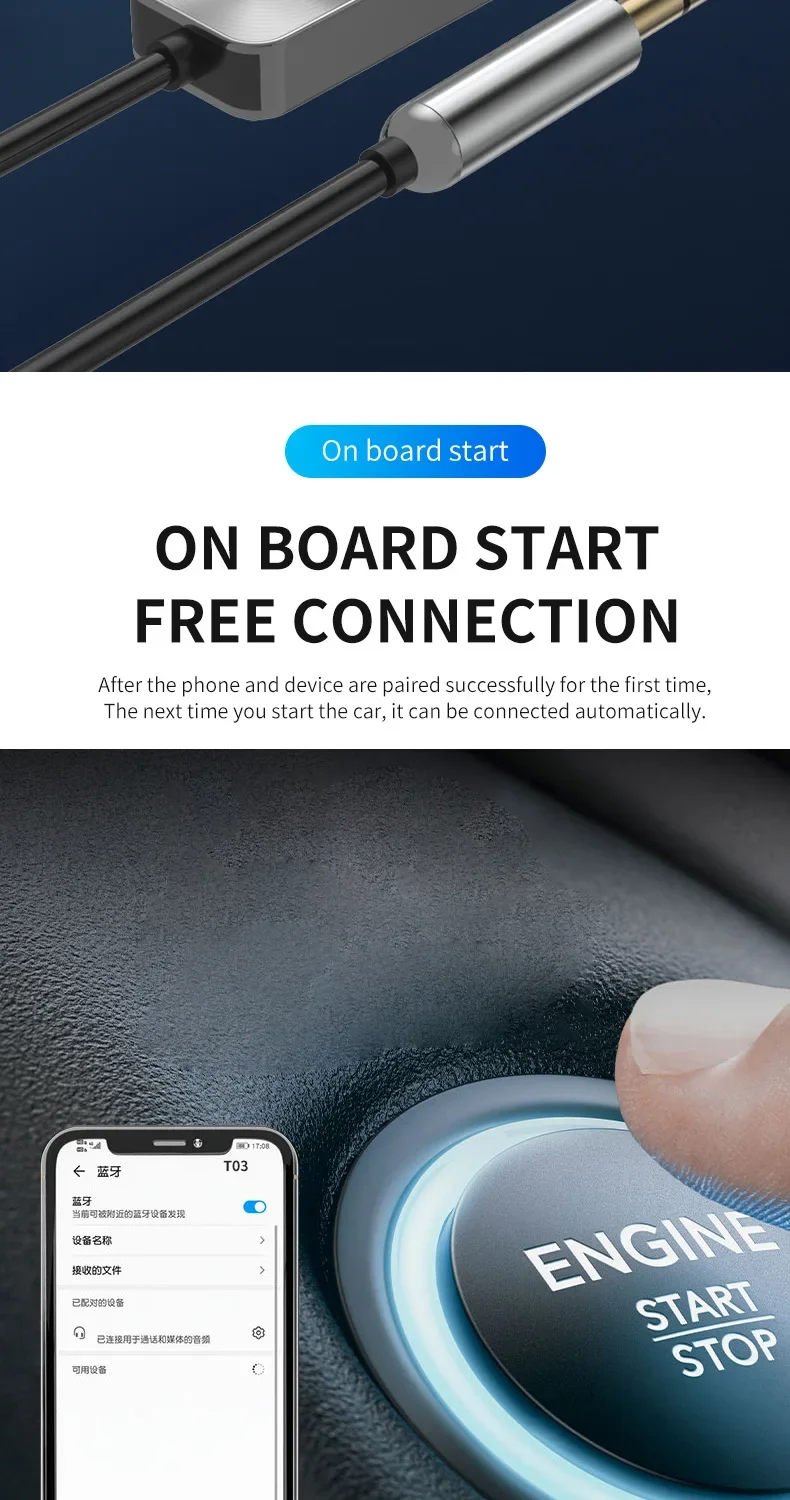 5.Auto-Connect:This Bluetooth receiver will automatically connect to the last paired Bluetooth device when you turn it on the next time.