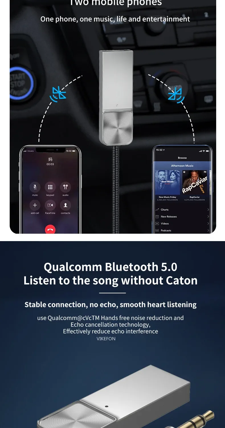 2.Wireless Music Streaming:Stereo stream music to non-Bluetooth headphones and speakers.