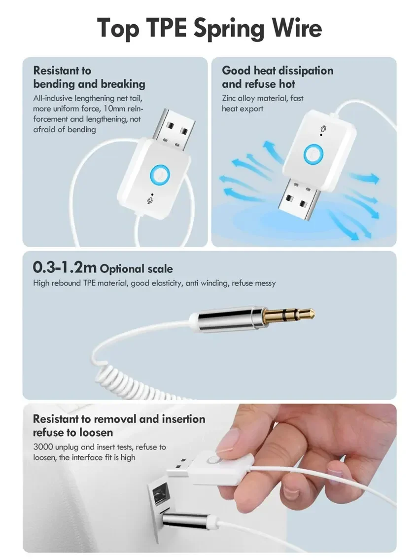 Bluetooth Aux Adapter Dongle USB To 3.5mm Jack Wireless Car Audio Aux Bluetooth 5 Handsfree Kit For Car Receiver BT Transmitter