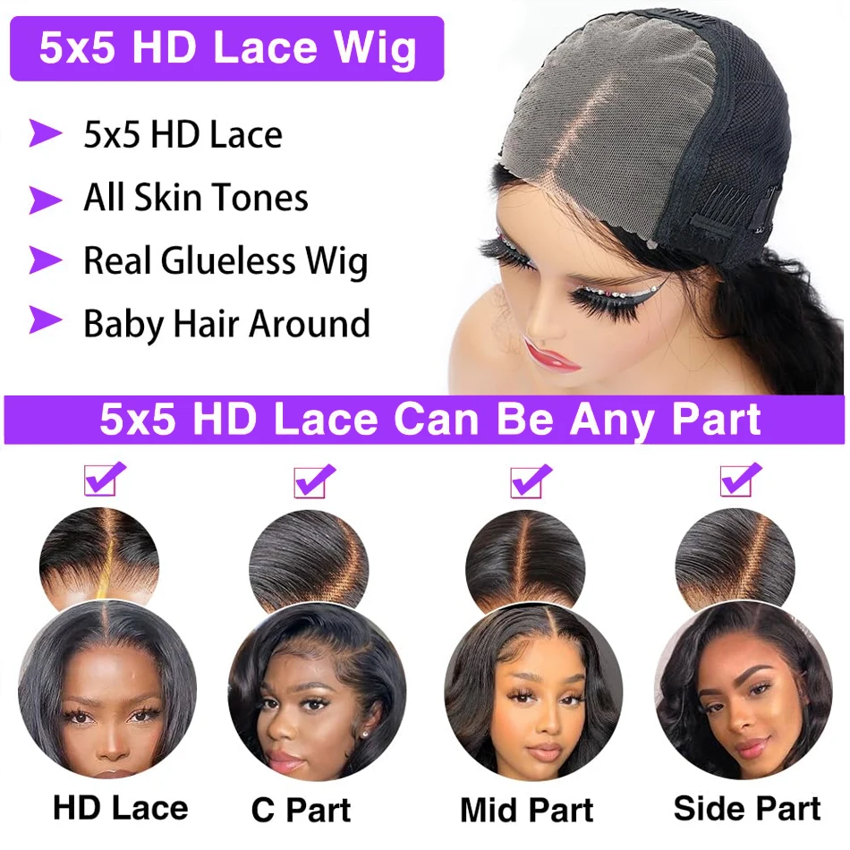 Body Wave 5×5 Glueless Wig Wear and Go Human Hair Ready To Wear Glueless Lace Wigs 13×4 HD Lace Front Human Hair Wig For Women