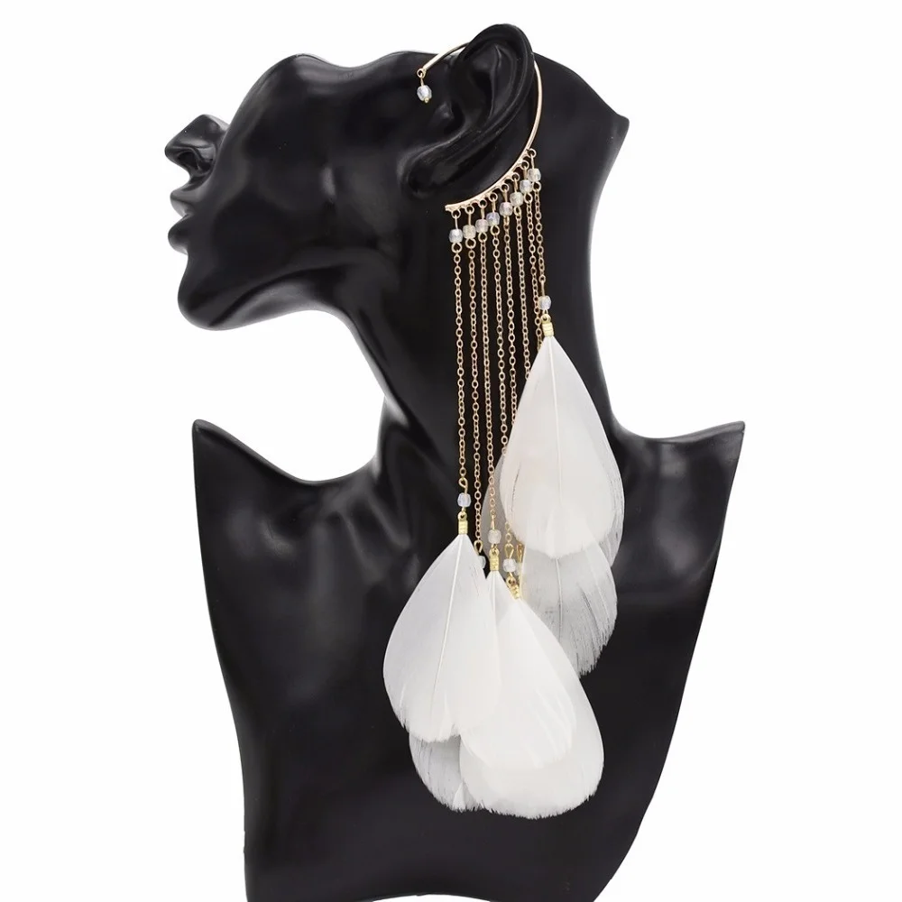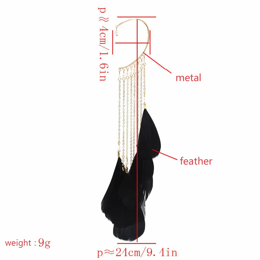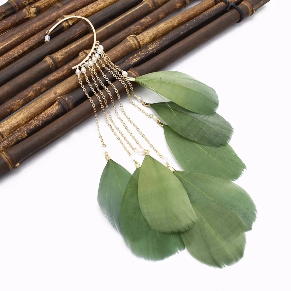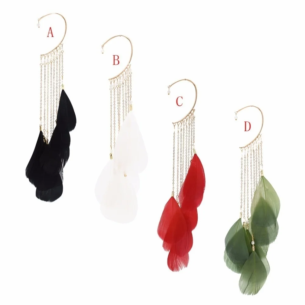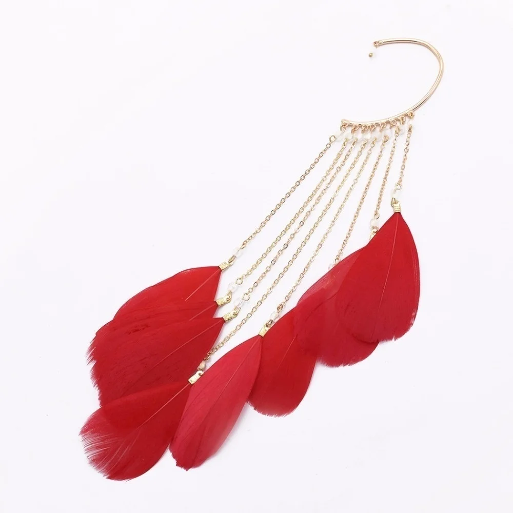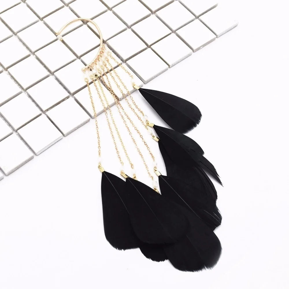 Bohemia Feather Long Tassel Cuff Earring For Women Without Piercing Charm Ear Cuffs Hanging Earrings Clip On Earring 2022 1pc