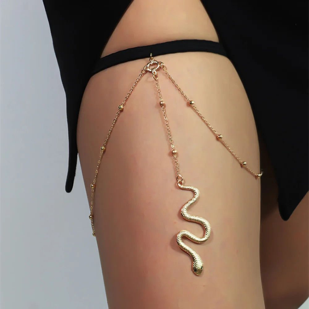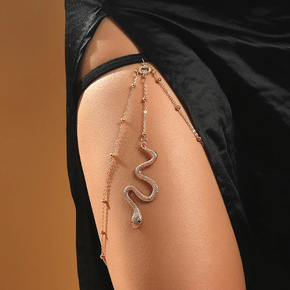 Bohemian Boho Silver Gold Color Metal Tassel Body Jewelry Thigh Chain Nightclub Sexy Snake Pendant Leg Chain for Women Gift
