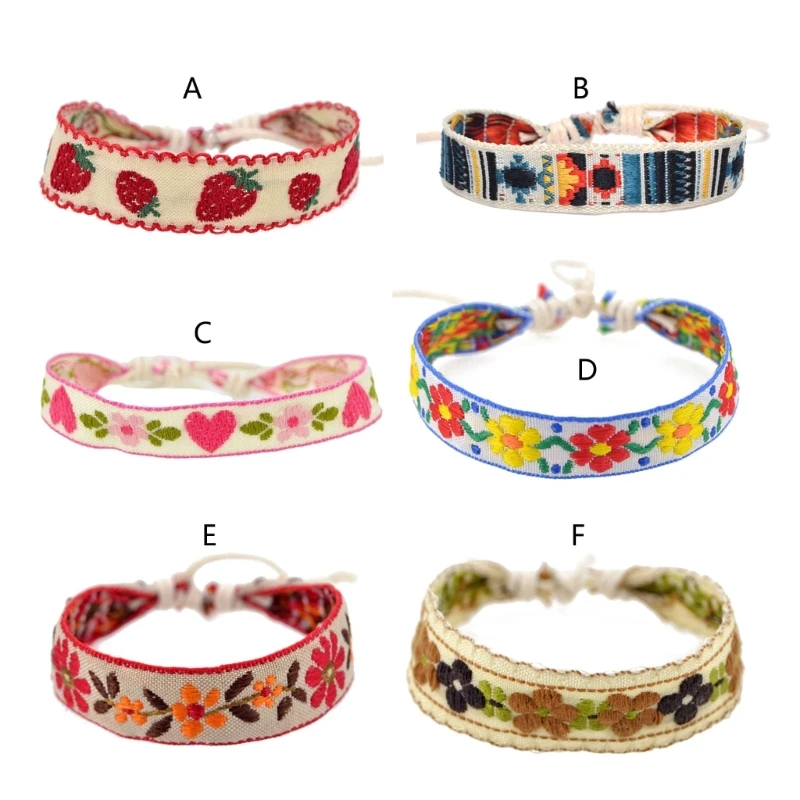 Boho Strawberry Flower Embroidered Bracelet Wristbands Ethnic Jewelry for Girls