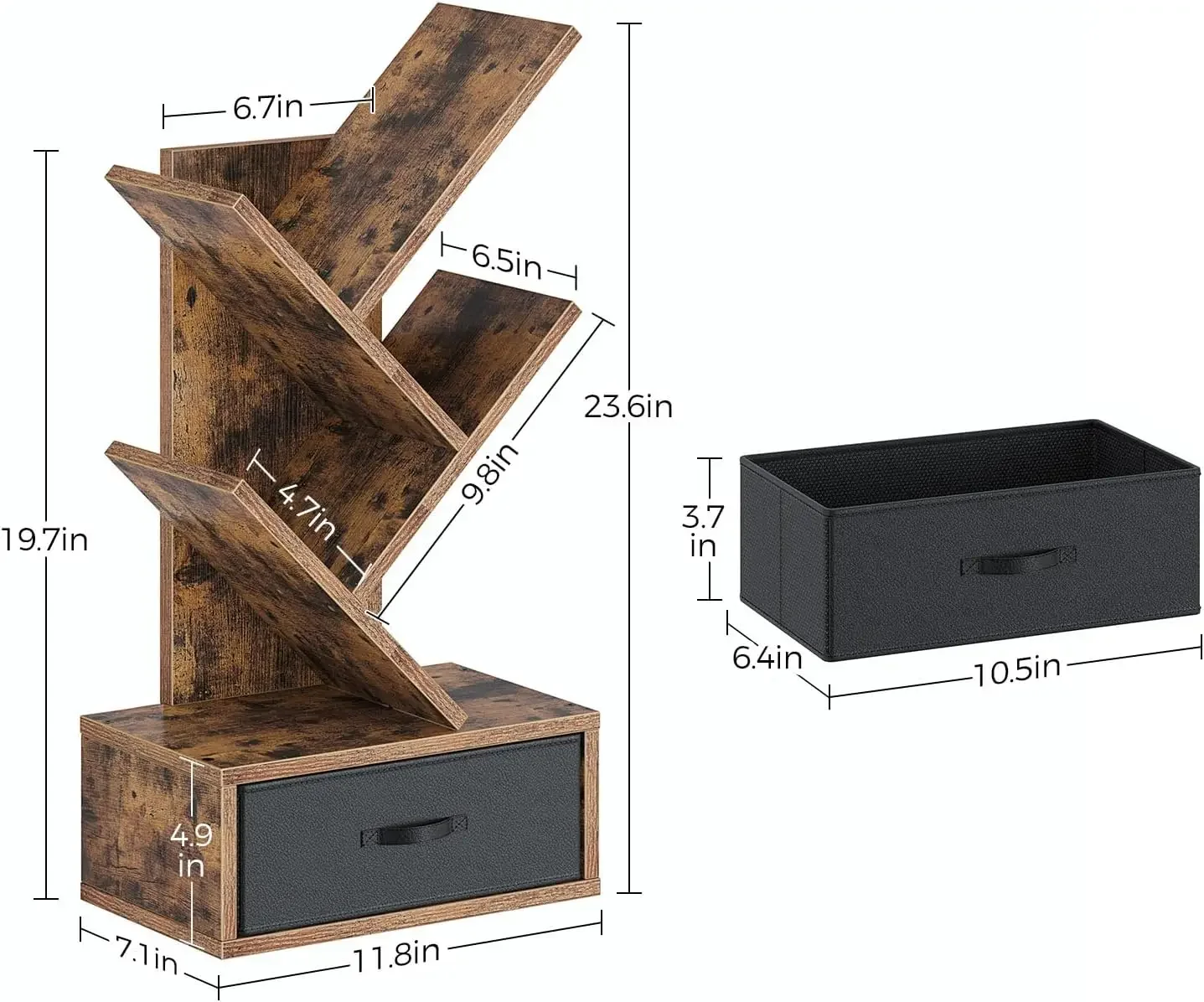 - Reliable & Sturdy Design: tree bookshelf is designed by materials, which meets EPA TSCA Title VI and Carb Certification and a non-woven Drawer, not only provides great stability and durability, but also offers you a safe, healthy and large storage space in your home bedroom. It is perfect accessorize, organize, and store your items while keeping them tidy and organized at living room.