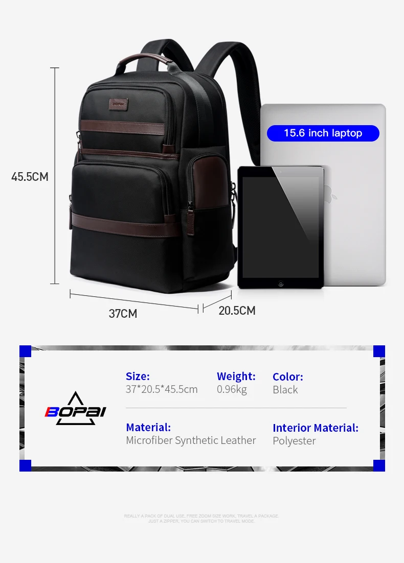 BOPAI 15.6 inch Oxford Cloth Backpack Men’s Business Multifunctional Laptop USB Charging Bag Large Capacity Designer Backpack