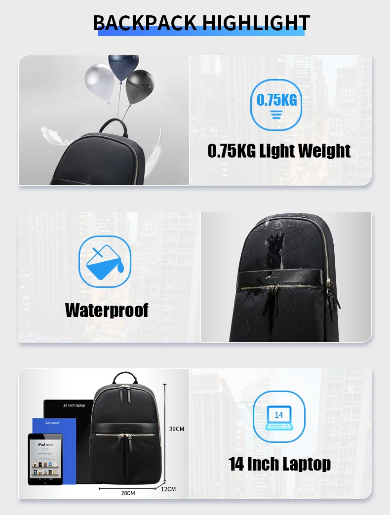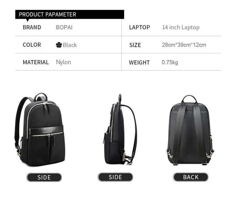 BOPAI Wholesale Designer Light Slim Office Waterproof Water Bottle Fashion Casual 14 Inch Laptop Ladies Business Women Backpack