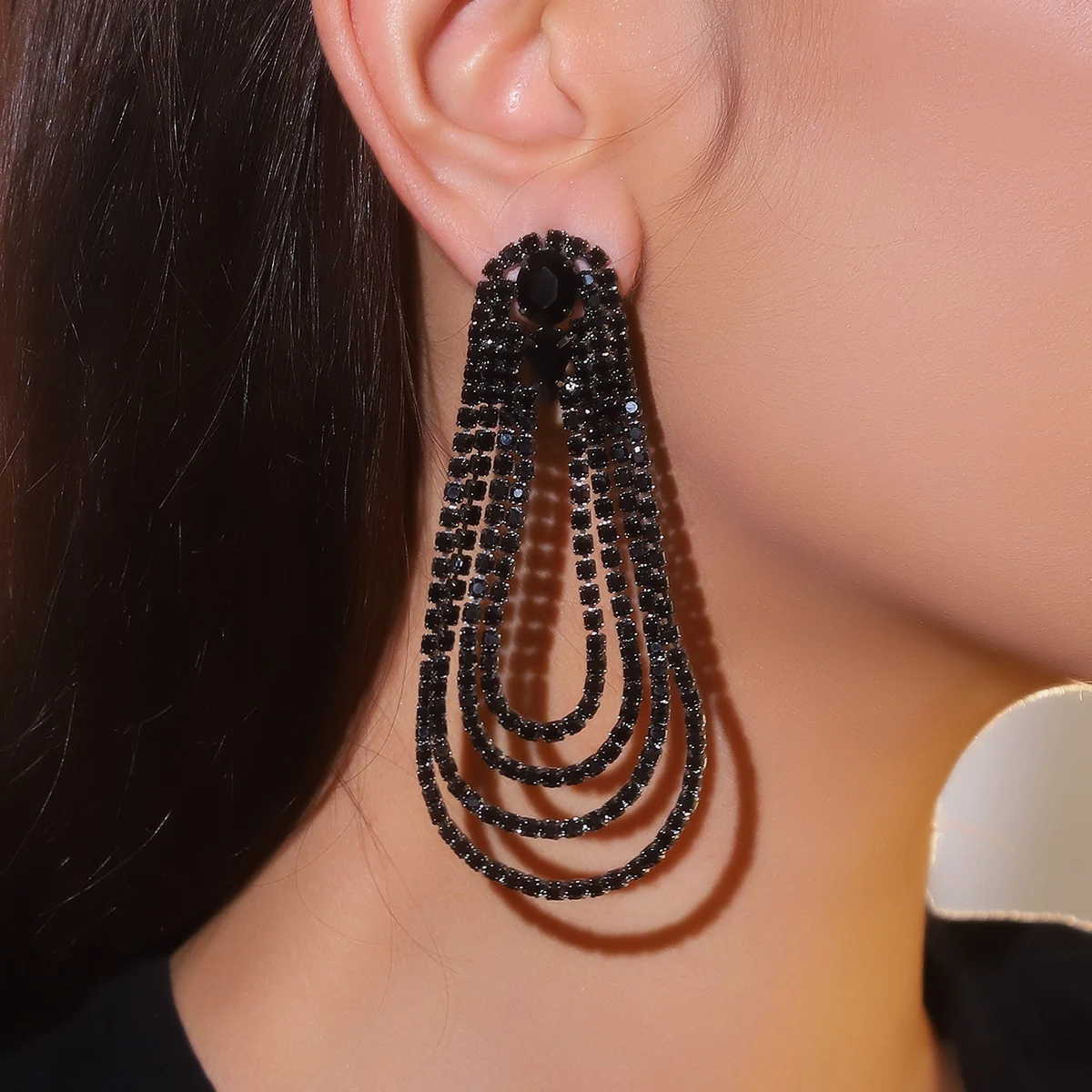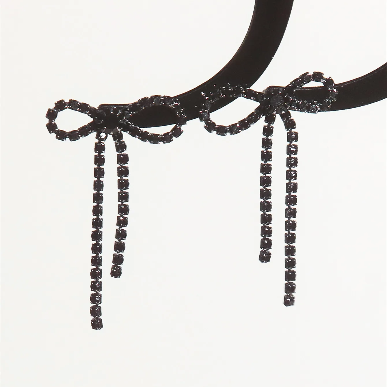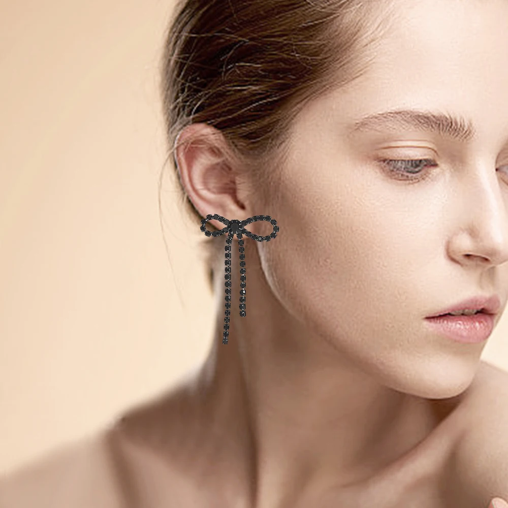 Bow Earrings for Women Girls Rhinestone Long Tassel Earring Ribbon Bow Drop Earring Black copper Dangle Earrings Sparkly Jewelry