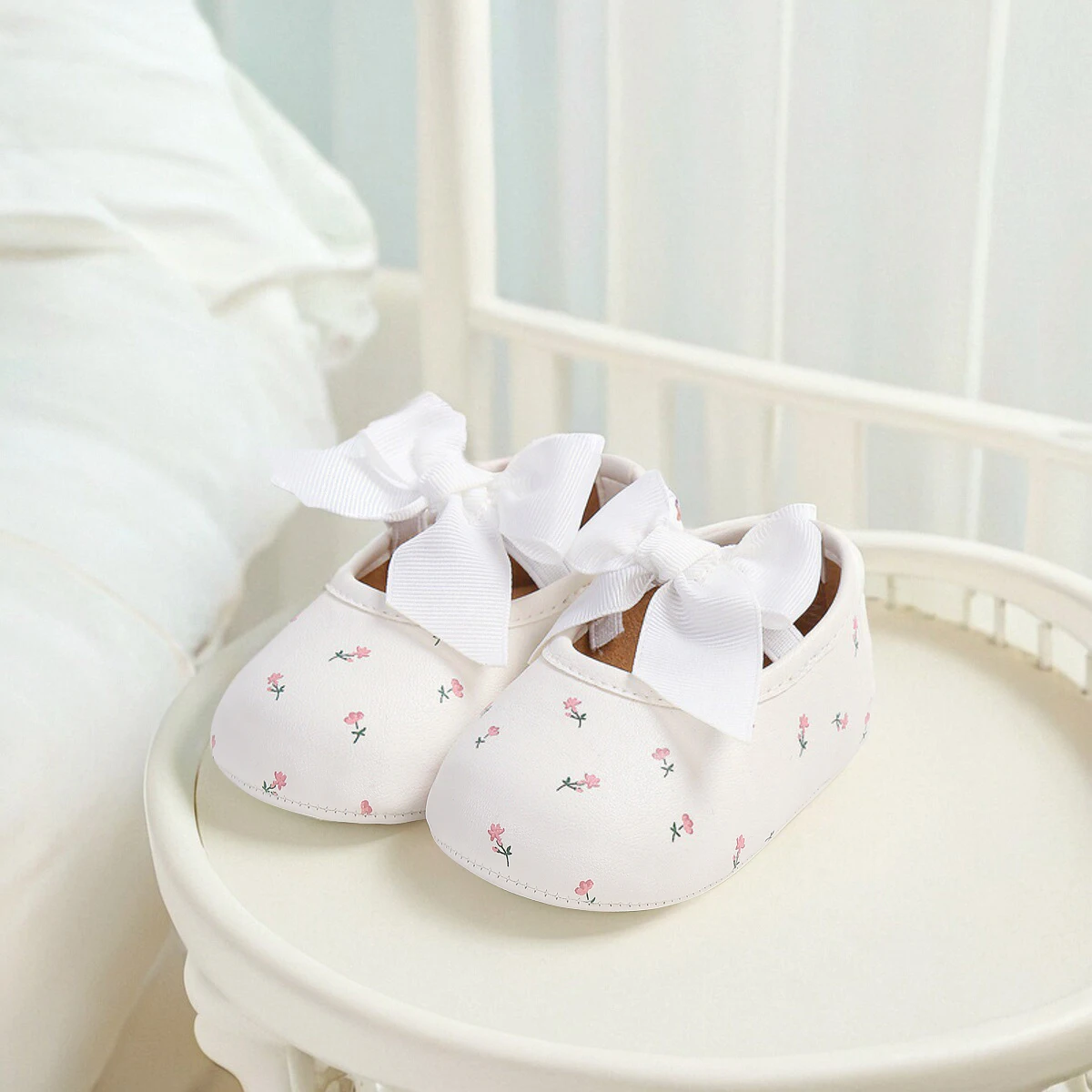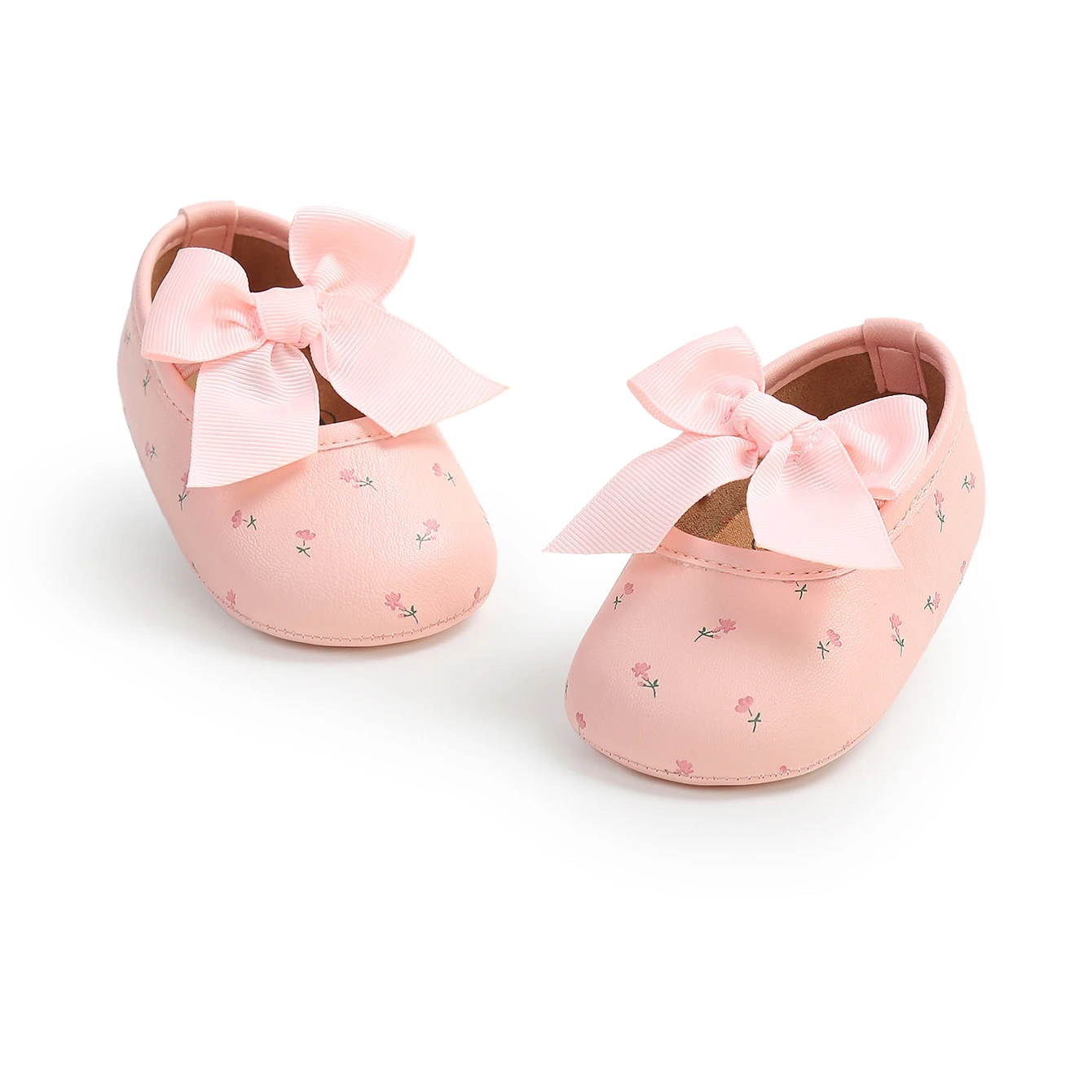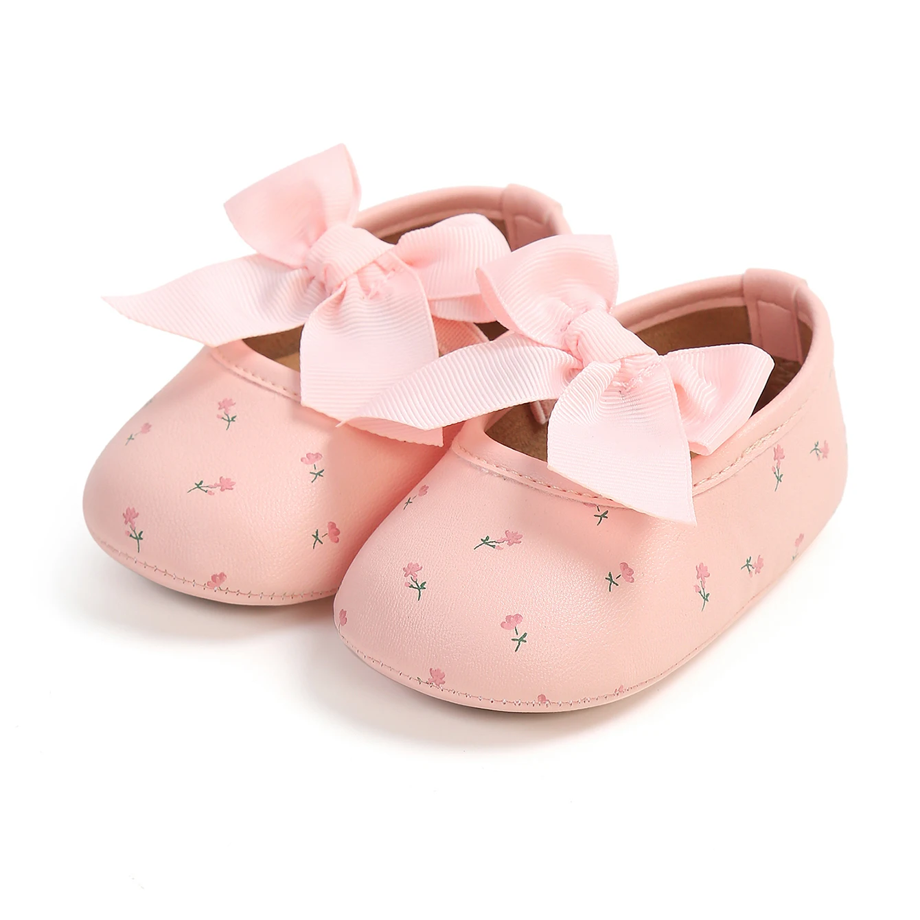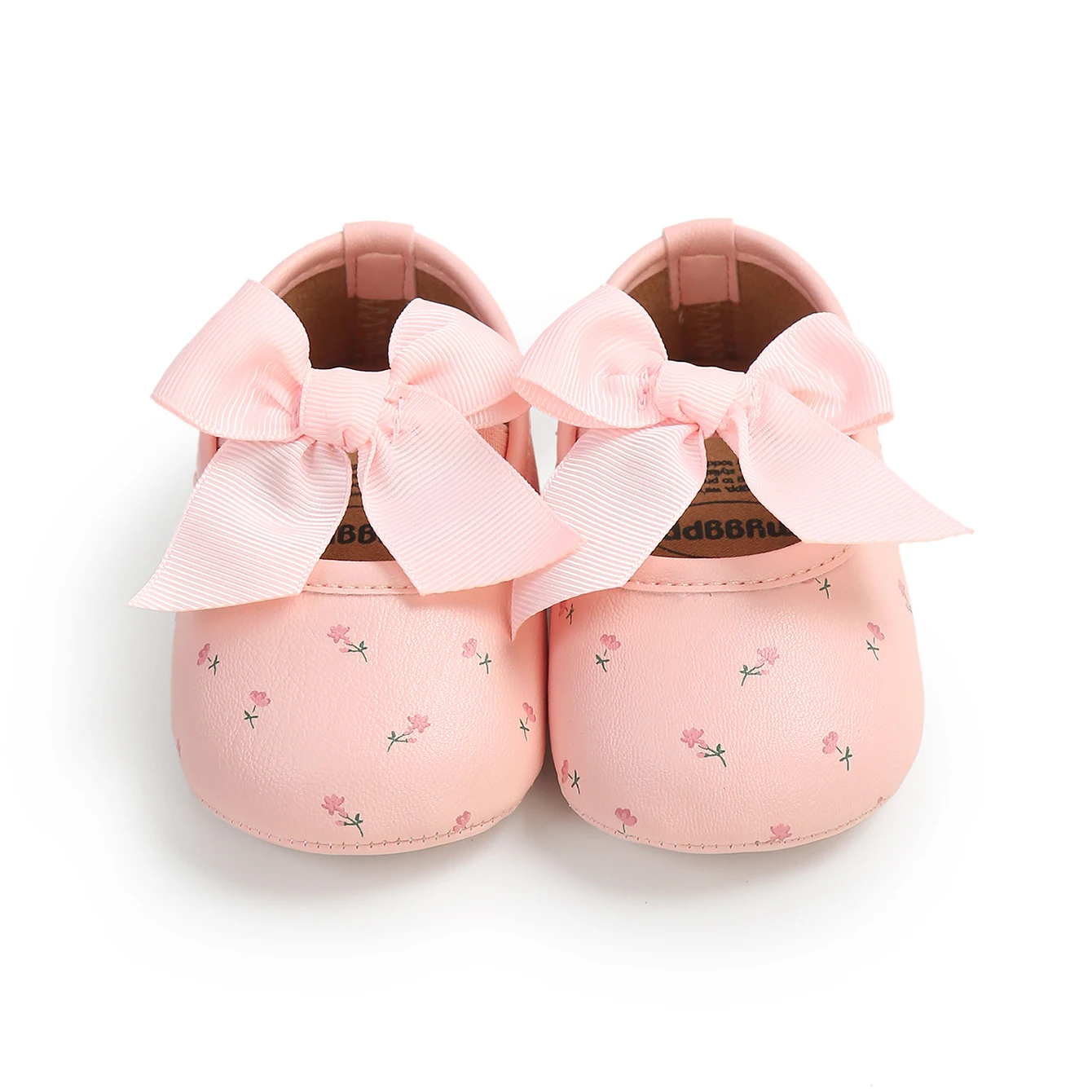Bowknot Newborn Baby Shoes Princess Flower Embroidery PU Leather Girls Moccasin Anti-slip Soft Rubber Footwear Infant Crib Shoes