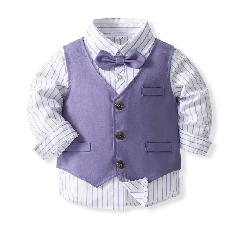 Boys formal cotton children’s clothing set,English striped long sleeved shirt,flower boy birthday party dress for young children