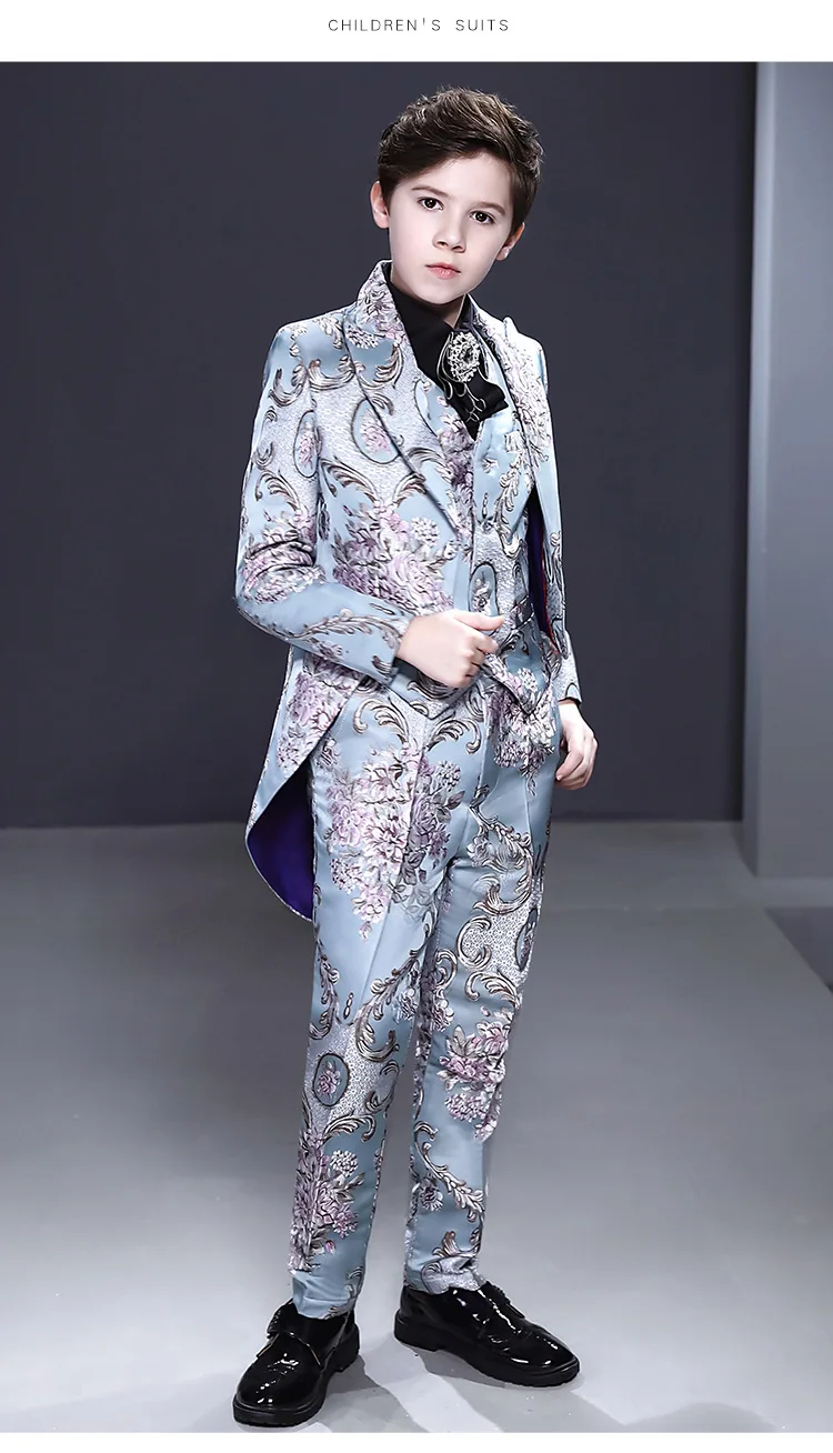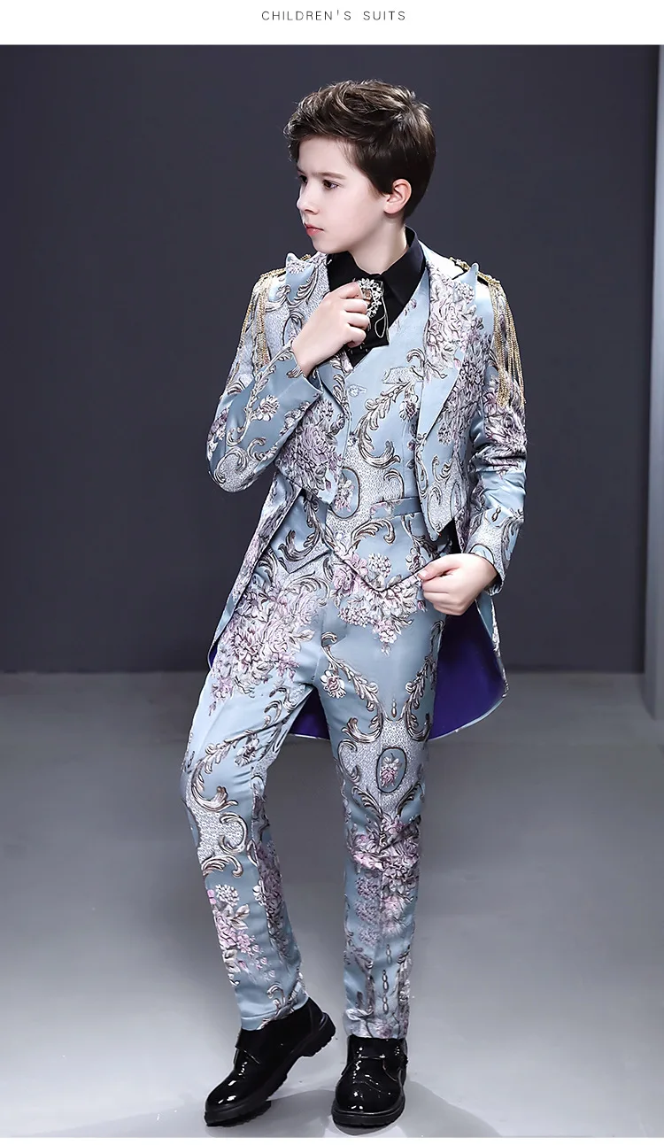Boys’ tailcoat, small suit, handsome British style host dress, model runway, piano performance suit, medium size children’s suit