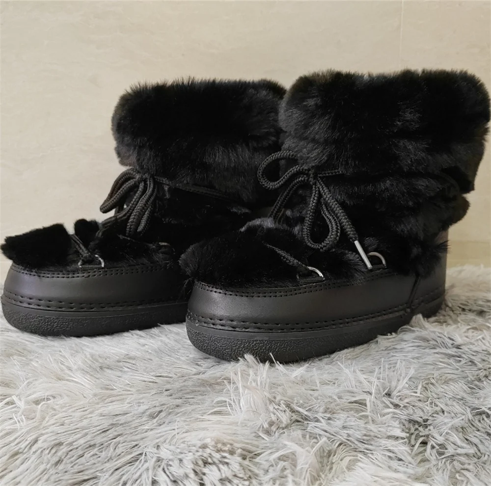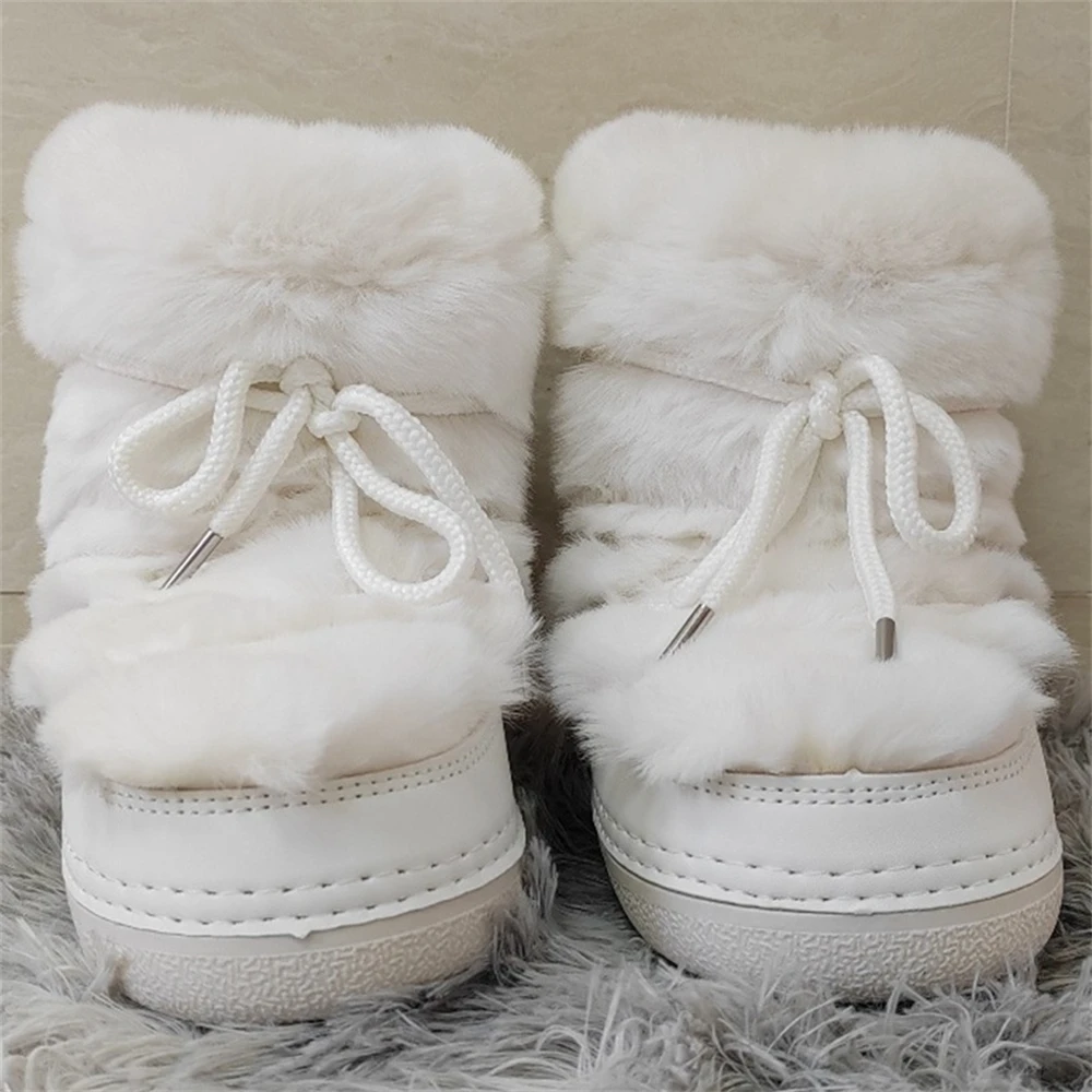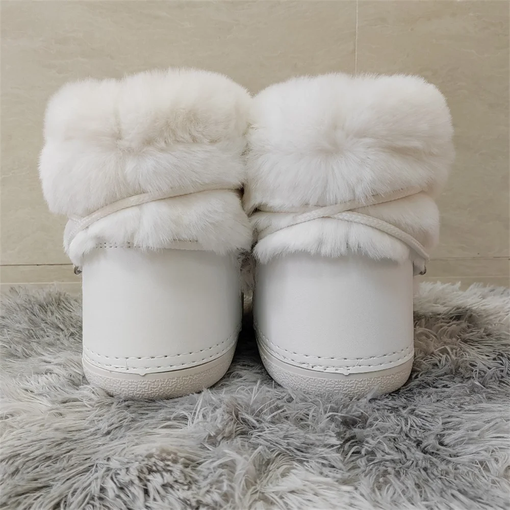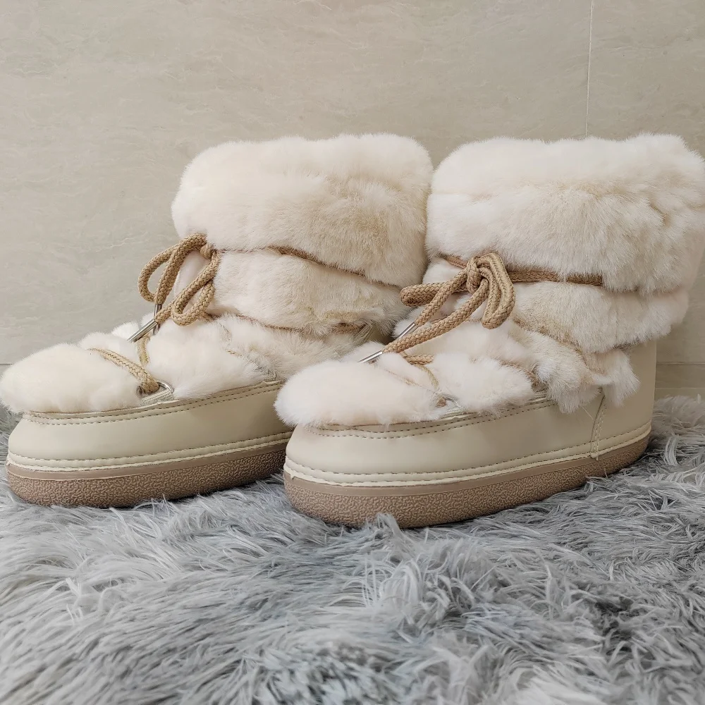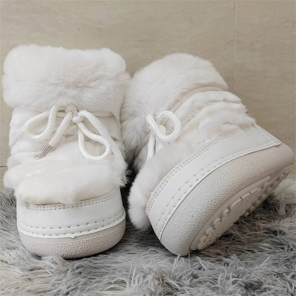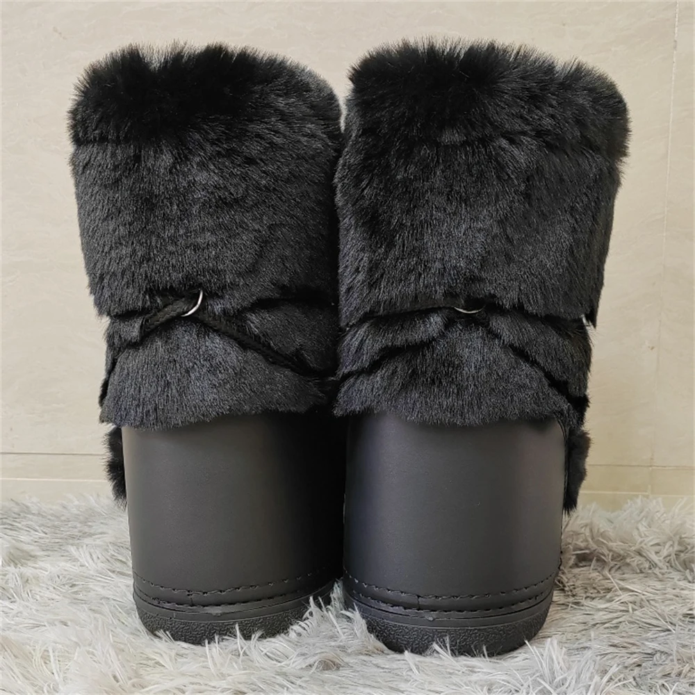Brand Luxury Fluffy Furry Rabbit Fur Boots 2024 Winter Snow Boots Women Ski Boots Woman Thick Warm Short Ankle Snow Boots