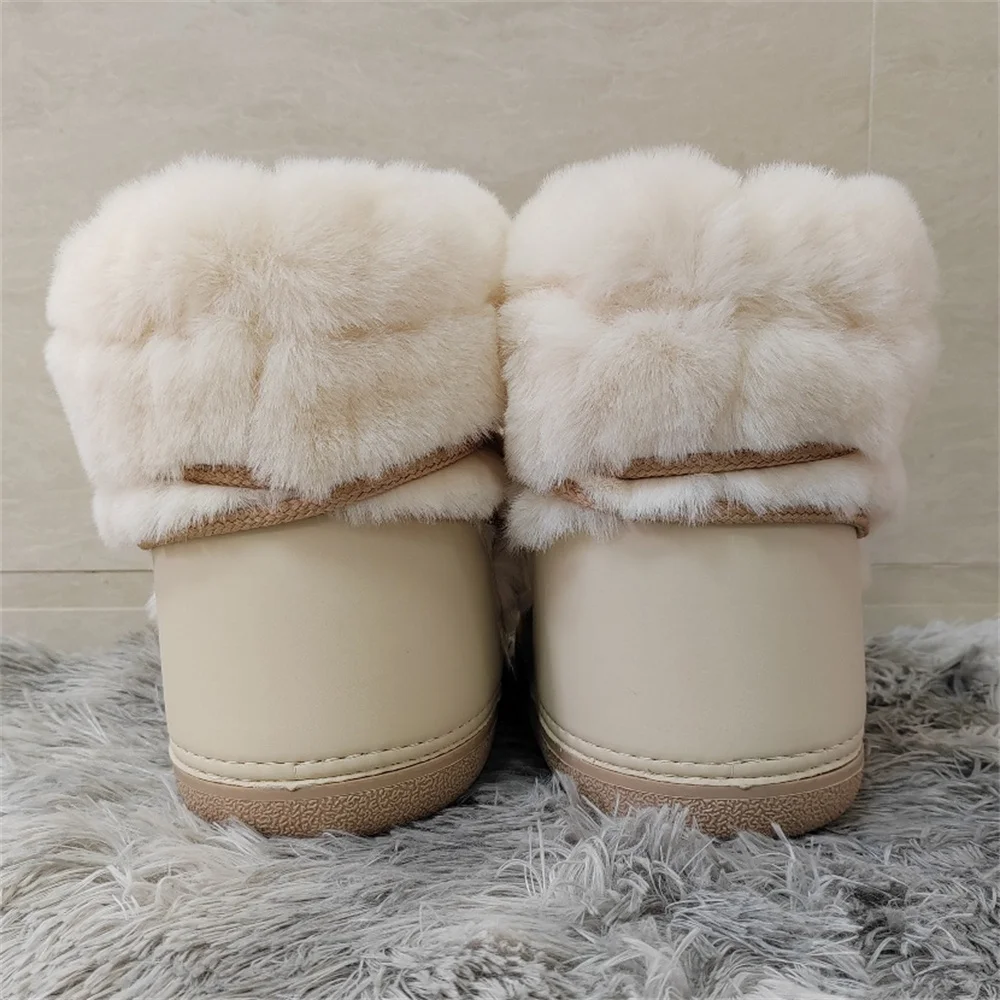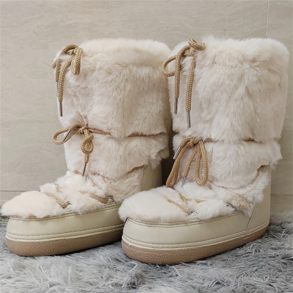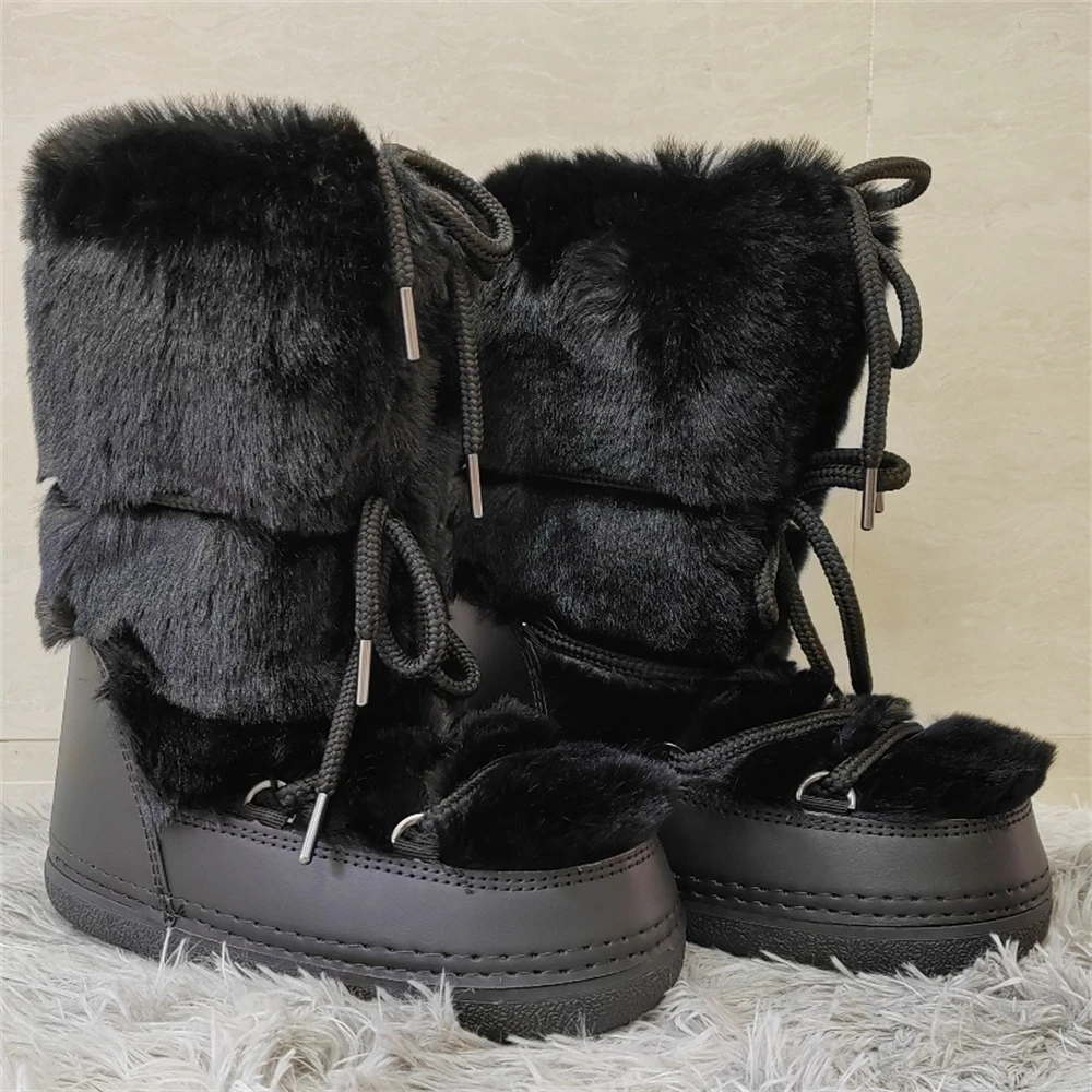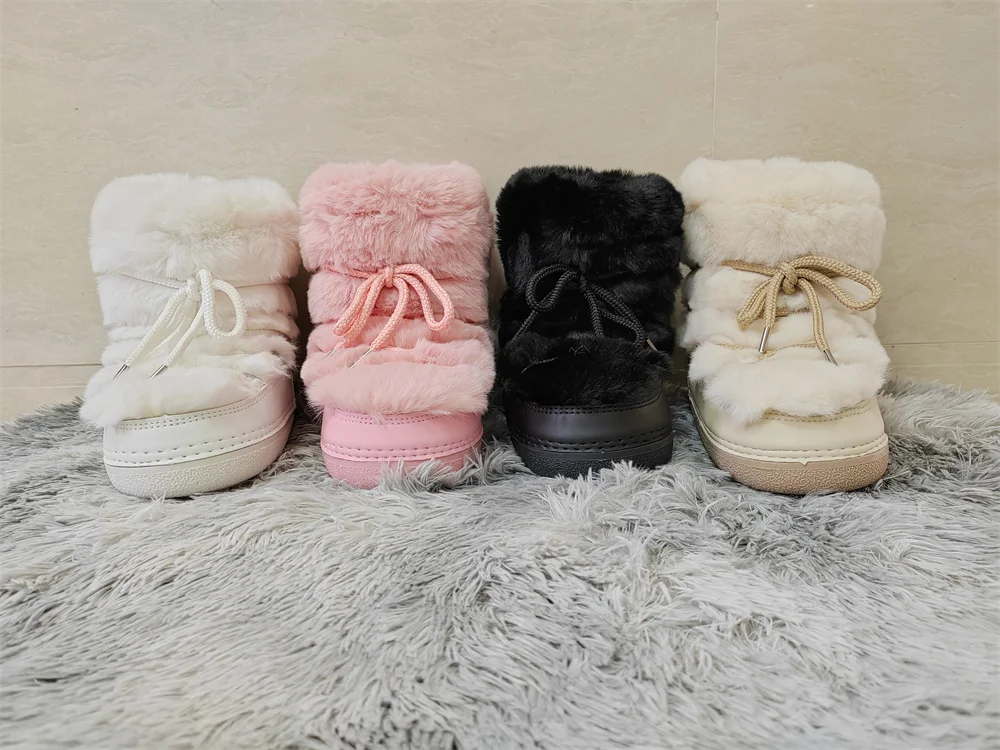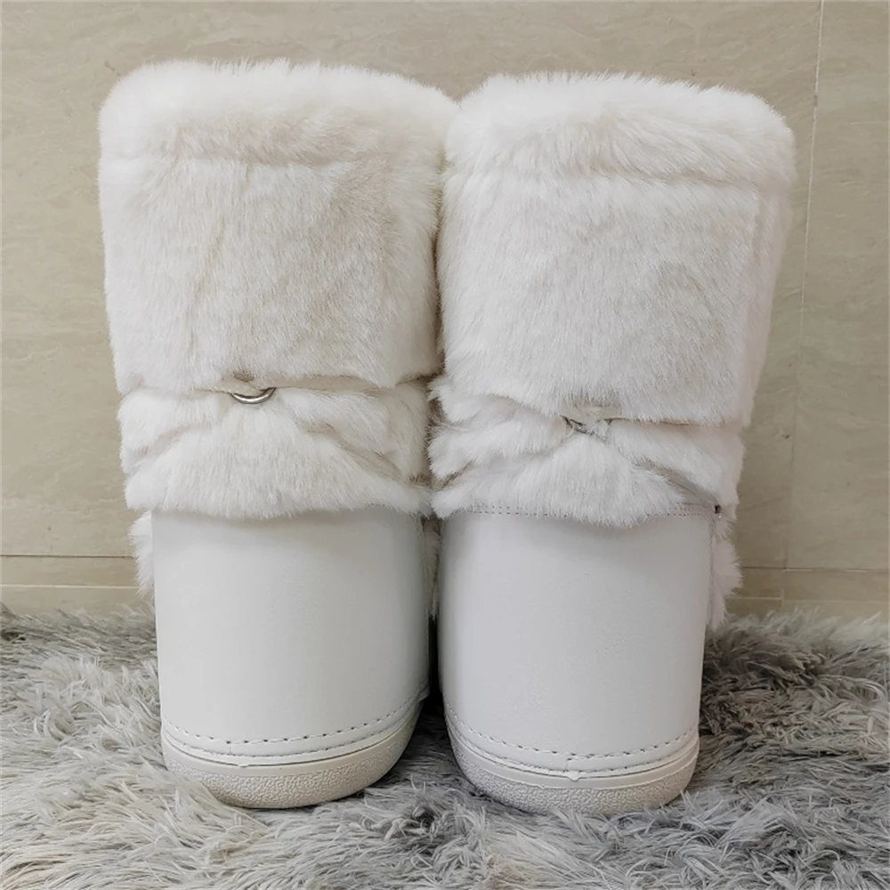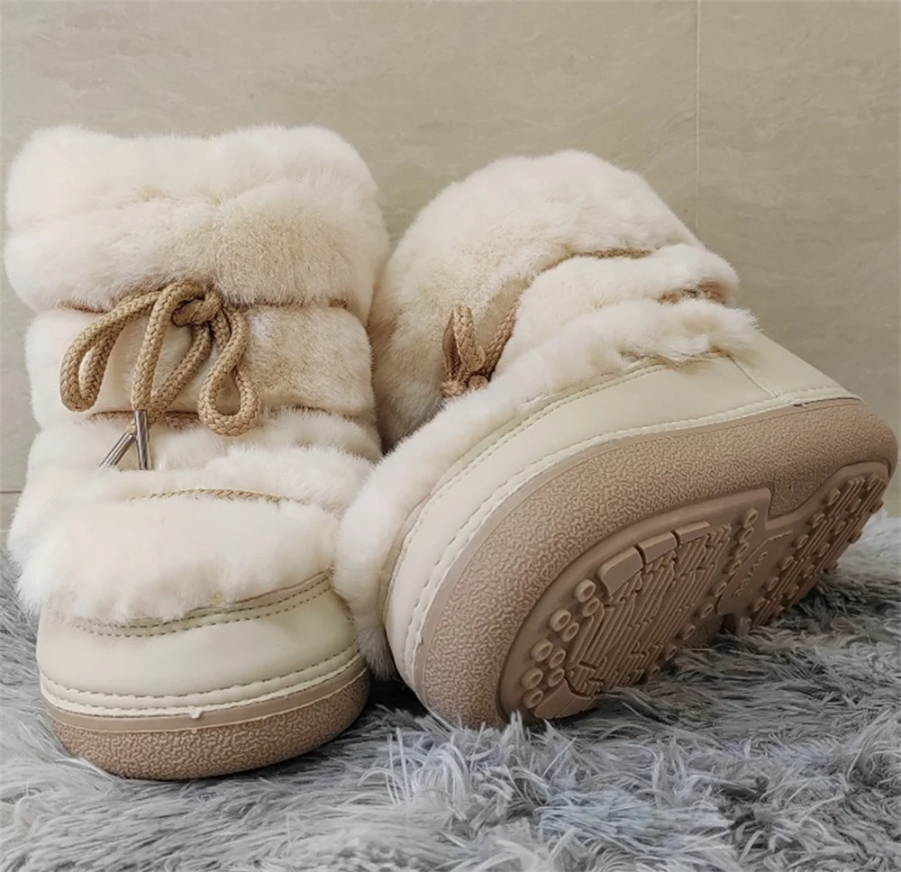 Brand Luxury Fluffy Furry Rabbit Fur Boots 2024 Winter Snow Boots Women Ski Boots Woman Thick Warm Short Ankle Snow Boots