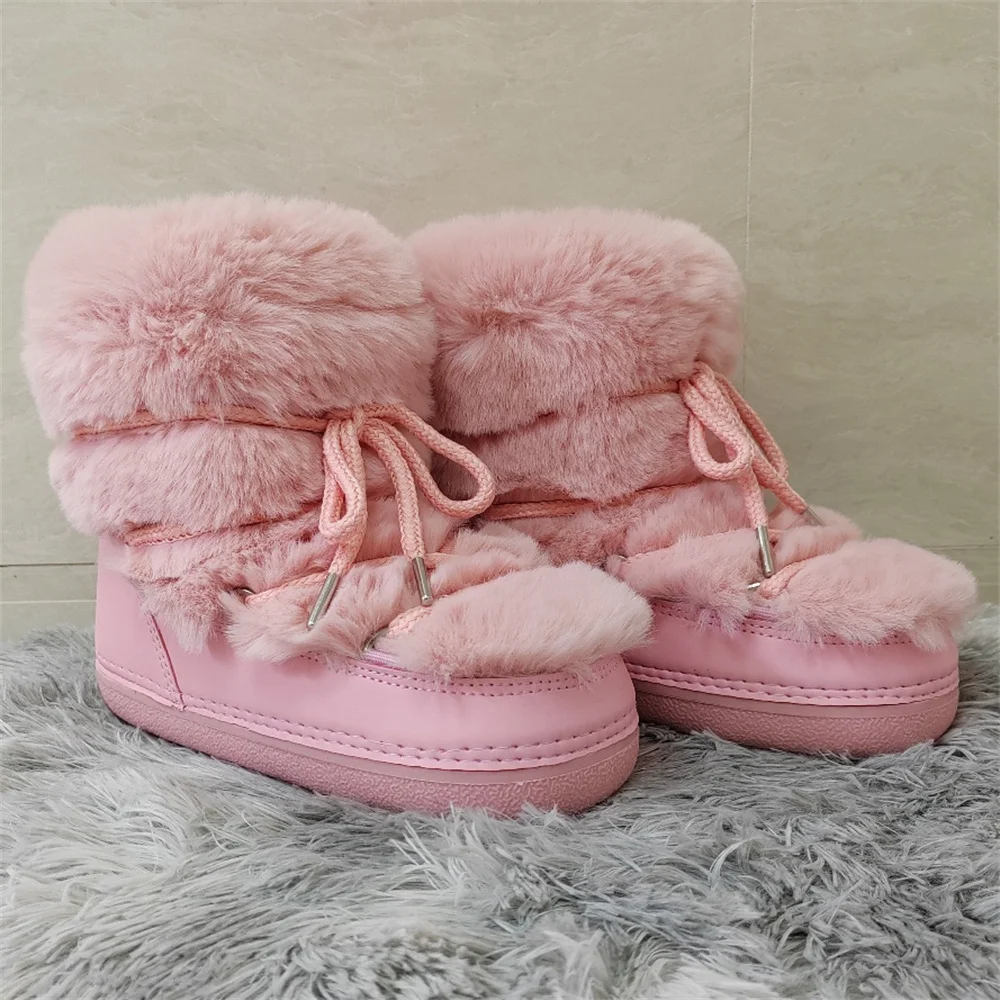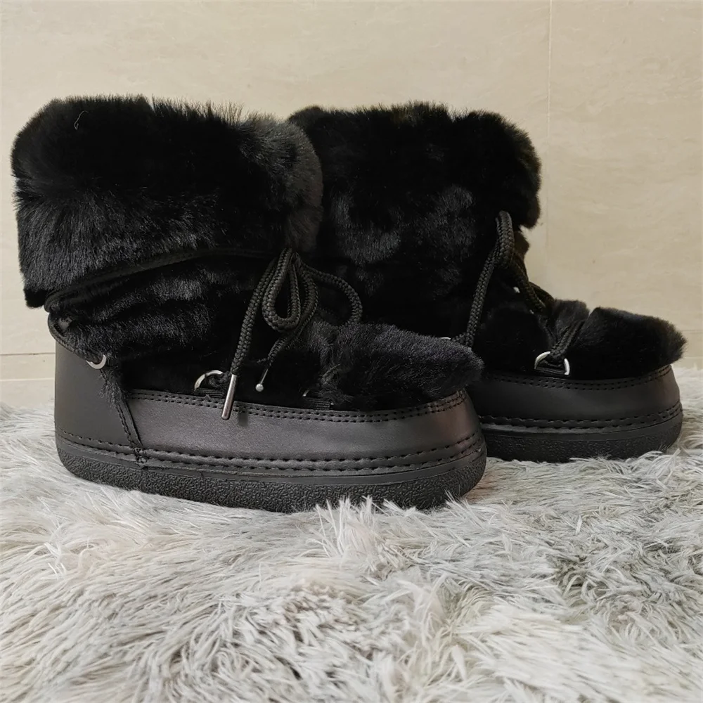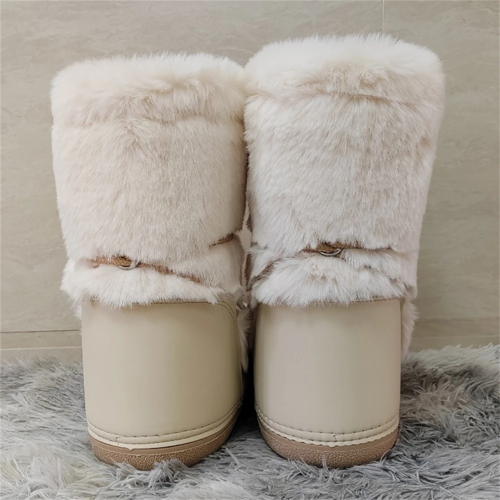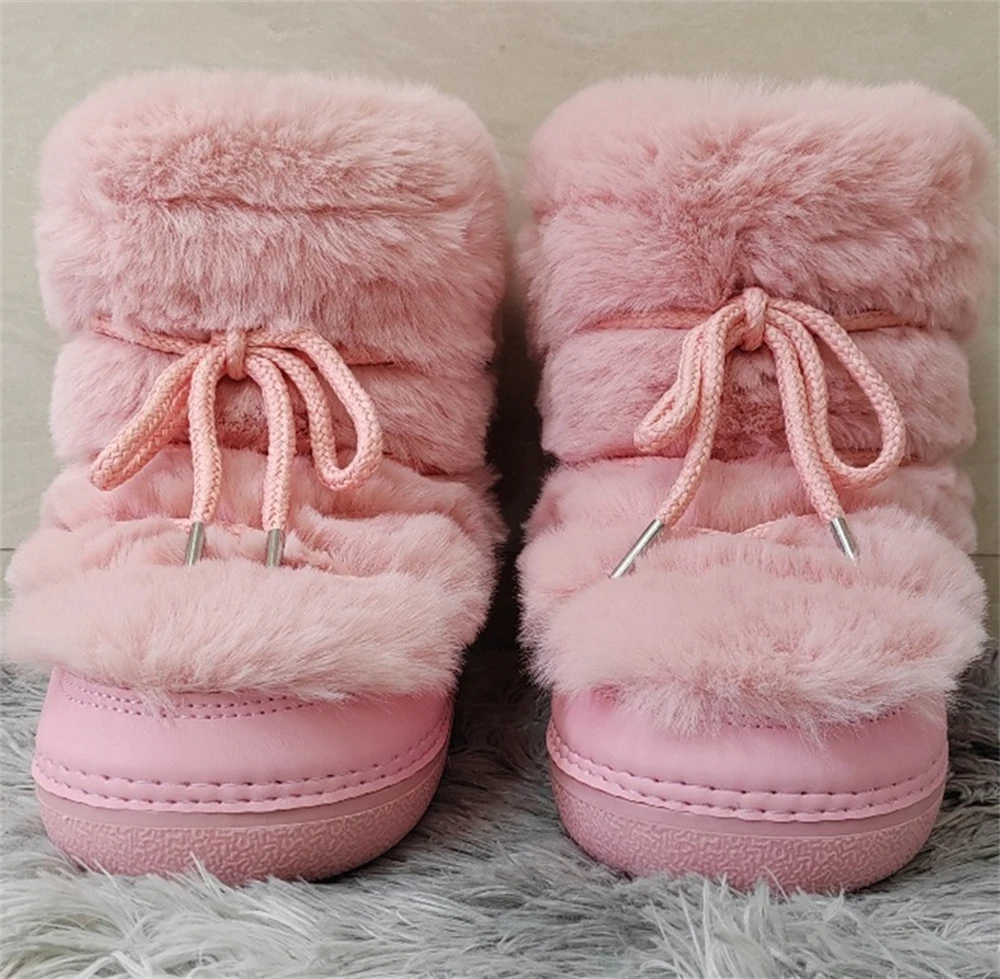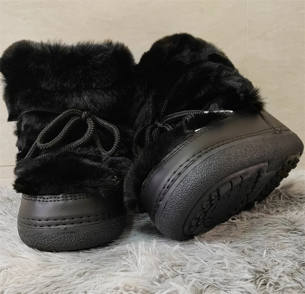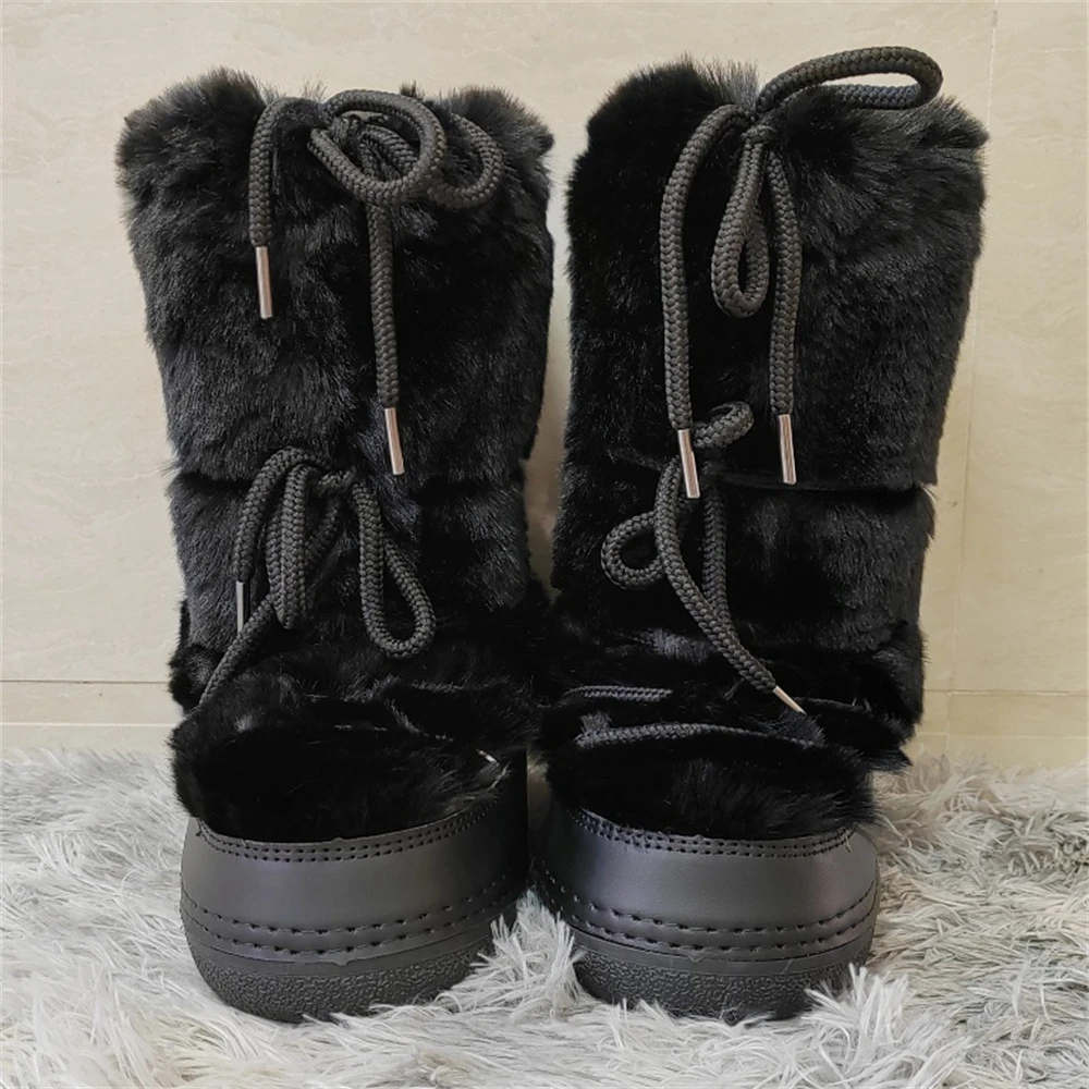Brand Luxury Fluffy Furry Rabbit Fur Boots 2024 Winter Snow Boots Women Ski Boots Woman Thick Warm Short Ankle Snow Boots