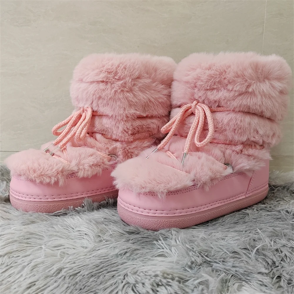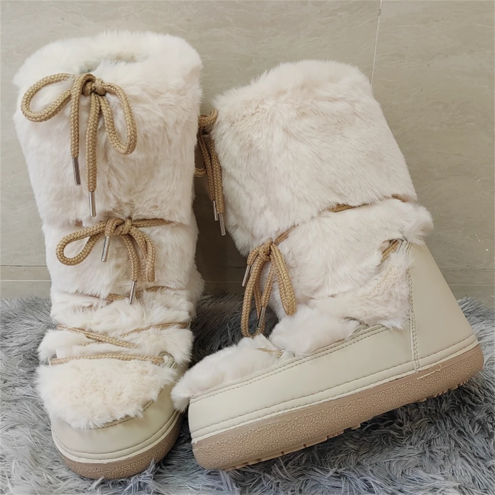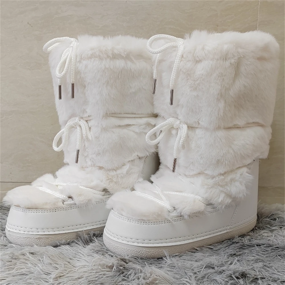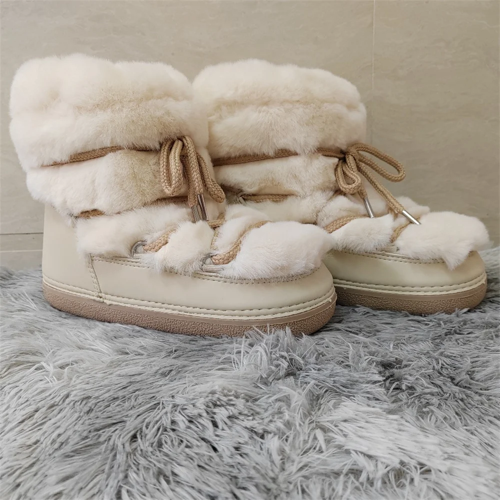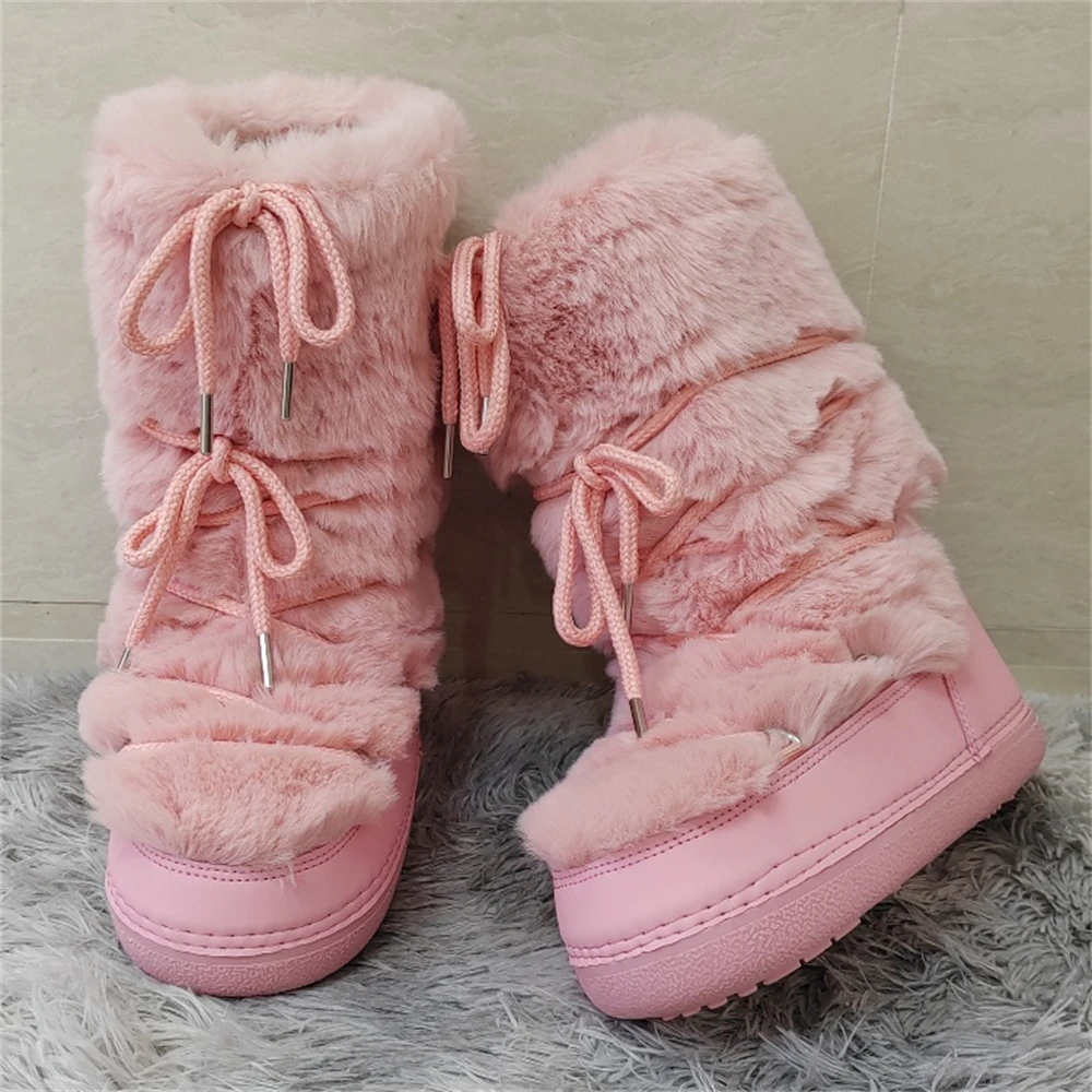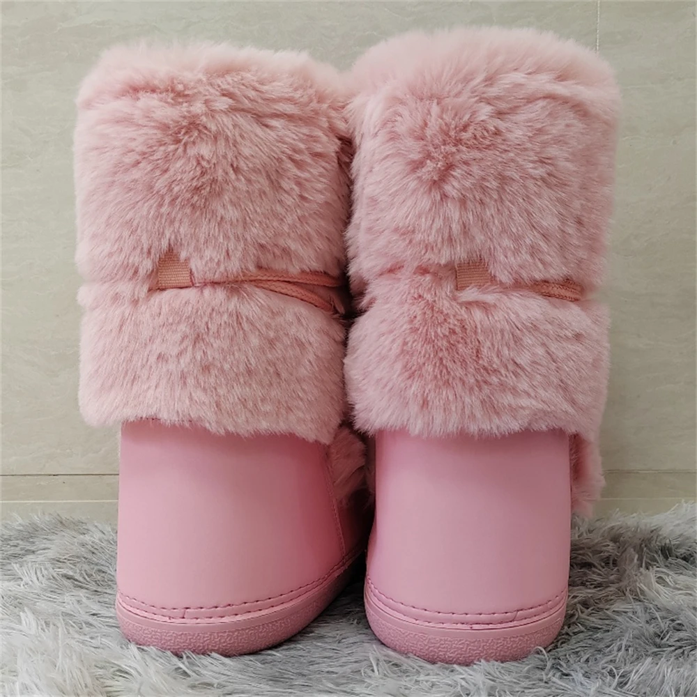 Brand Luxury Fluffy Furry Rabbit Fur Boots 2024 Winter Snow Boots Women Ski Boots Woman Thick Warm Short Ankle Snow Boots