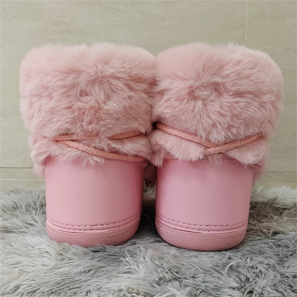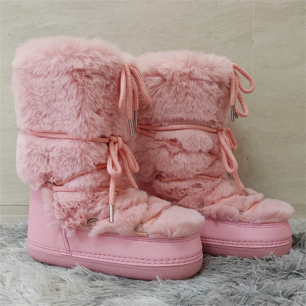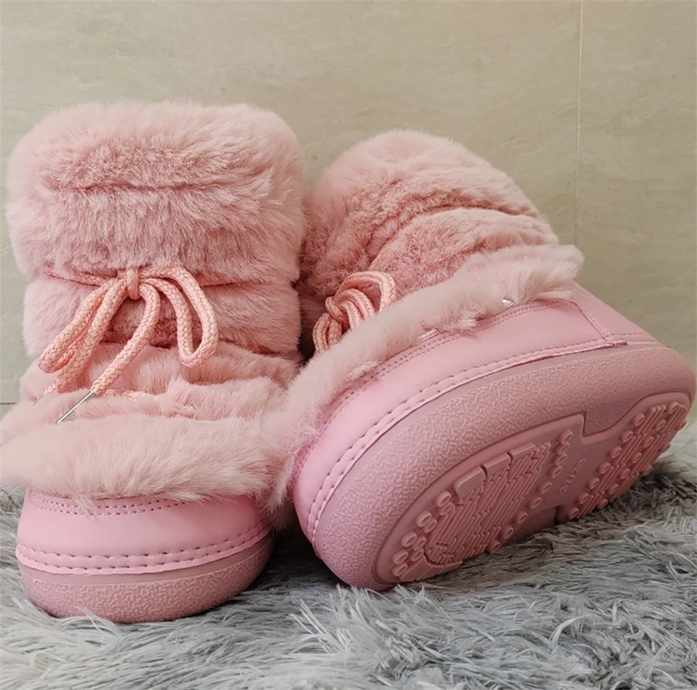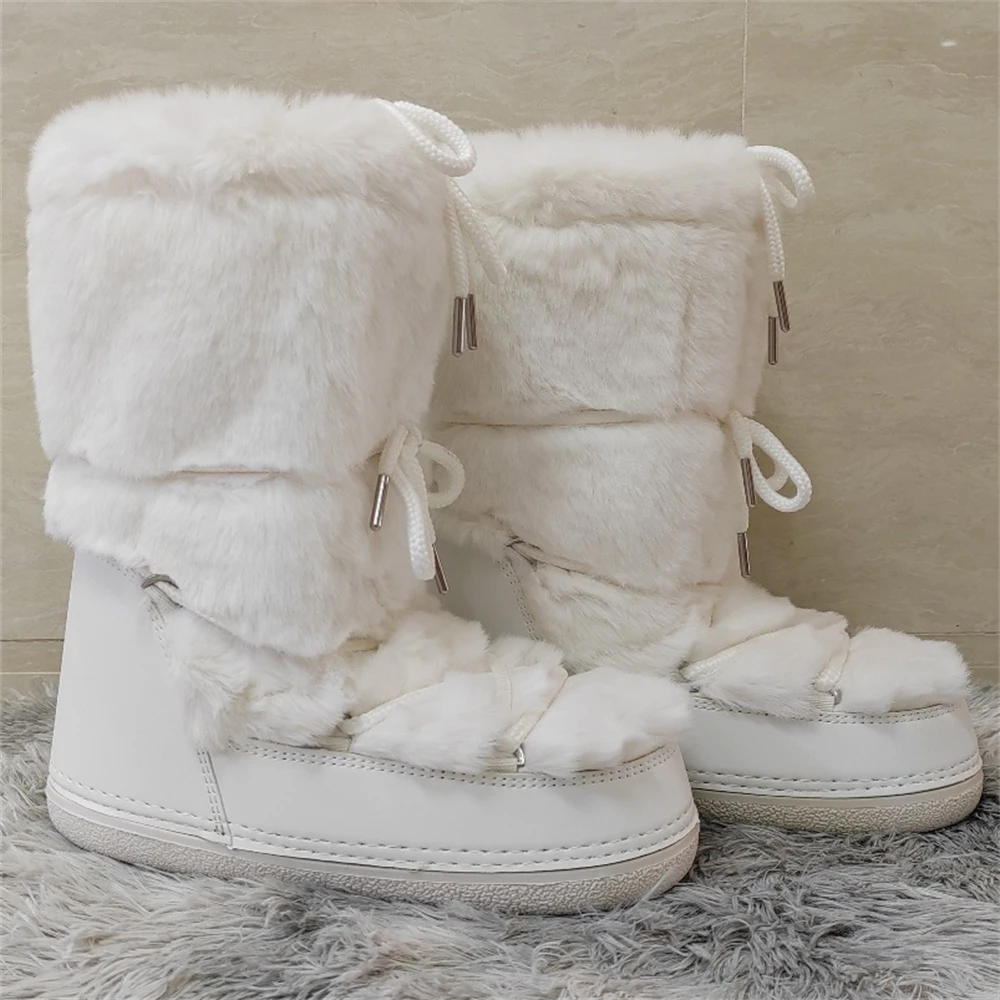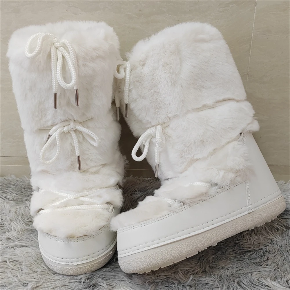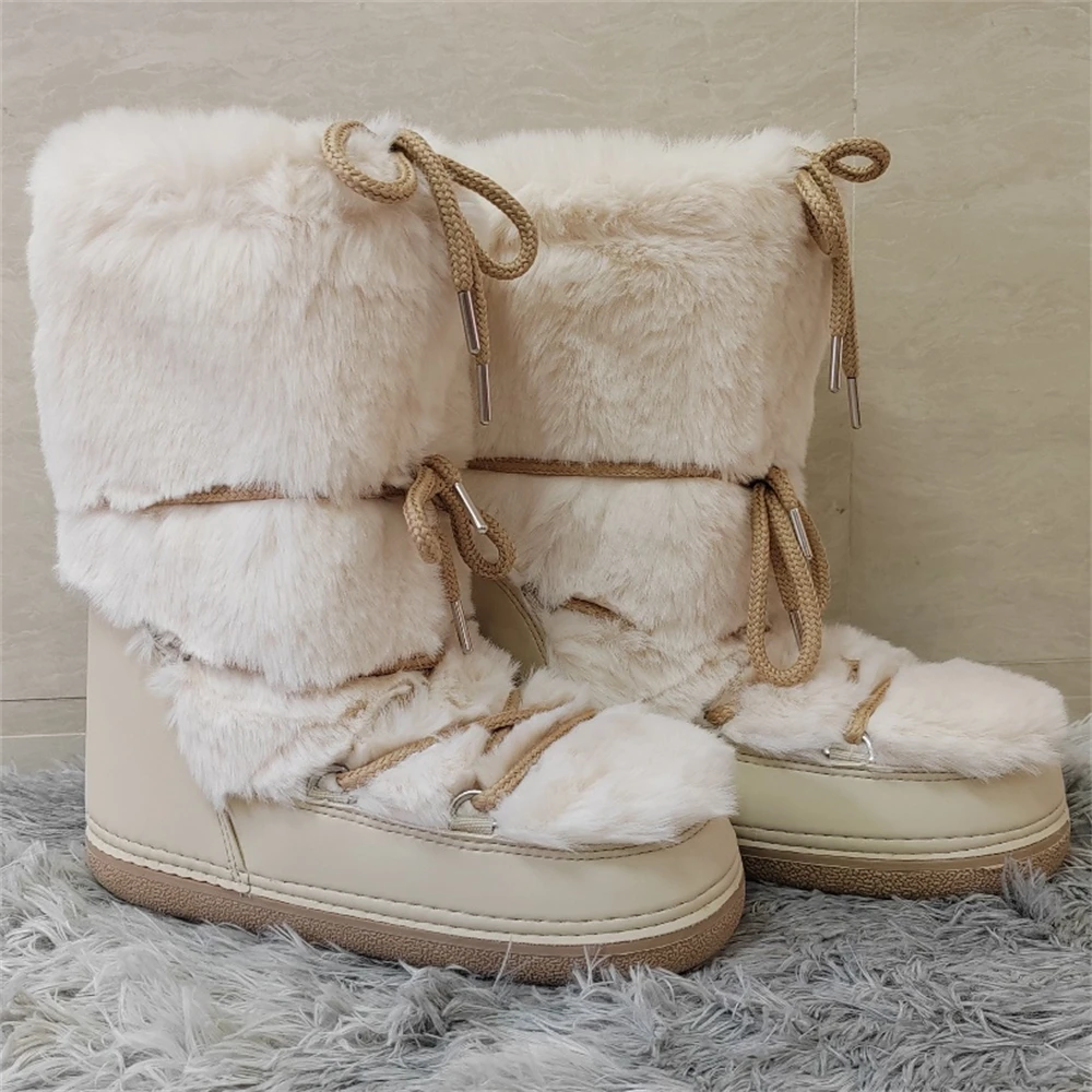 Brand Luxury Fluffy Furry Rabbit Fur Boots 2024 Winter Snow Boots Women Ski Boots Woman Thick Warm Short Ankle Snow Boots