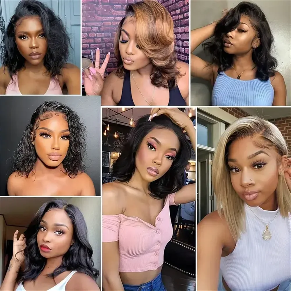 Brazilian Short Bob 13×4 HD Lace Front Body Wave 4×4 Transparent Lace Frontal Human Hair Wigs Wave 180 Density Lace Frontal Wig