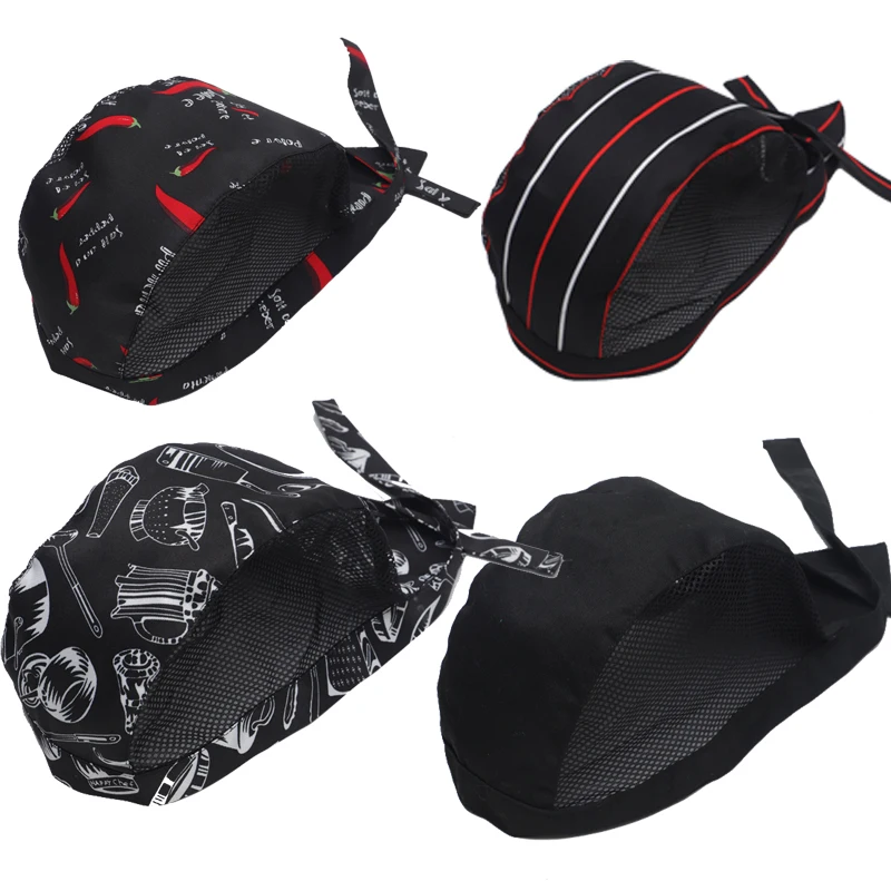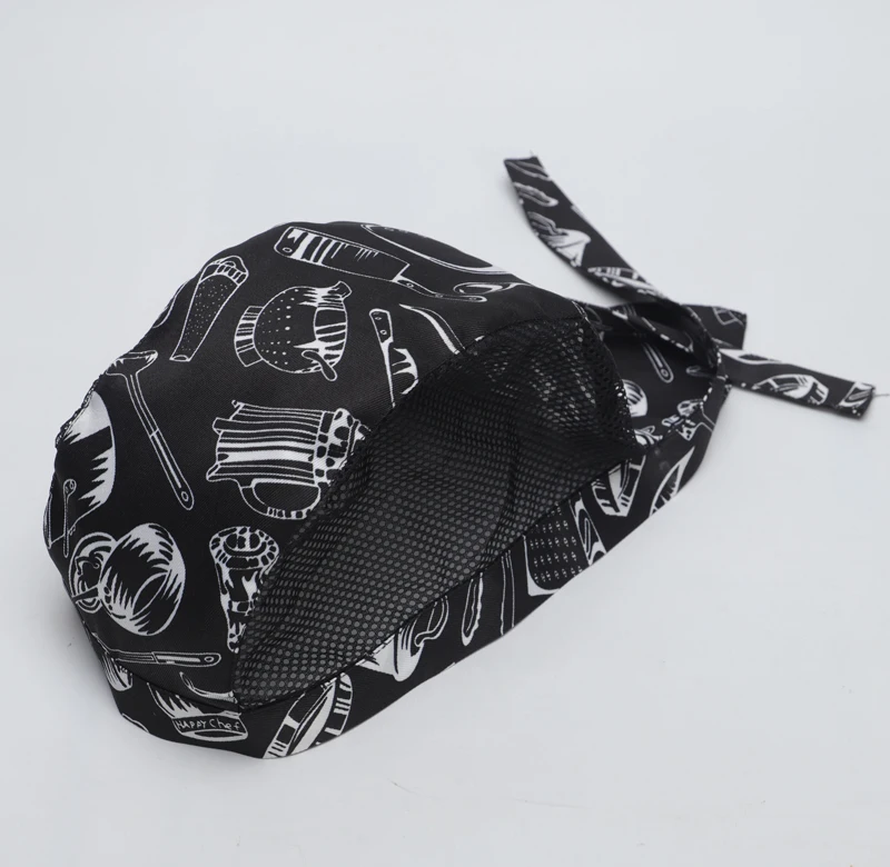 1 * Fashion Cutlery Style Chefs Hat Cap Kitchen Catering Skull Cap Ribbon Cap Turban