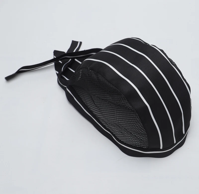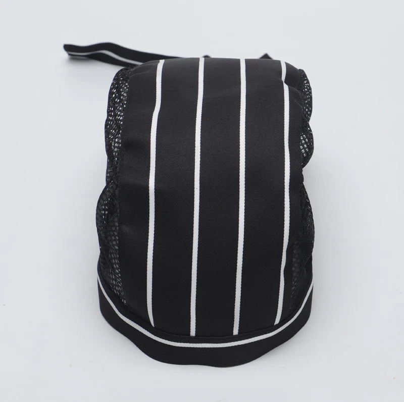 The item is a simple and practical catering ribbon cap, which is mainly made of durable soft canvas for comfortable to wear, and features adjustable ribbon style at the back to fit most adults. It is suitable for professional chefs use or simply for daily wearing.