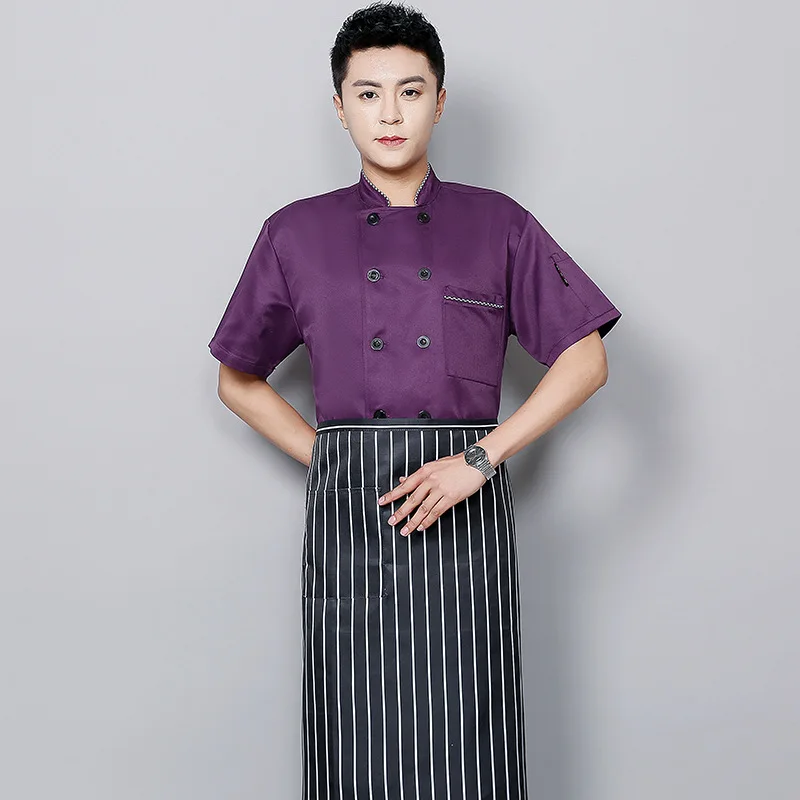 Breathable Short Sleeve Chef Uniform for Men in Solid Color for Restaurant, Hotel and Kitchen