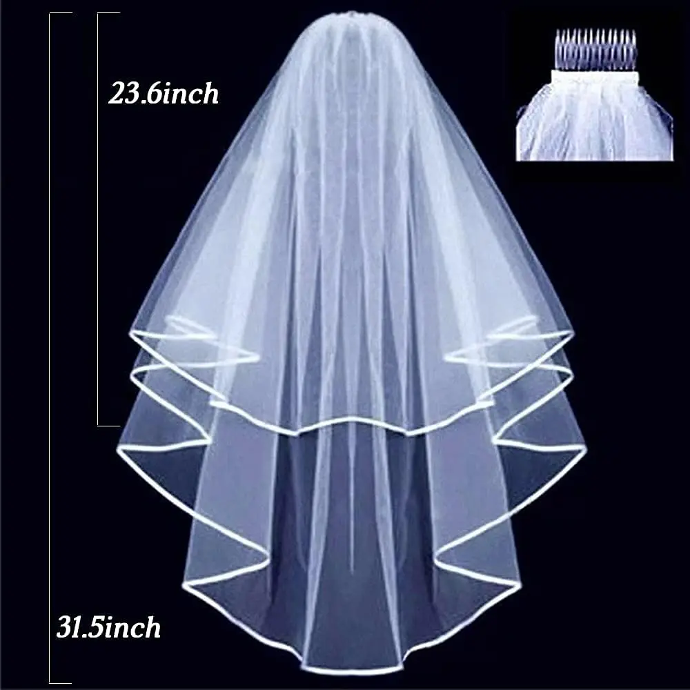 Bridal Veil Wedding Veils Women’s White Tulle Short Veils Ribbon Edge With Comb for Brides Bachelorette Hen Party Costume