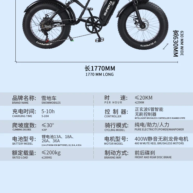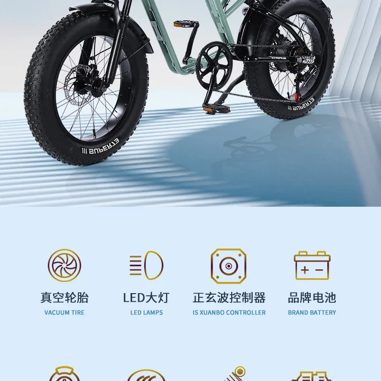 Brushless Snow Variable Retro Electric Bicycle For Adults Fat Tire Off-Road Ebike 45KM/H Mountain E-bike Beach Bicycle
