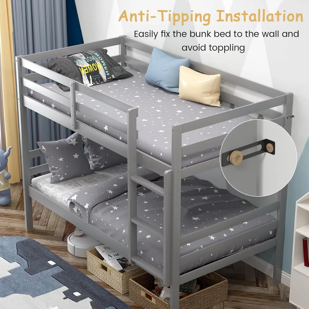 - [Safety First]: Our bunk bed twin over twin is designed with safety in mind. It is equipped with an anti-tipping mechanism that allows you to securely anchor it to the wall, providing added stability. The raised guard railings on the top bunk ensure the safety of your loved ones, preventing any accidental falls.