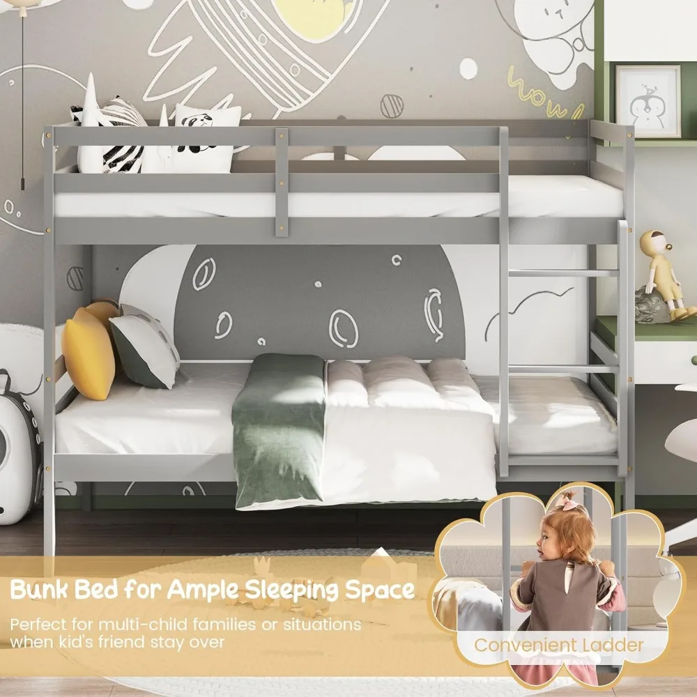 Bunk Bed, Solid Wood Bunk Bed with Sturdy Ladder & 12 Inch Safety Guard Rails, Twin Size Wood Beds Frame, Children Beds