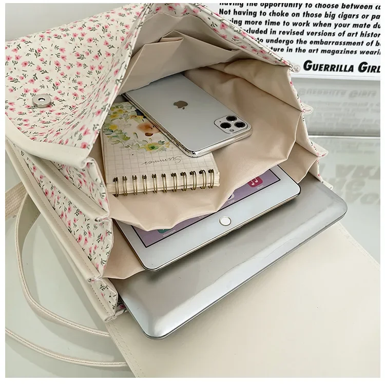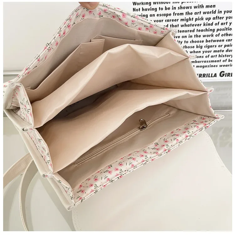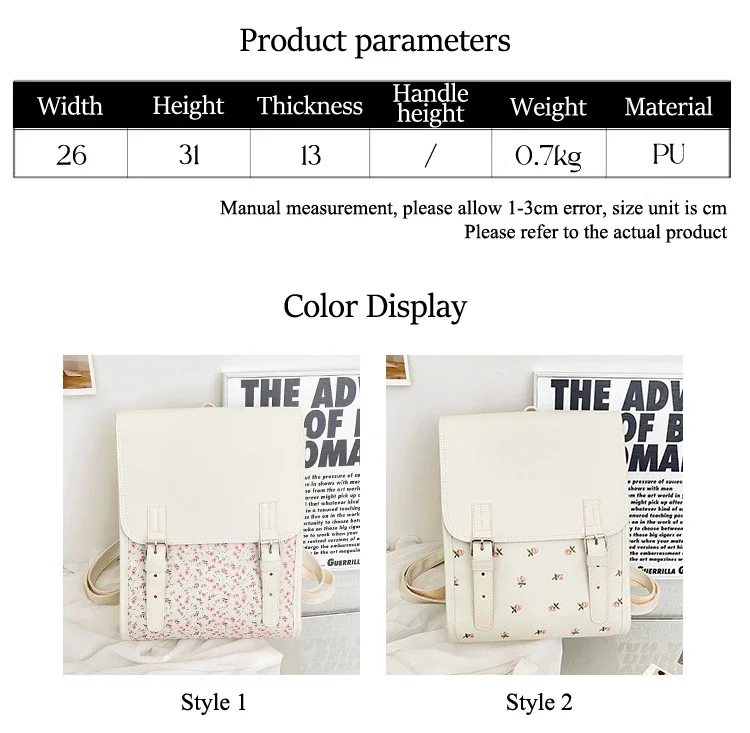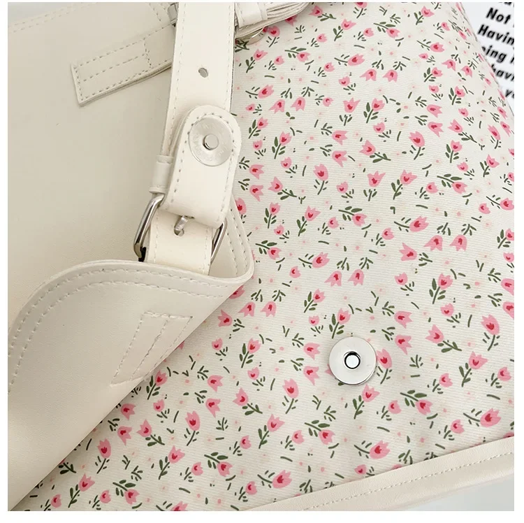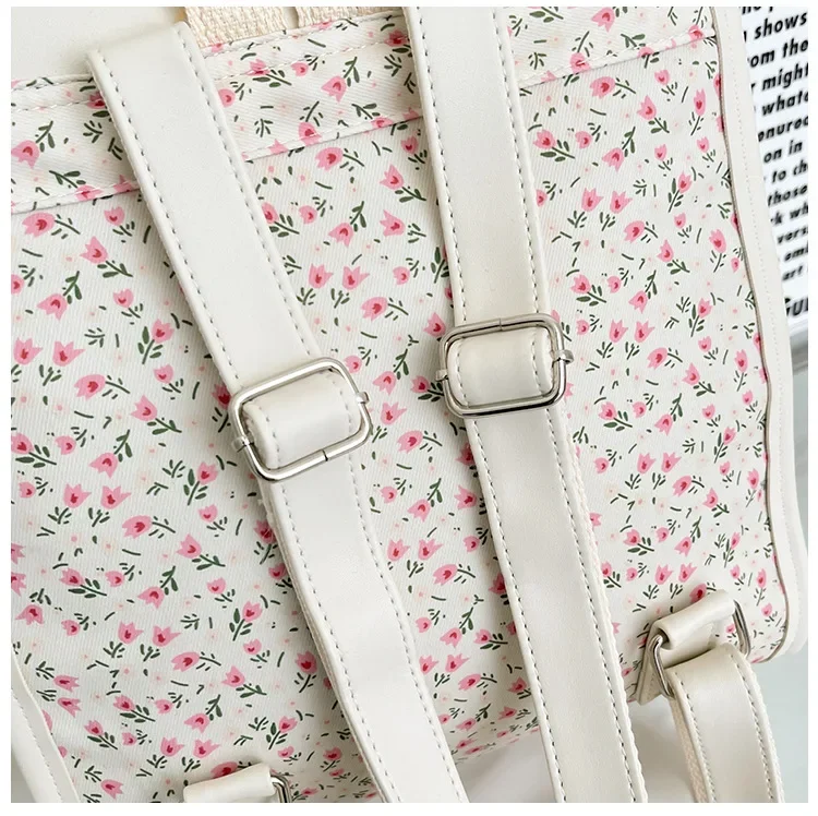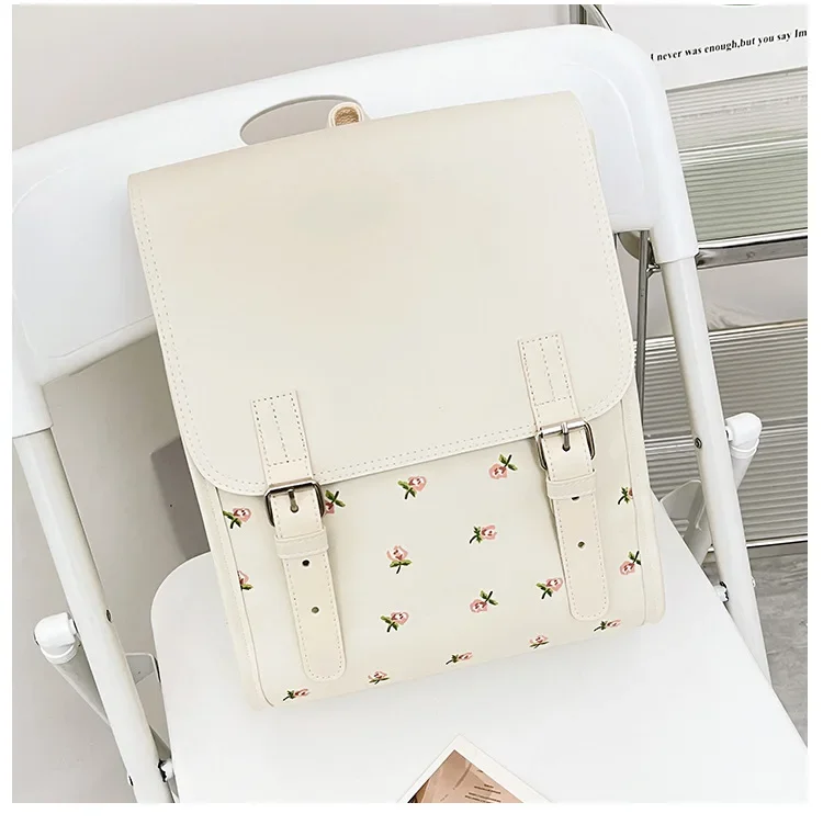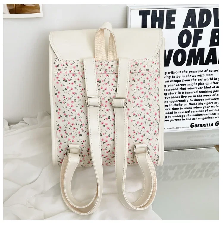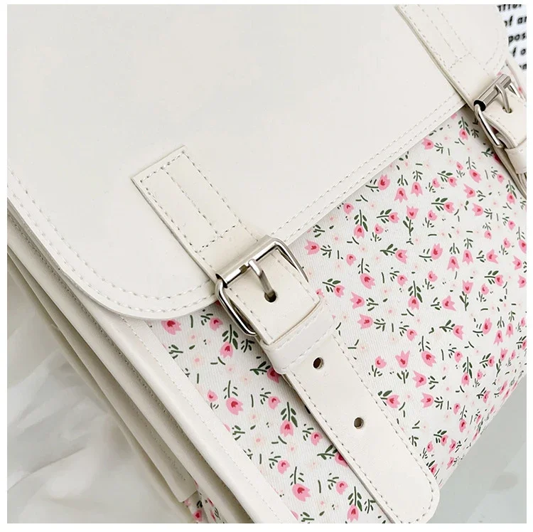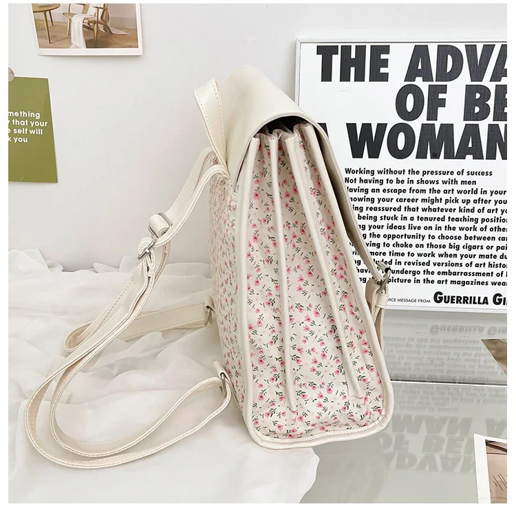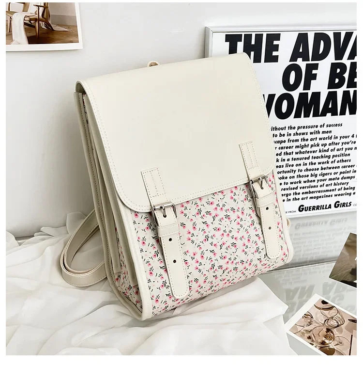 Business Casual Portable Ditsy Floral Buckle Decor Flap Backpack For Teen Girls Women Large Capacity Fashionable Schoolbag