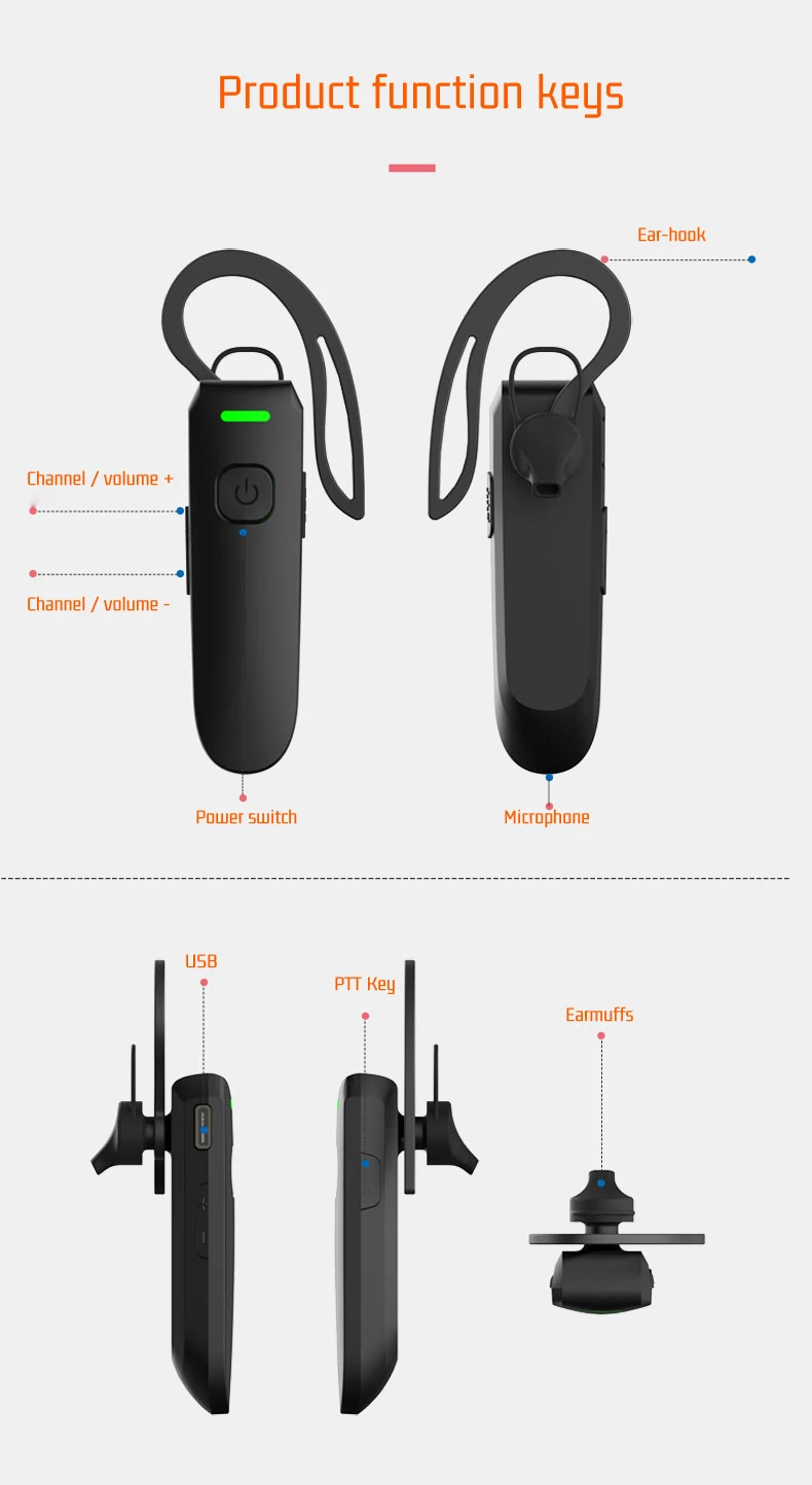 Business type Wireless Earhook Mini Walkie Talkie Intercome Bluetooth PMR FRS Bluetooth-compatible Headset Two Way Radio