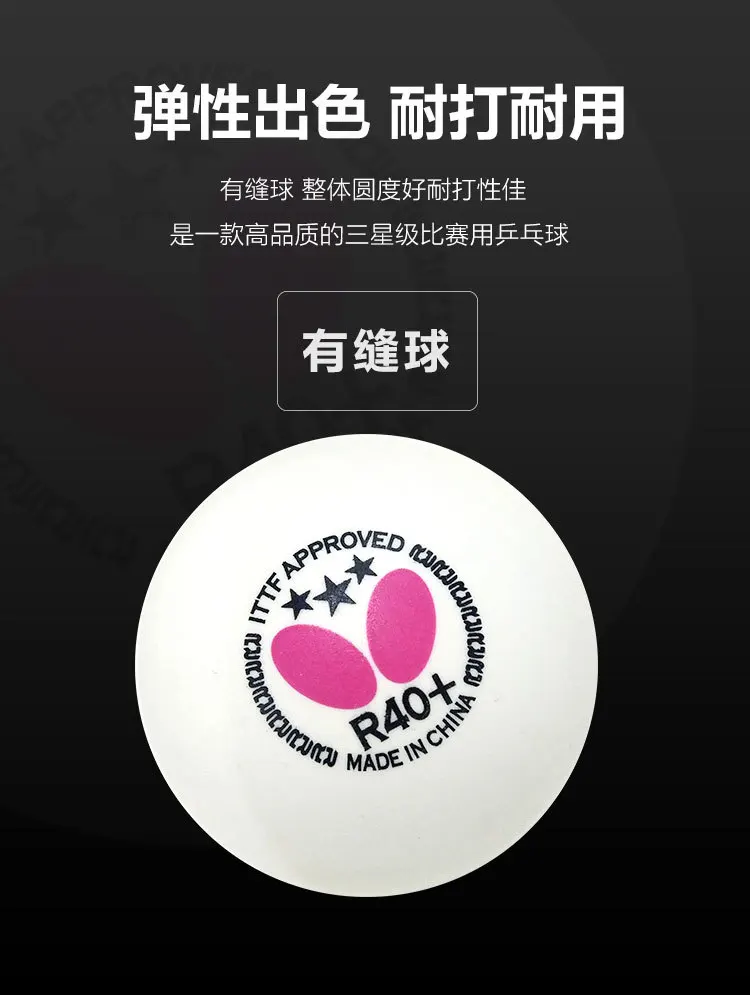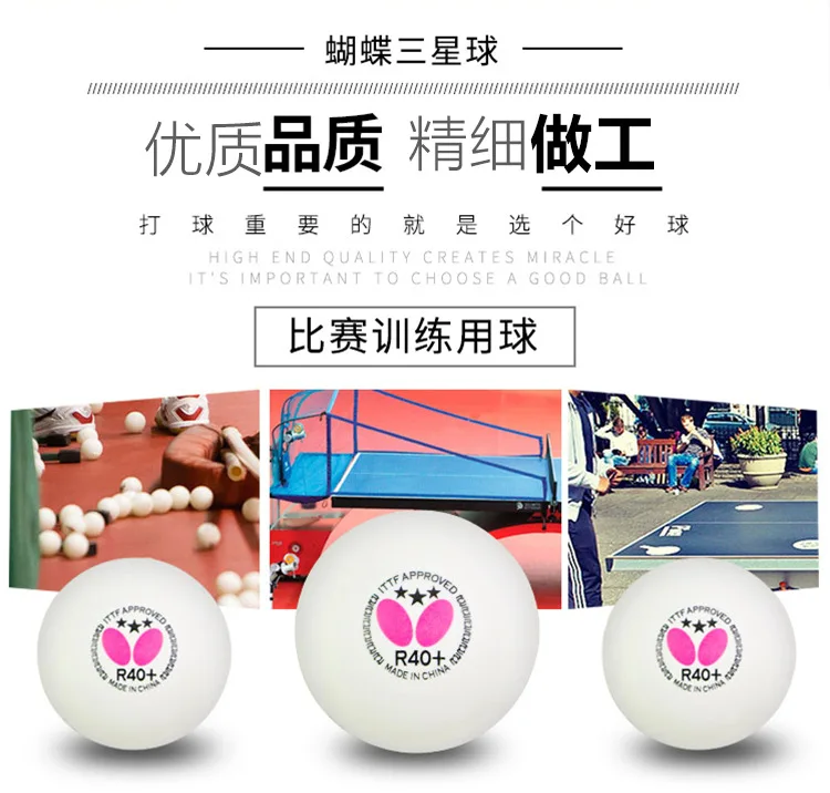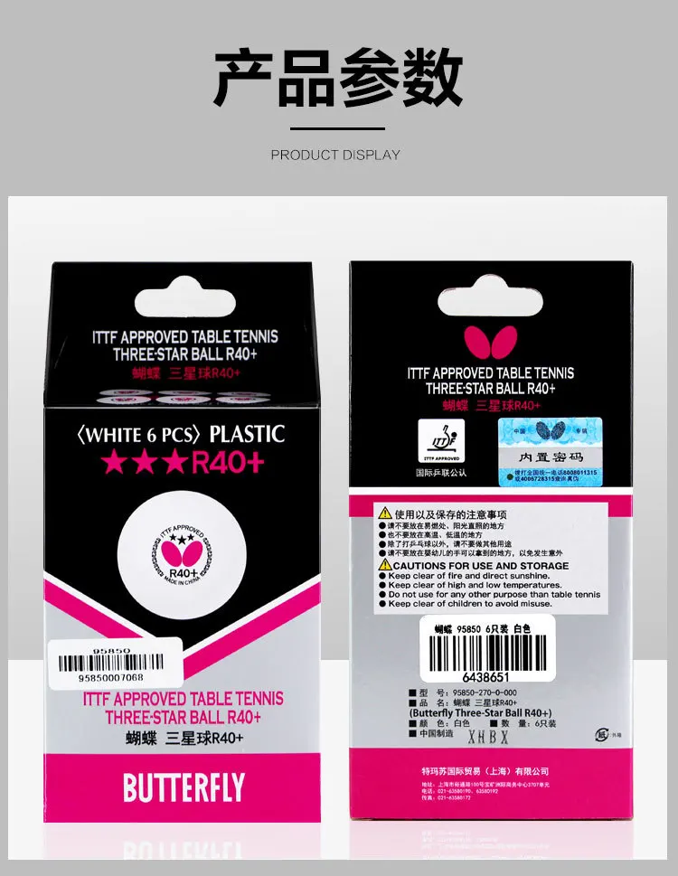 Butterfly three-star table tennis ball with 6 professional competition balls R40+white