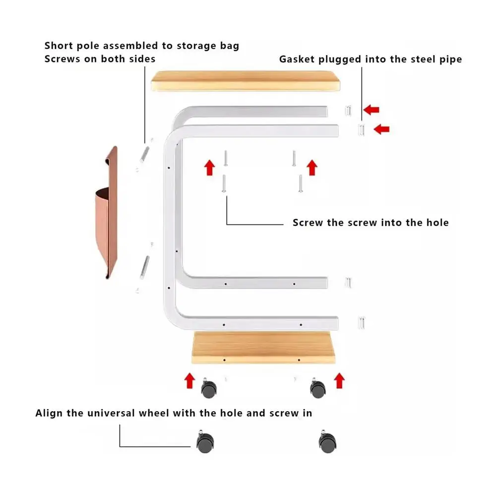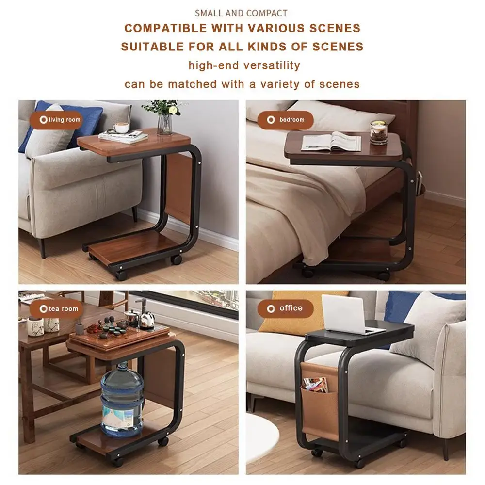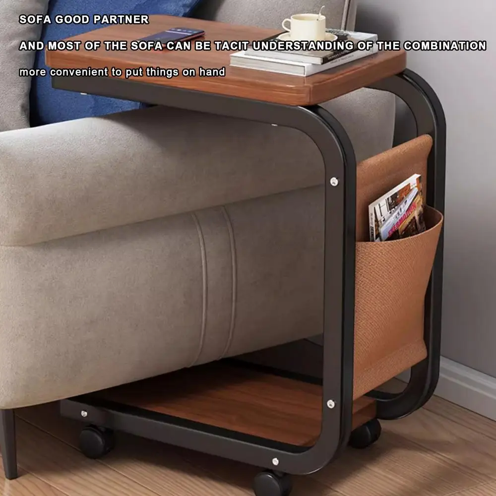 C Shaped Side Table for Living Room, Mobile Coffee Table, Sofa Side Cabinet, Simple Small Square Table, Bedroom Bedside Table