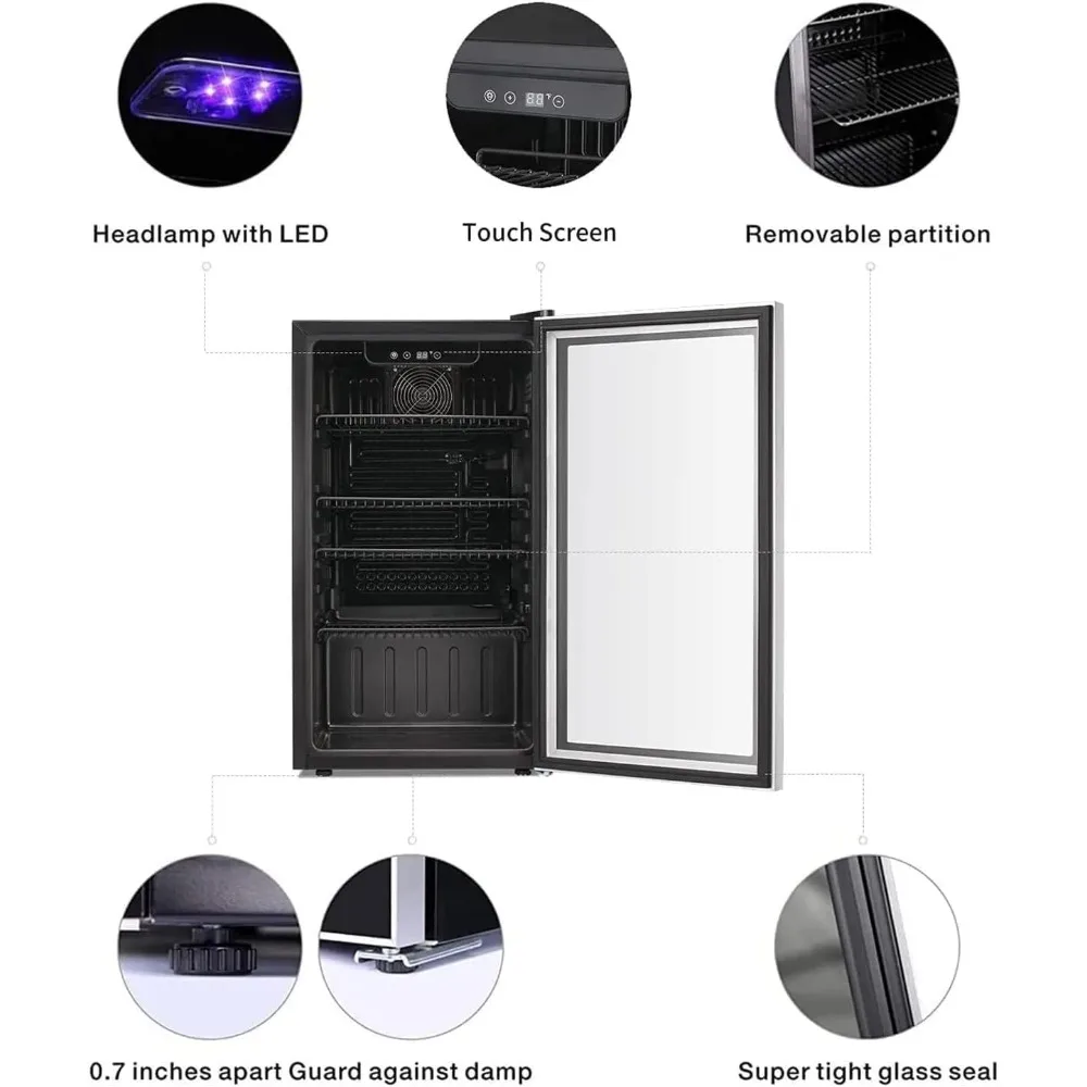 - IDEAL LIGHT and HUMIDITY: The reinforced glass door with air tight seal helps to maintain an ideal humidity level, this beverage refrigerator gives you a compact and modern sensation. Perfect for your living room. Blue soft LED interior lighting not only beautifully showcases the wine but won’t damage the wine.