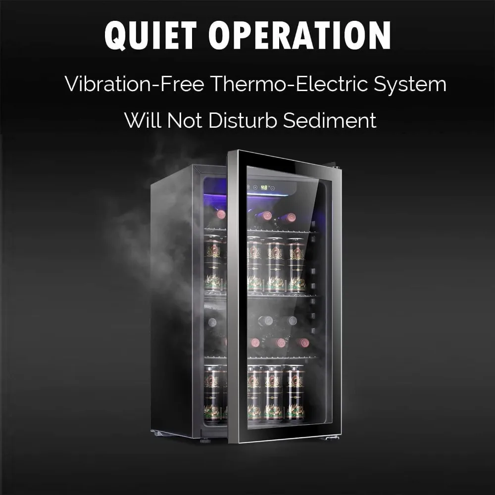 - NO VIBRATION and QUIET: Equipped with an advanced cooling system that will keep your beverages at the right temperature. With no disturbance to its natural occurring sediments. Equipped with Movable Black Shelves, Glass Door and Adjustable Leveling Legs.