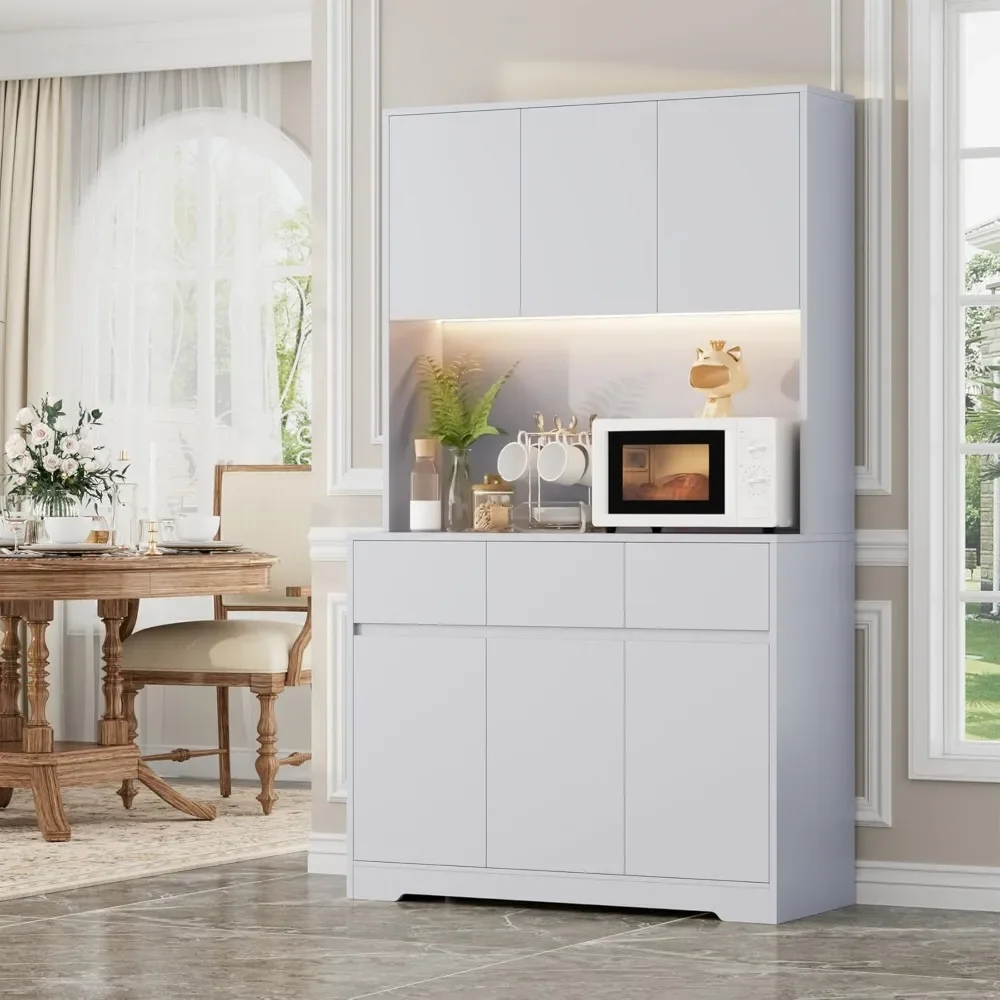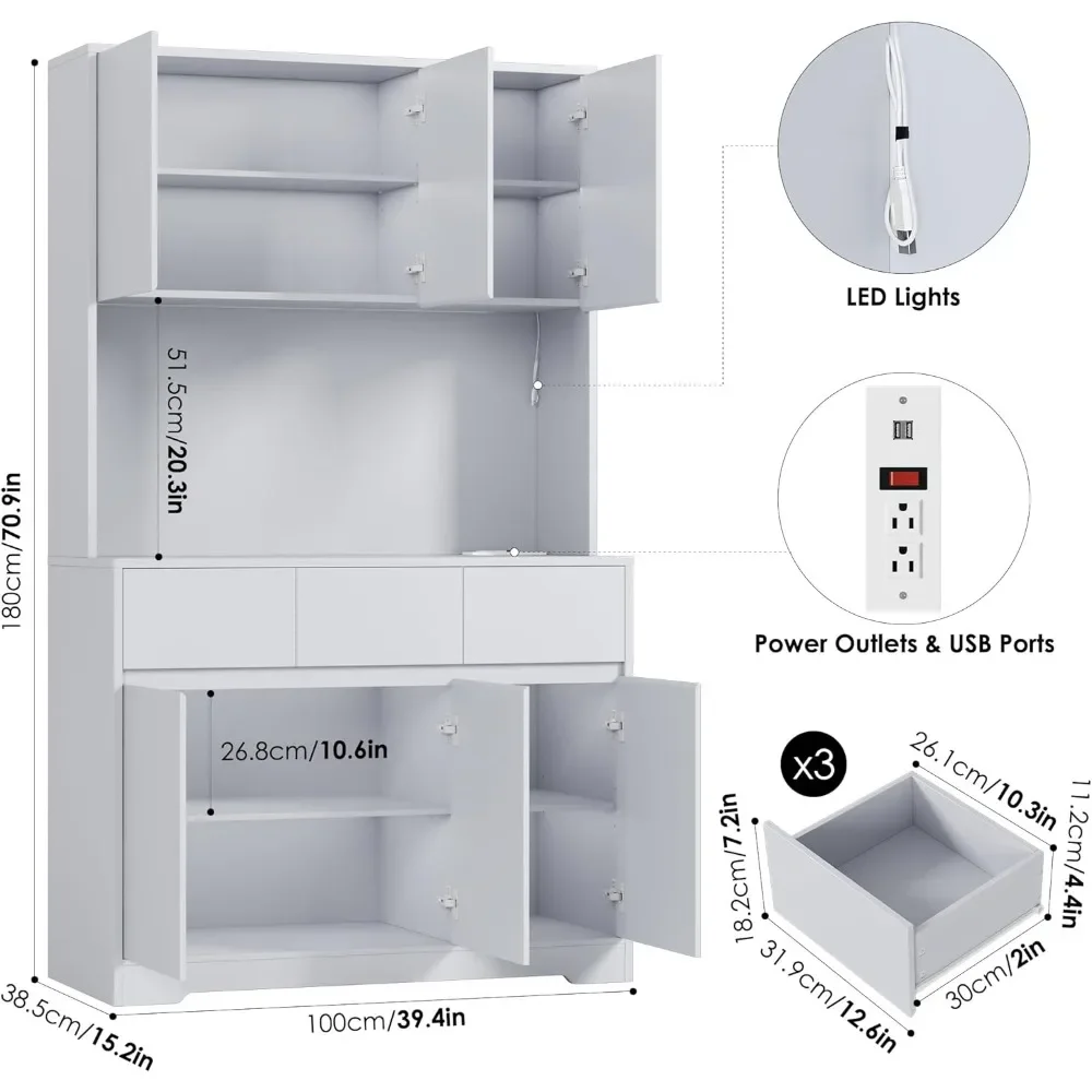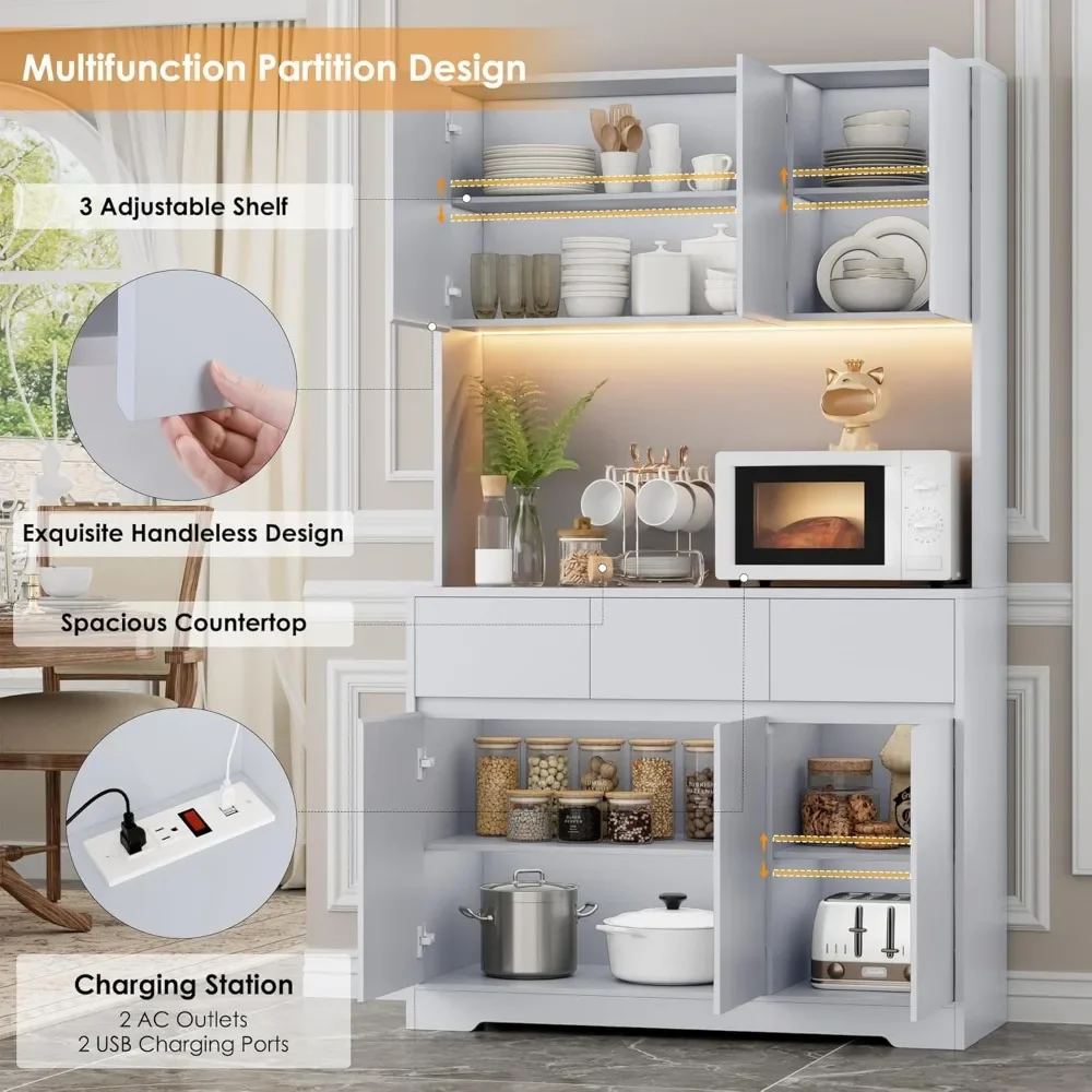 Cabinets71Tall Kitchen Pantry Storage CabinetwithPowerOutletsandLed LightsLargeKitchen Hutch Buffet Cabinet with MicrowaveStand