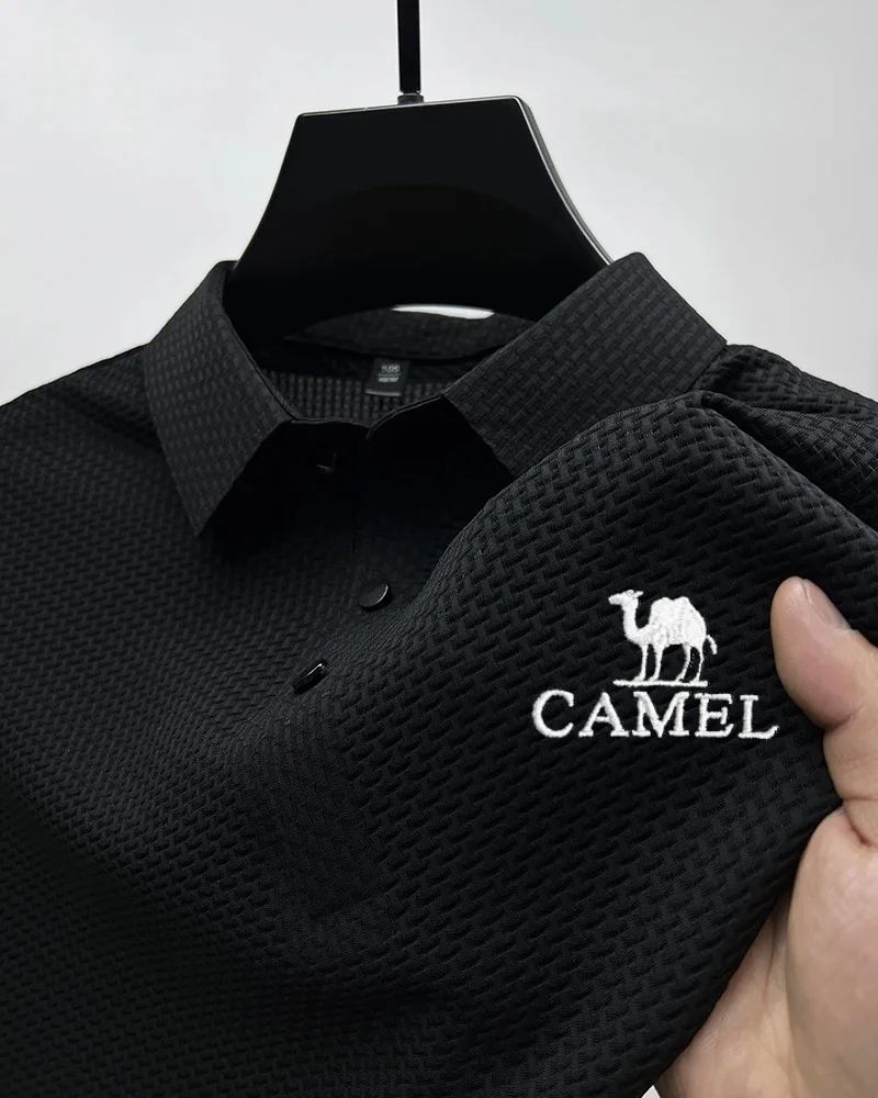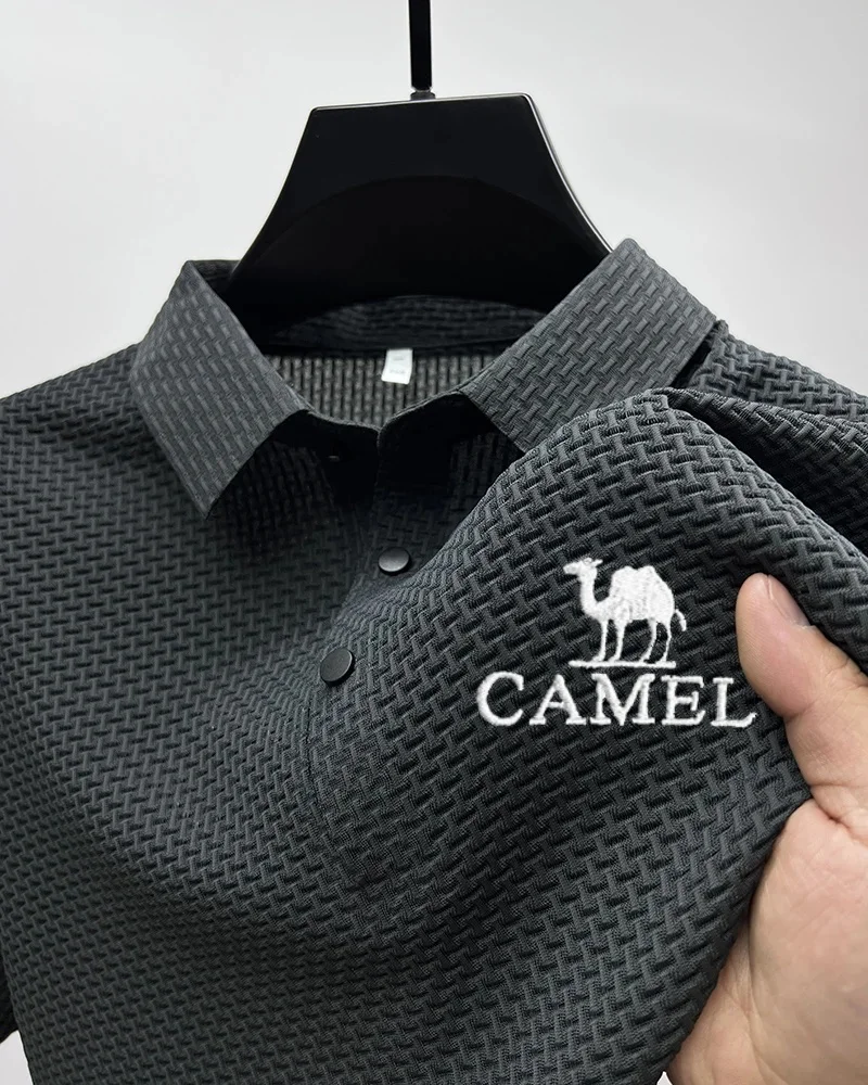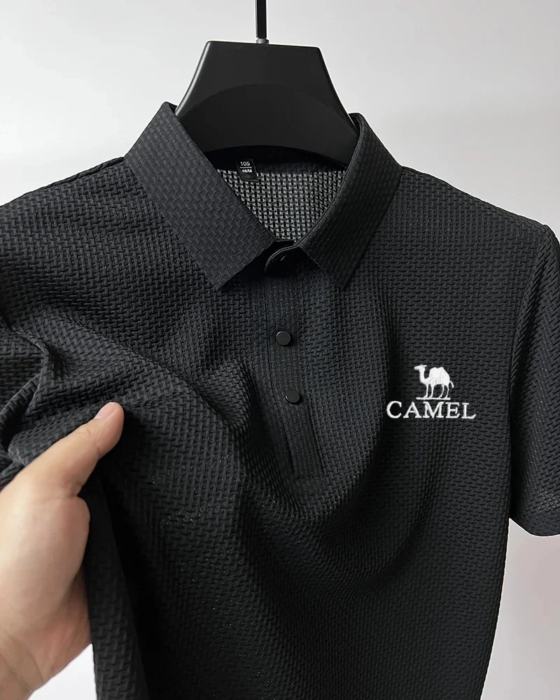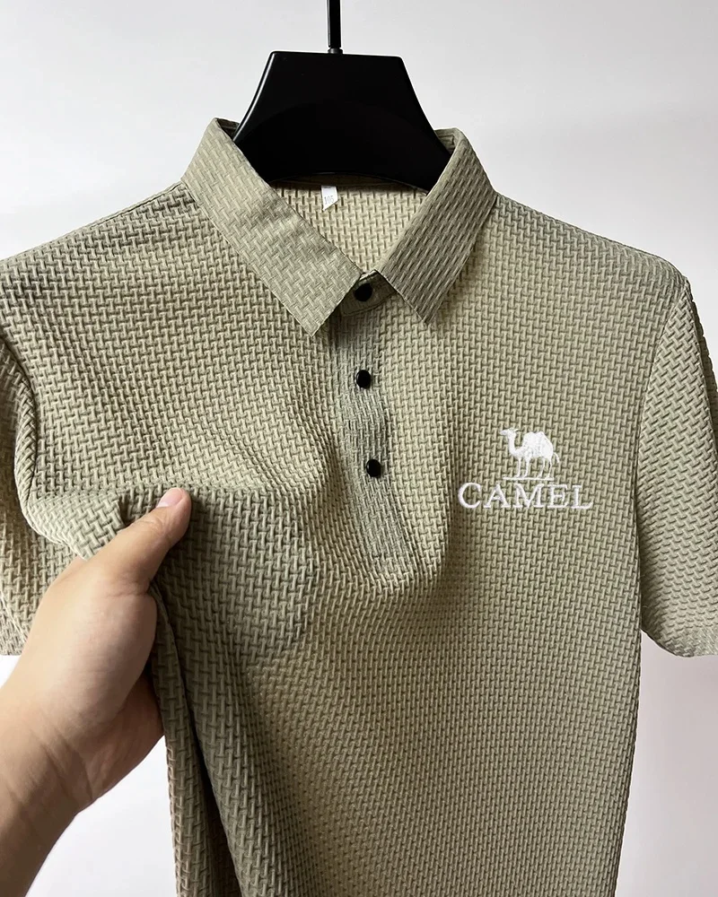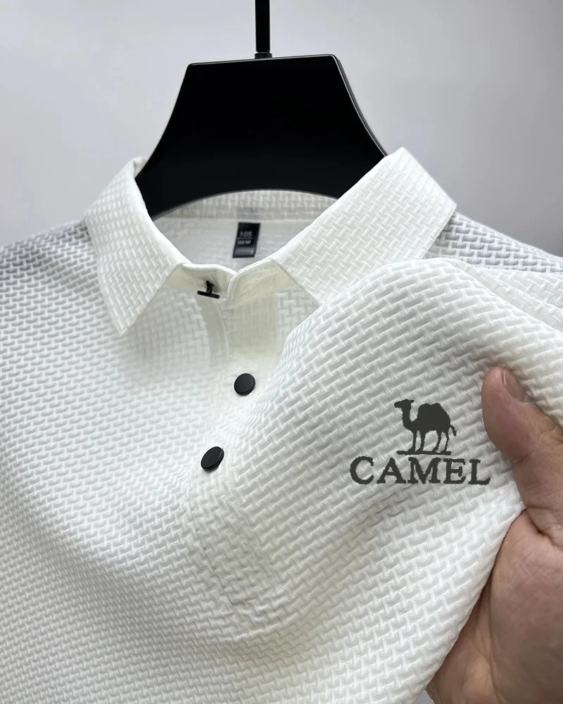 Camel men’s new fashion Polo shirt high-end mesh ice silk breathable summer casual business lapel button short sleeve
