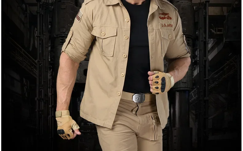 Camo Tactical Shirt Men Short Sleeve Army Combat Training Military Tops Mens 100% Cotton Spring Summer Outdoor Hiking Shirts New