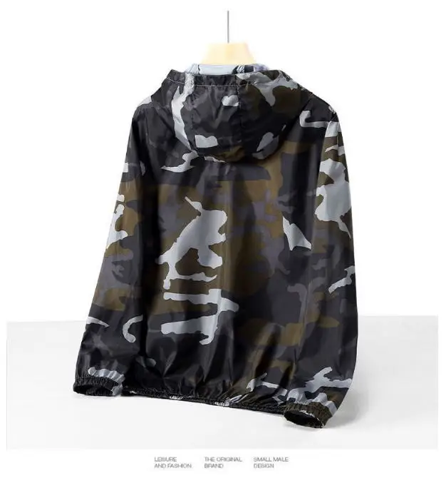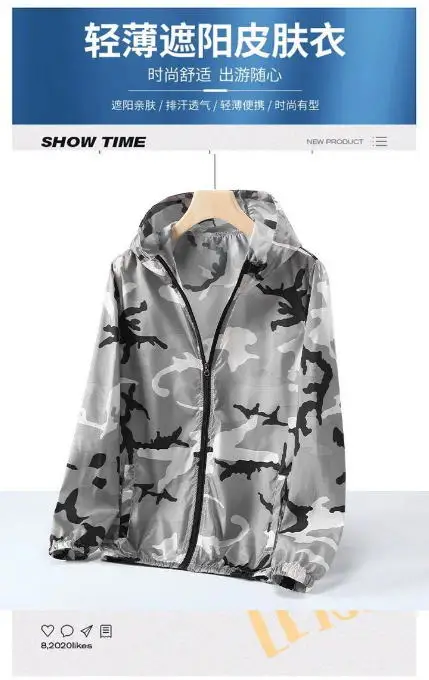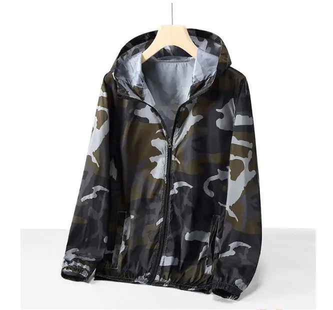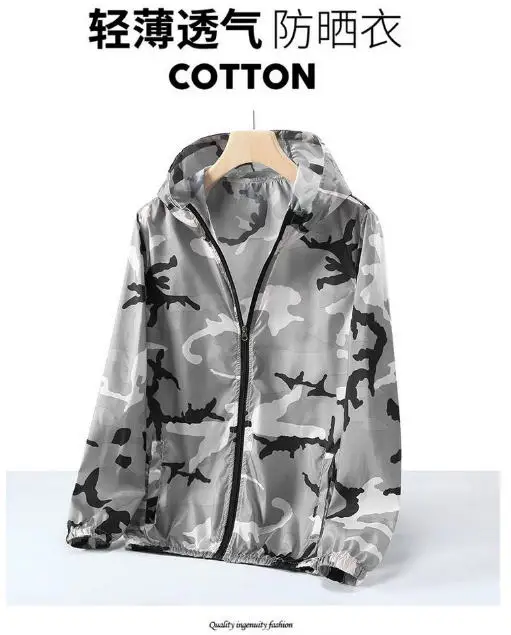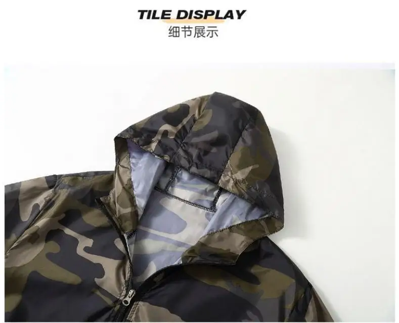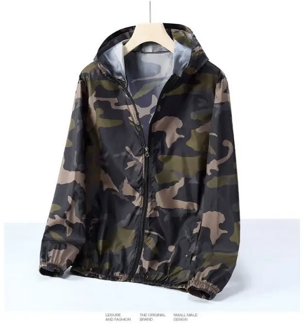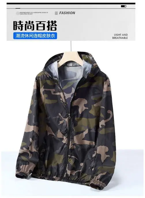 Camouflage sun-protective clothing men’s coat summer sports plus size breathable outdoor fishing skin couple hooded shade clothi