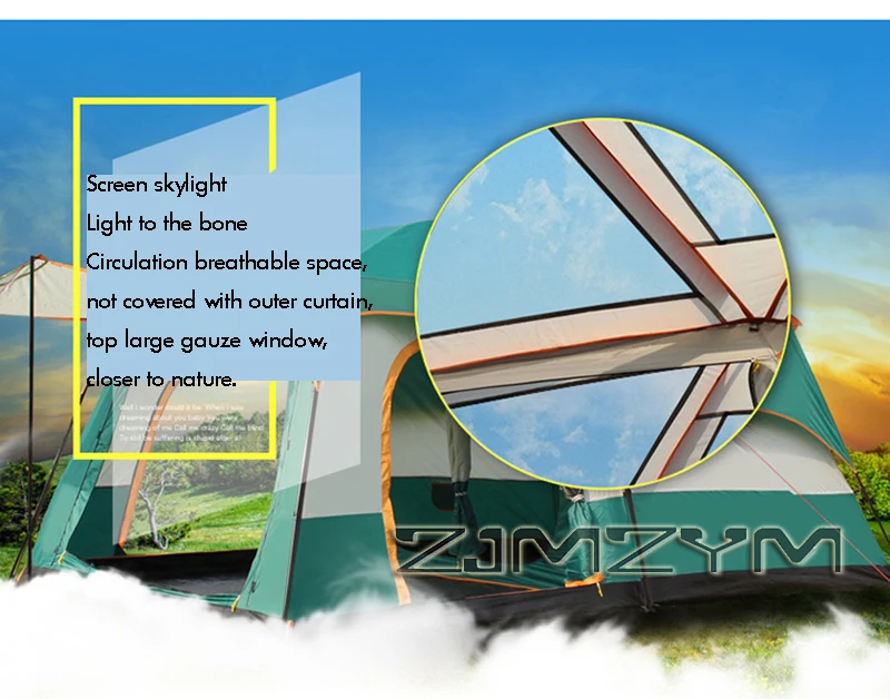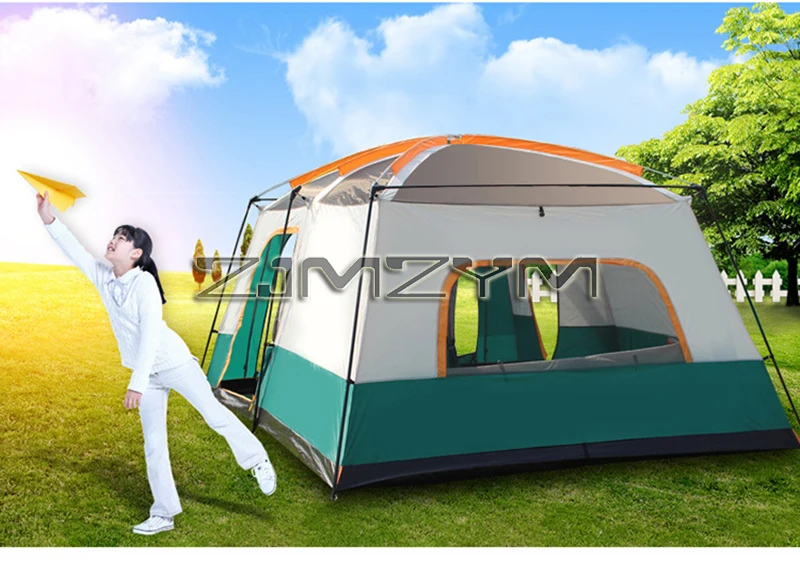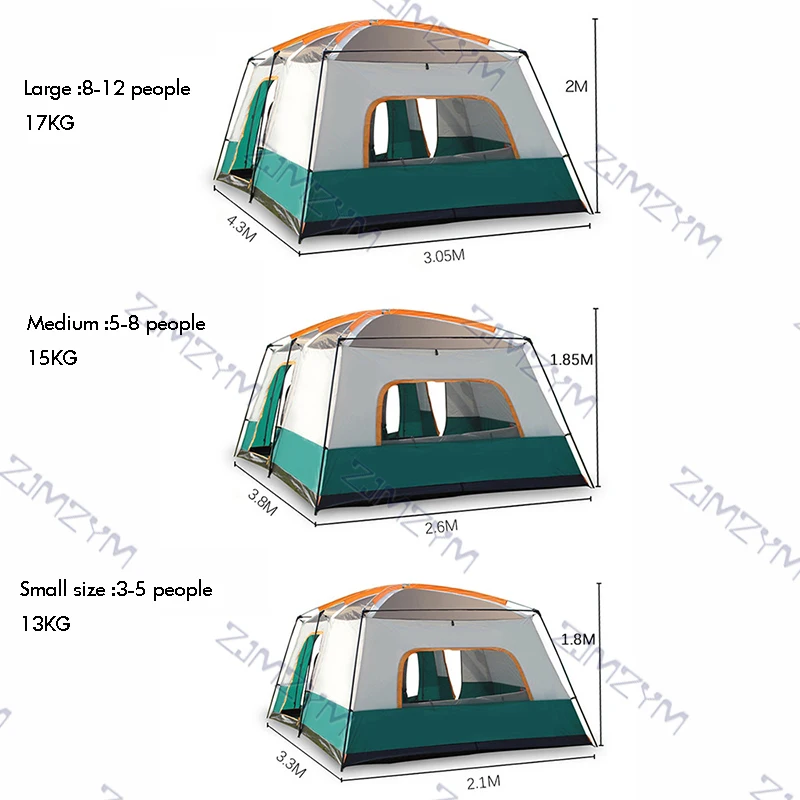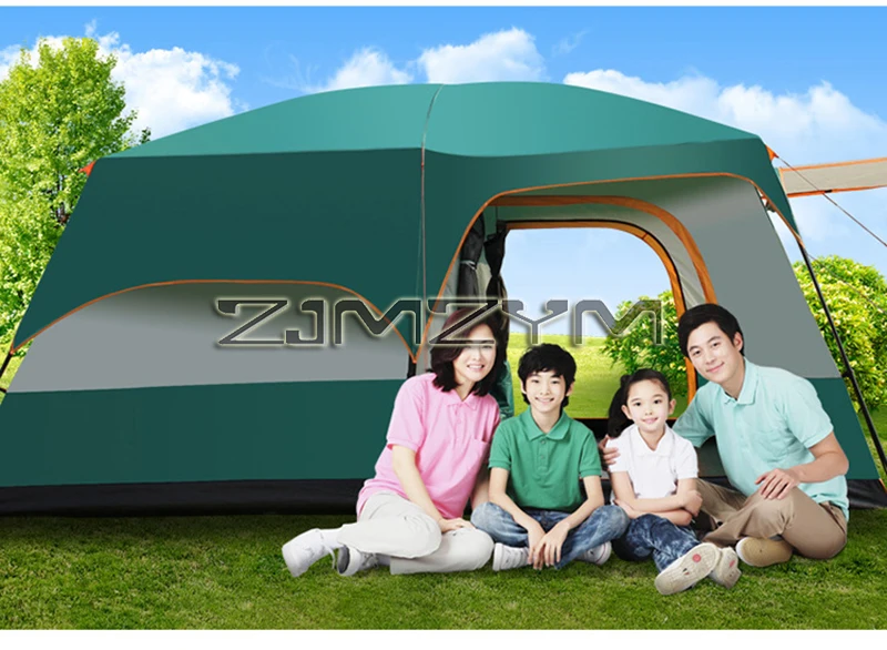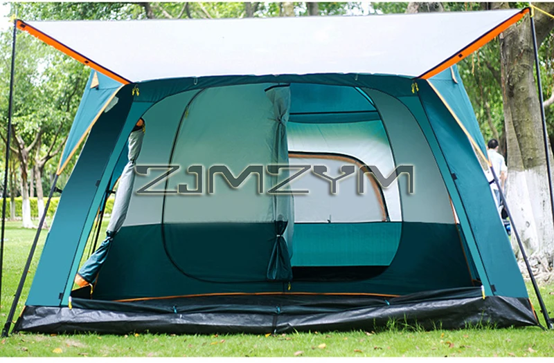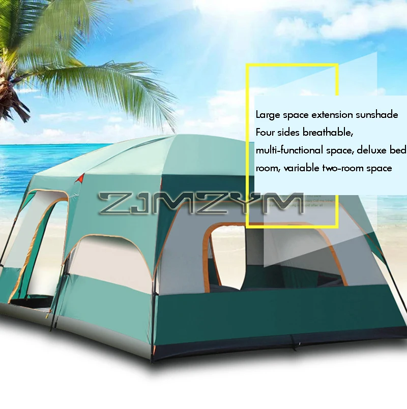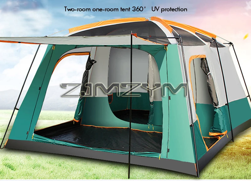 Camping Tent 2 Bedroom 1 Hall Camping Tent Double Layers Oversize Thickened Rainproof Tent Outdoor Family Camp Tour Equipment