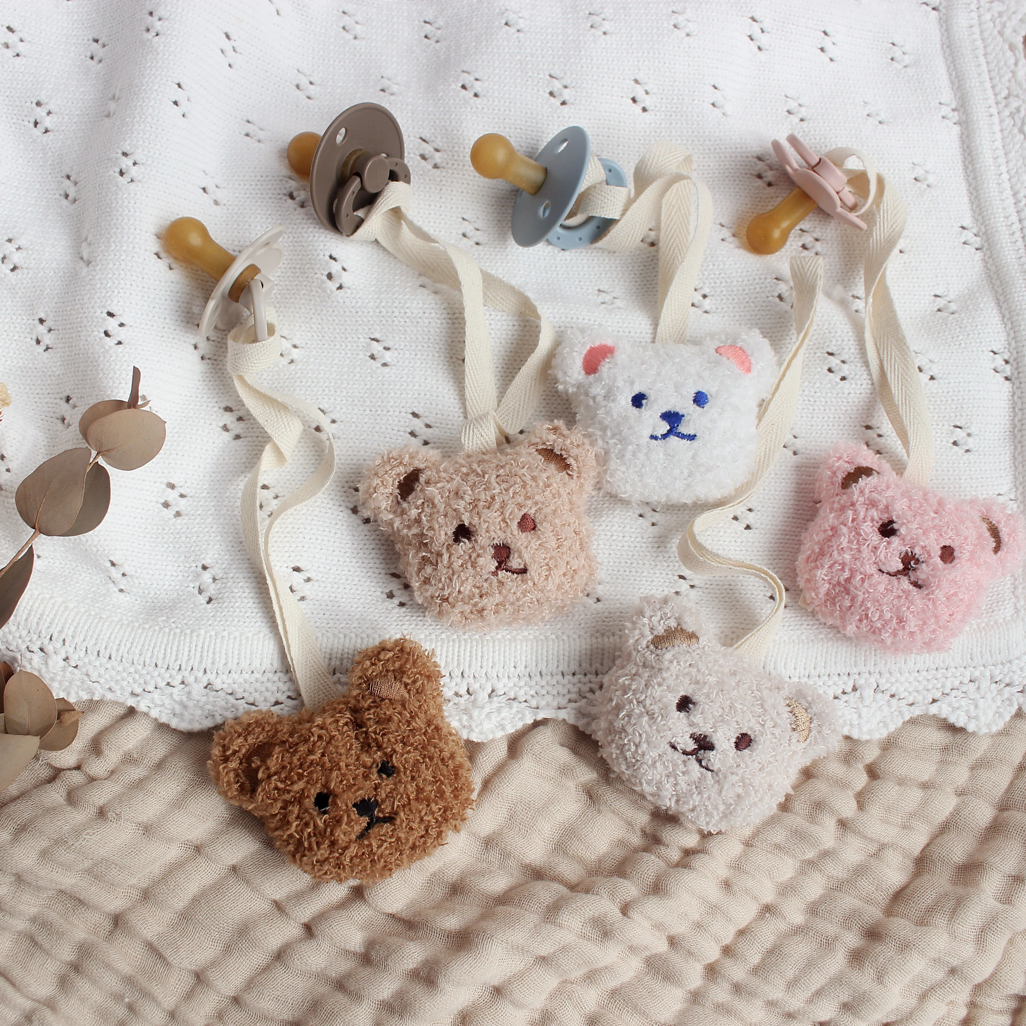 Can Write Name Plush Bear Baby Pacifier Clip Chain Pendant Korean Cartoon Newborn Dummy Nipples Holder Toys Baby Accessories
